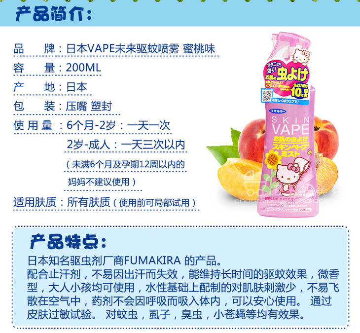 【驱蚊杀菌 安全温和】日本VAPE驱蚊喷雾防蚊水驱蚊液200ml儿童防蚊液