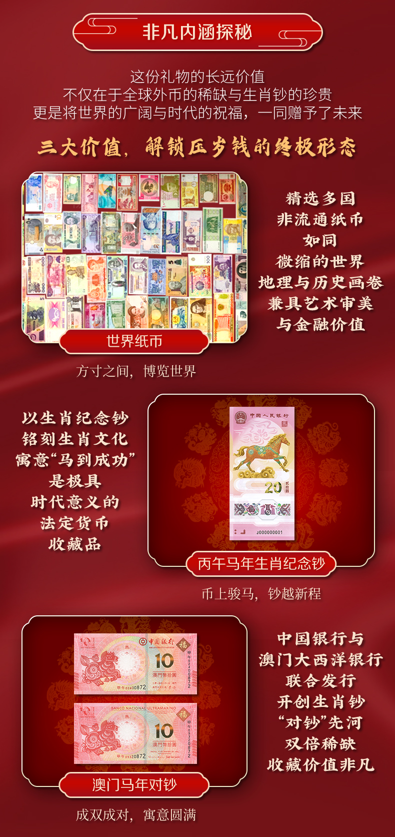 【为思礼】骏驰寰宇 福佑四方 生肖外钞红包系列 新潮年礼 收藏界宠儿 生肖钞 外国纪念币钞 澳门钞 中国风 新年春节礼物