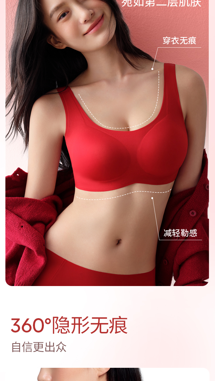 奶糖派悬浮2.0软支撑文胸红品礼盒无钢圈无痕聚拢本命年内衣女