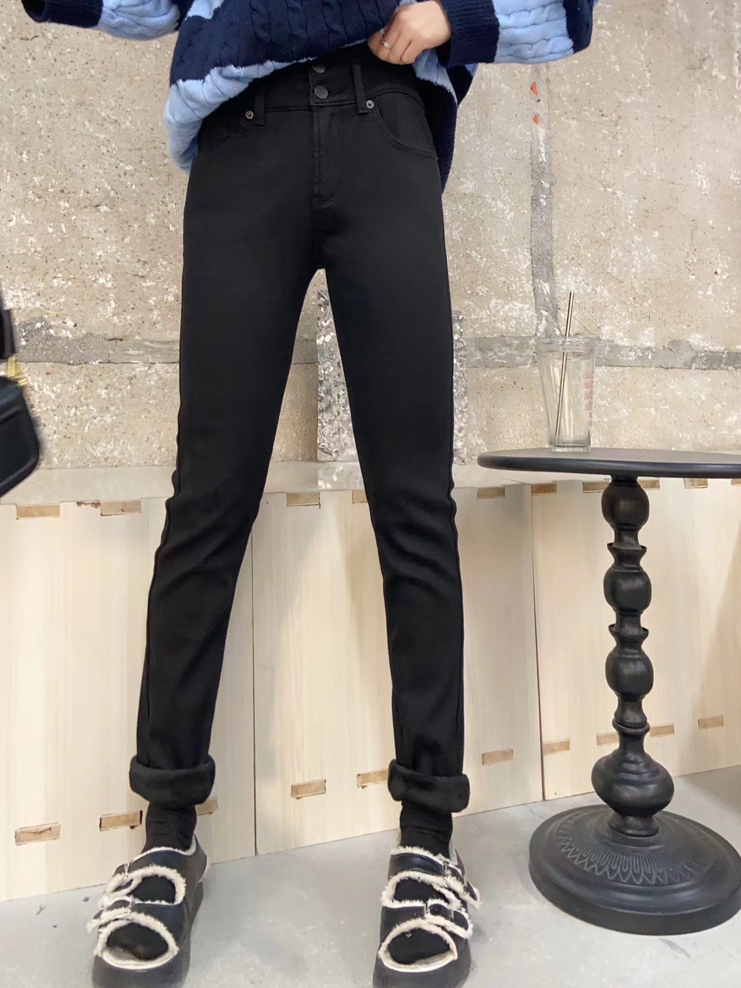 双扣加绒牛仔裤两粒扣高腰加绒修身灰色牛仔来咯~3D立体塑腰, 穿上就是漫画腿这种牛仔其实都不用多介绍就可以直接入手的款~更何况是全加绒的!这种裤子我能穿一万年 它家的裤子可是出了名的好穿,针对各种腿型设计不一样的裤型,每一个系列经过多年的调试和研究达到玩美!