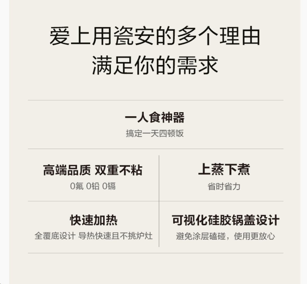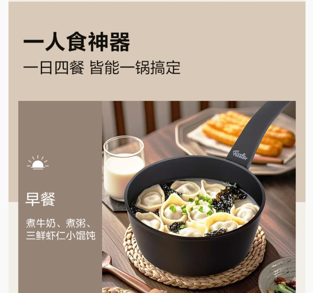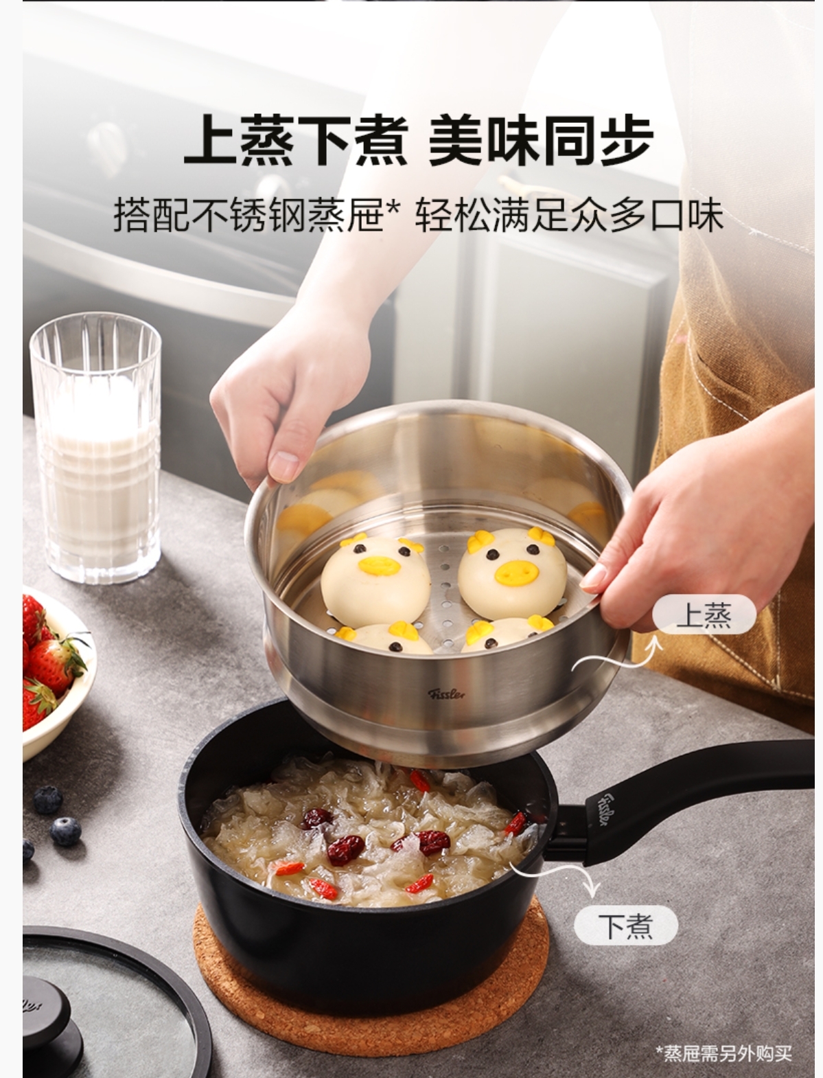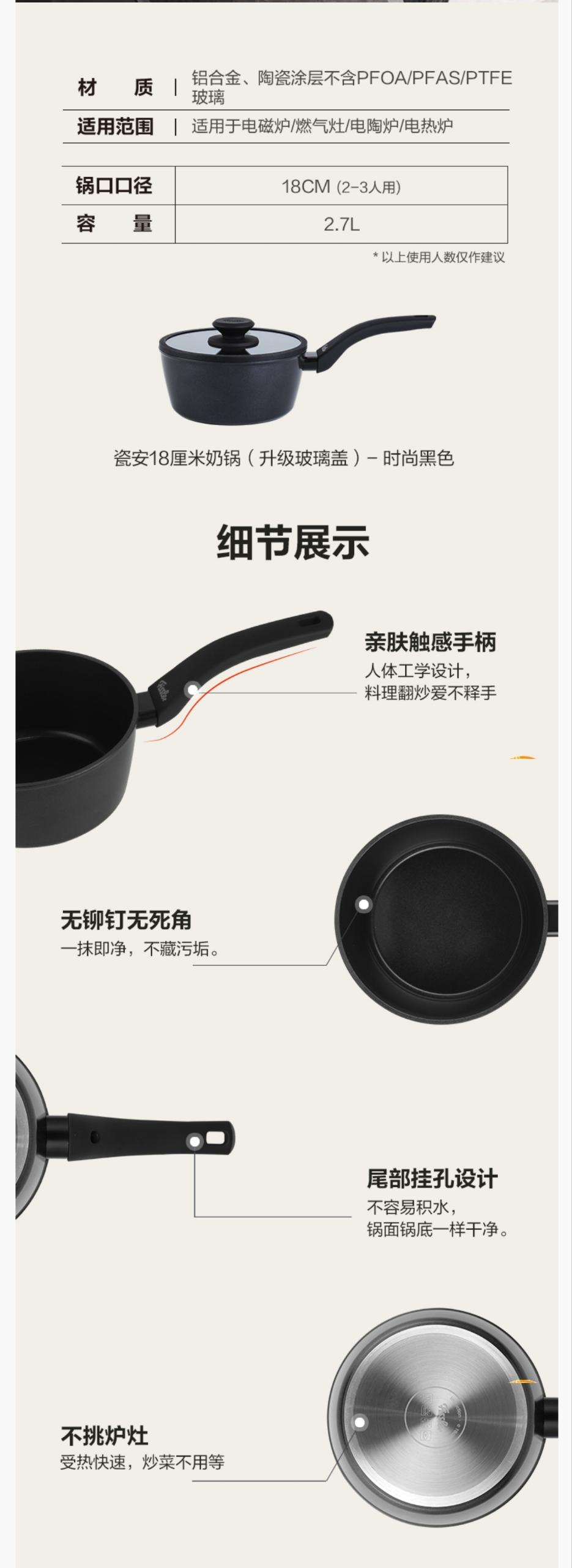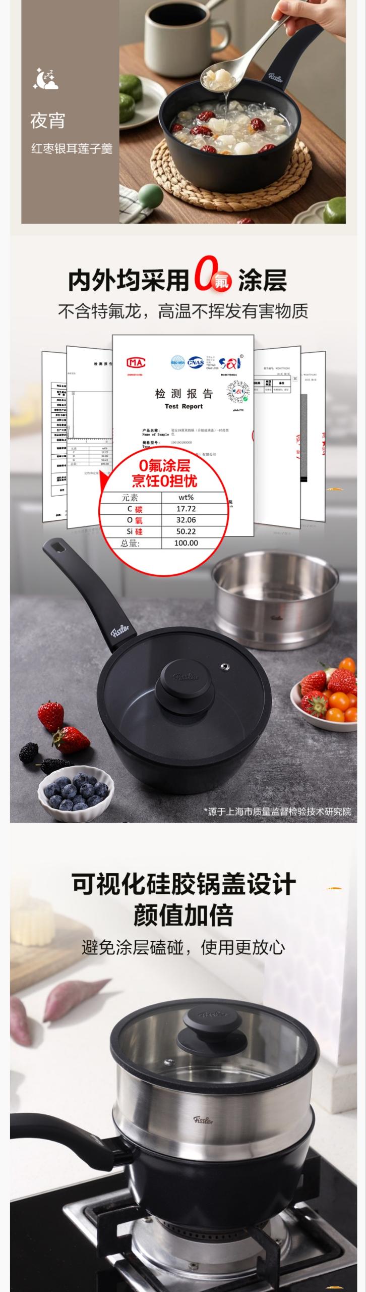 【商场补贴】10楼菲仕乐 18cm慈安单柄奶锅+盖+屉 天然陶瓷涂层 0氟 (一人食神器热牛奶煮泡面煲甜汤煮粥) 吊牌价949元 活动价249元