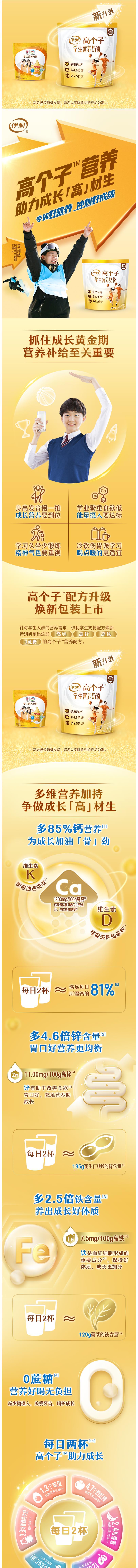 伊利高个子学生营养奶粉400g 16小袋装补铁锌钙维生素
