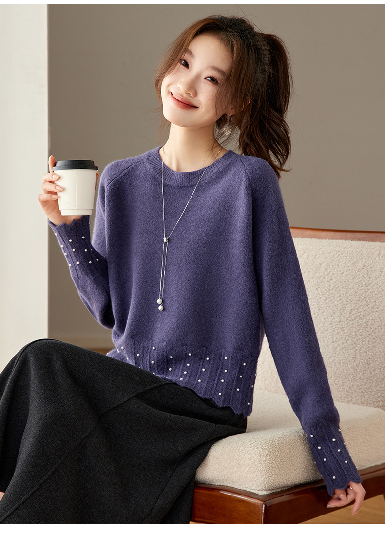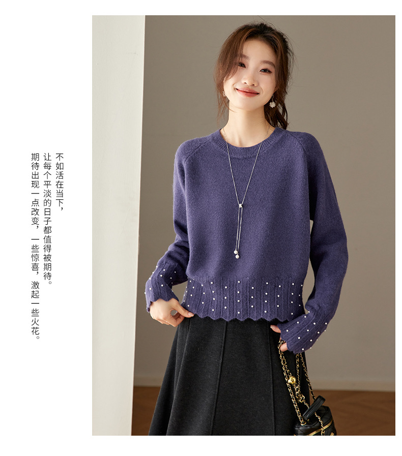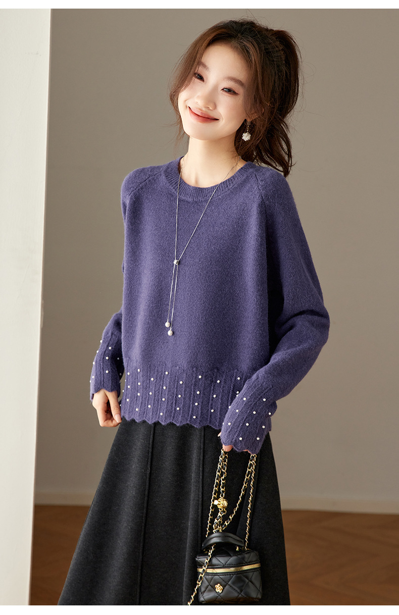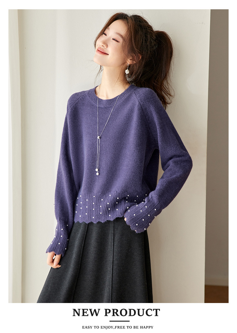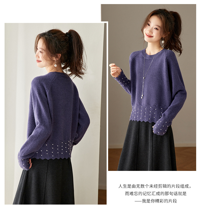 CC红色本命年圆领针织衫女秋冬高级感厚款慵懒宽松毛衣内搭打底上衣