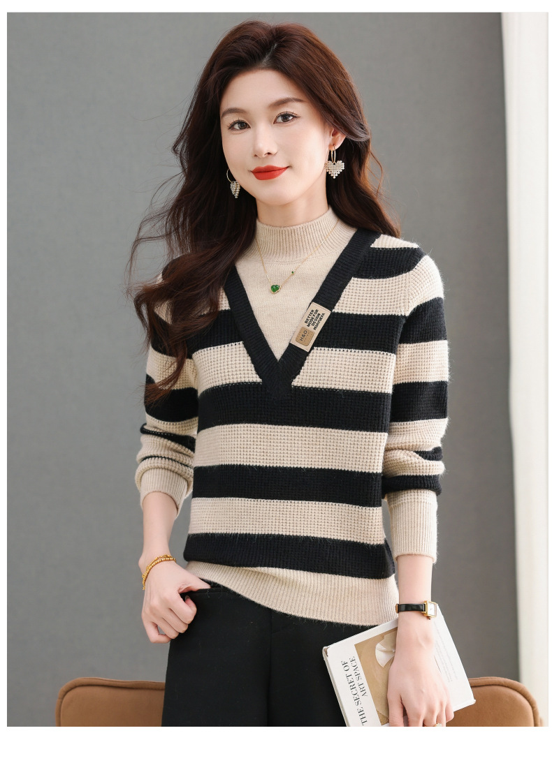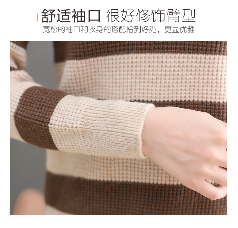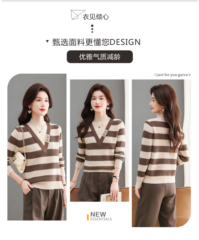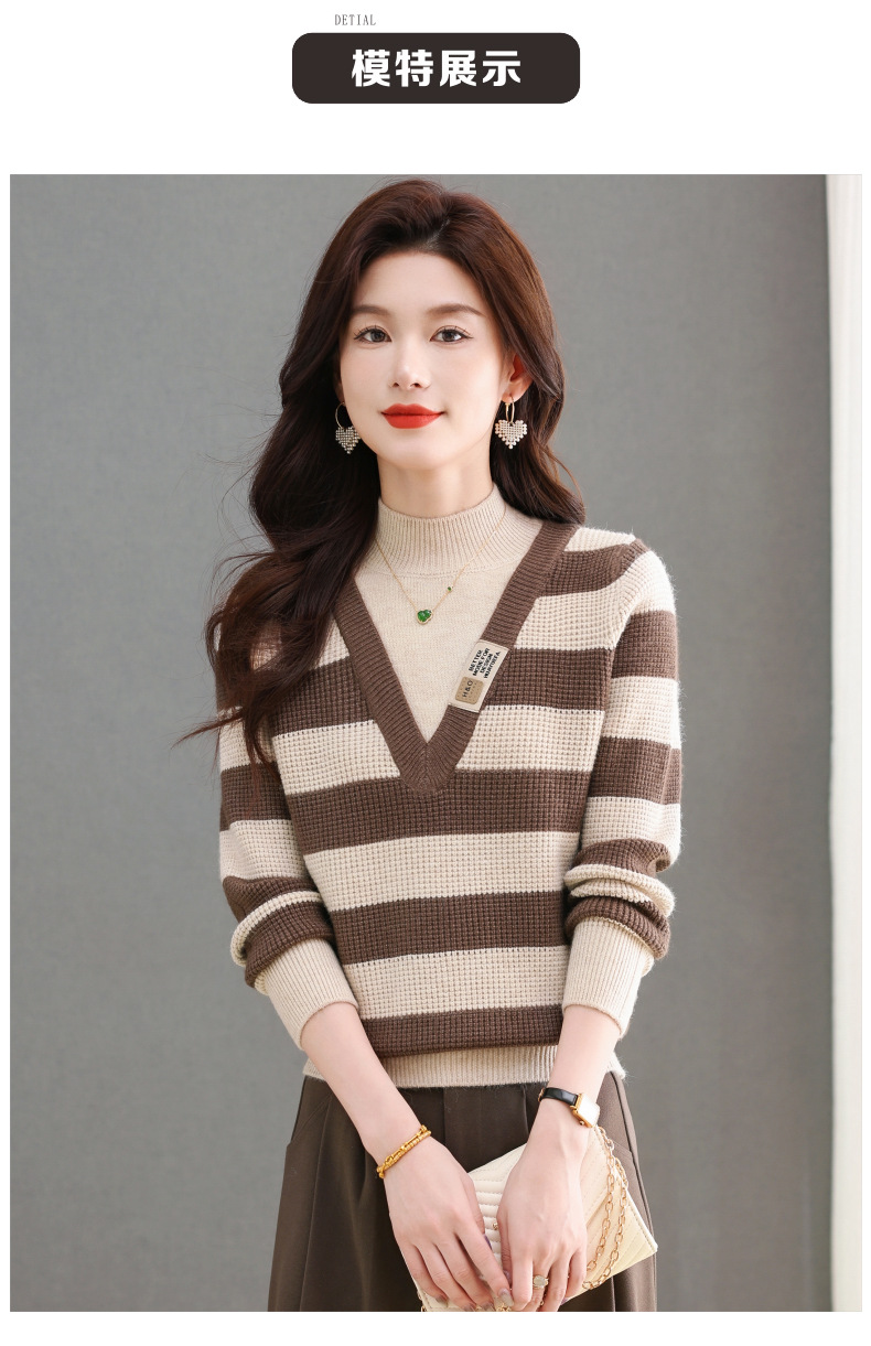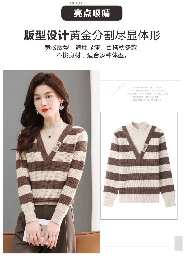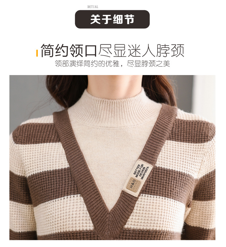 CC-tbrk-X1810条纹半高领打底衫毛衣2024秋冬新款套头厚款撞色宽松假两件上衣女