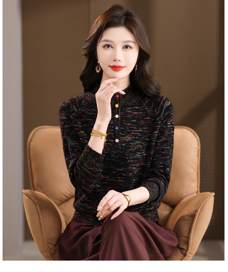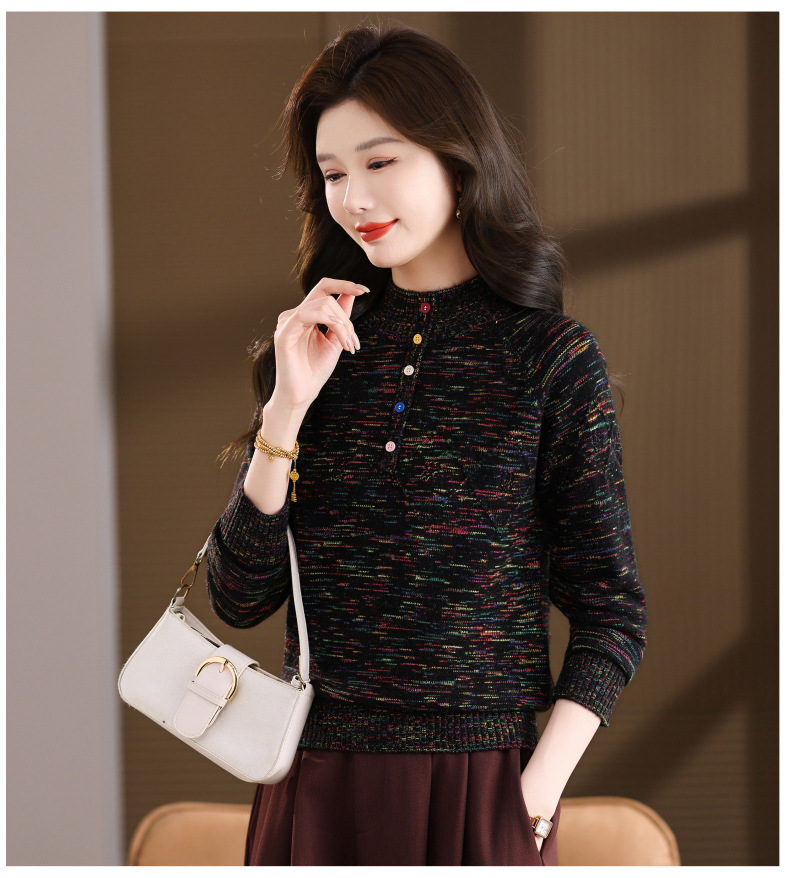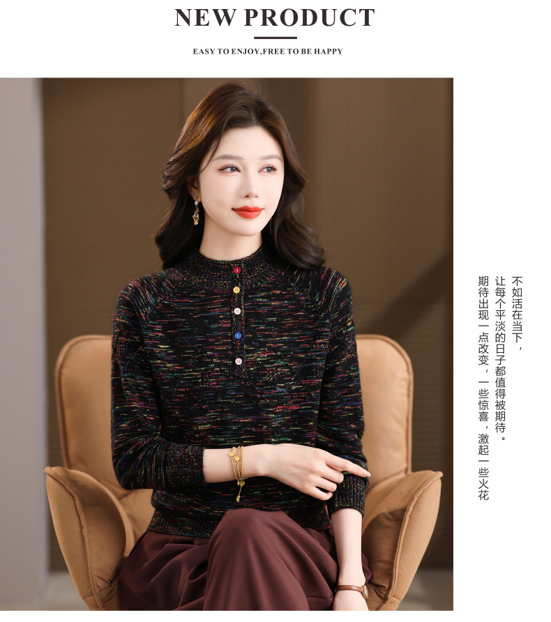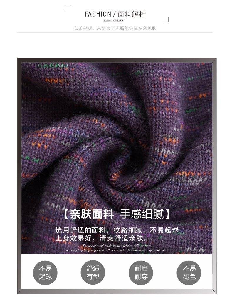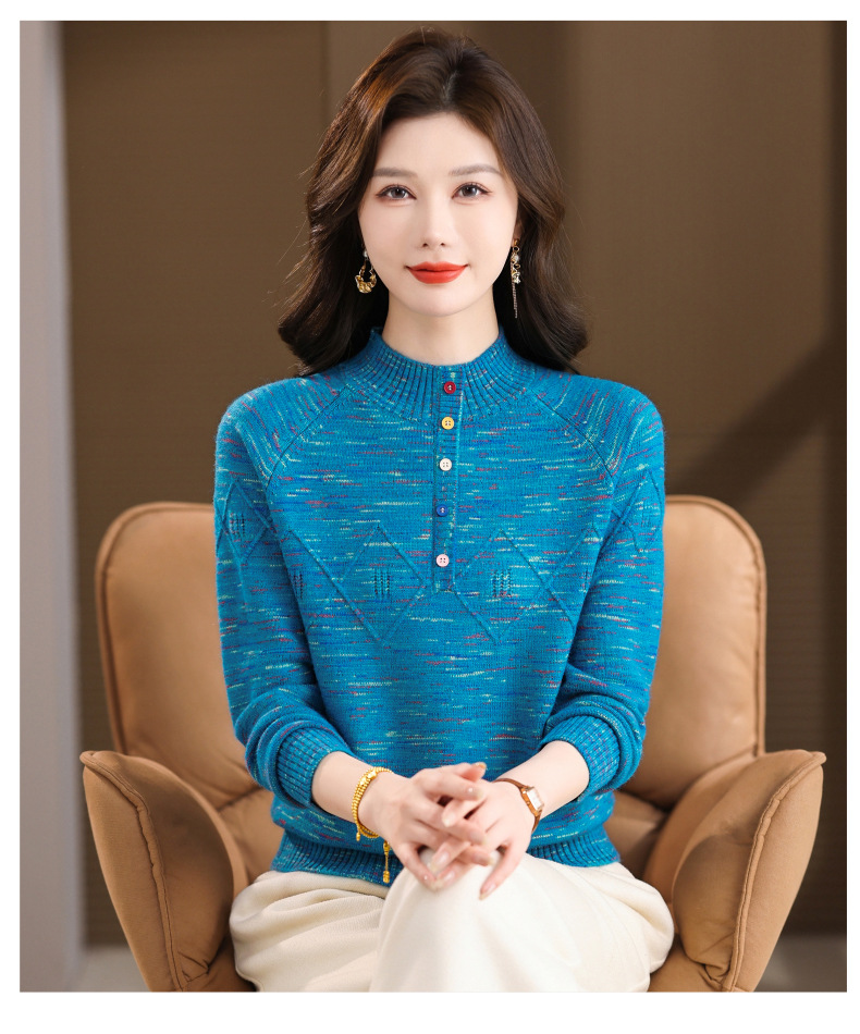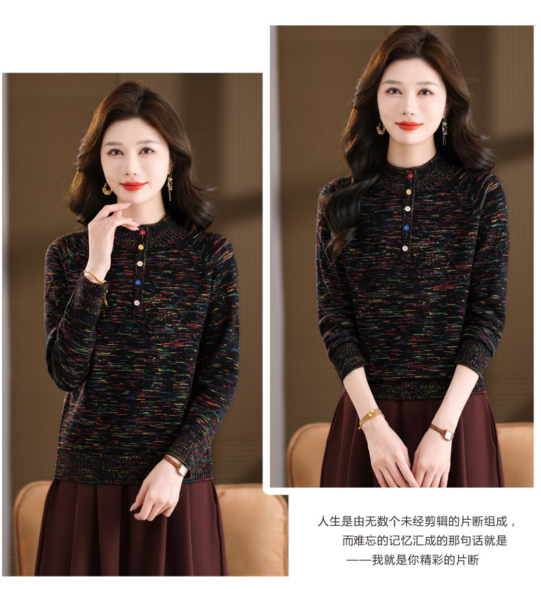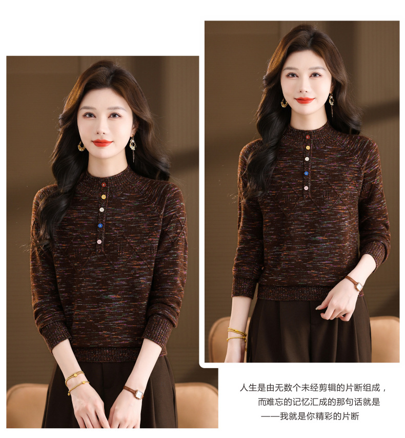 CC撞色彩扣酒红亮丝半高领针织衫女秋冬菱形提花单排扣修身内搭毛衣