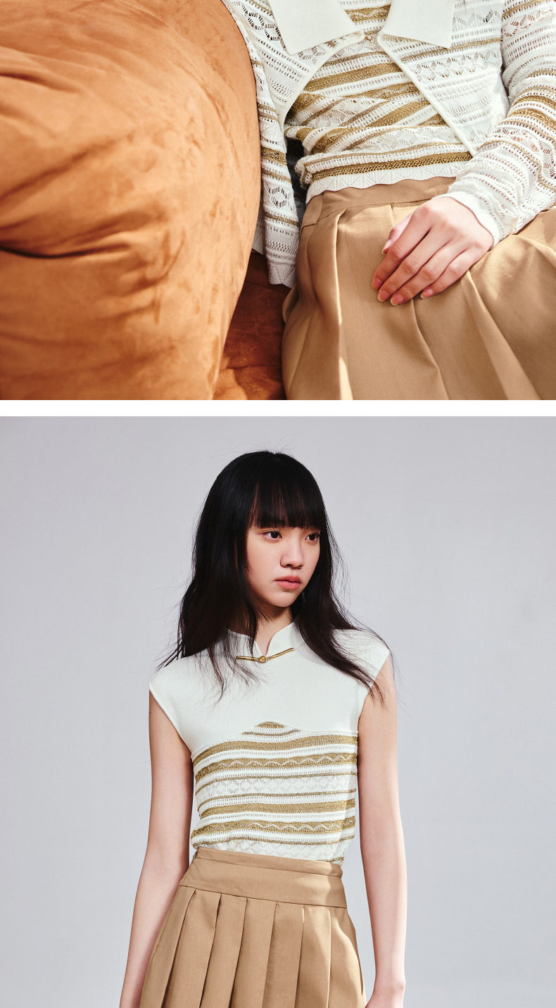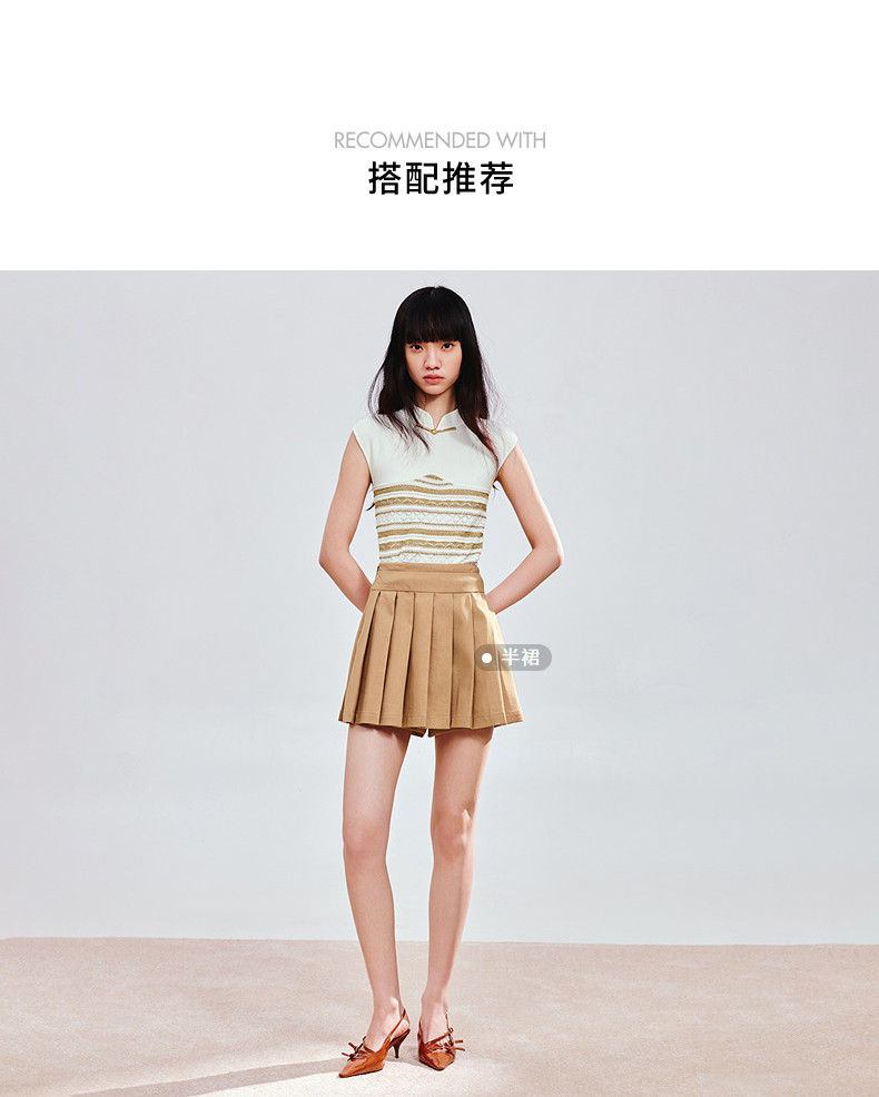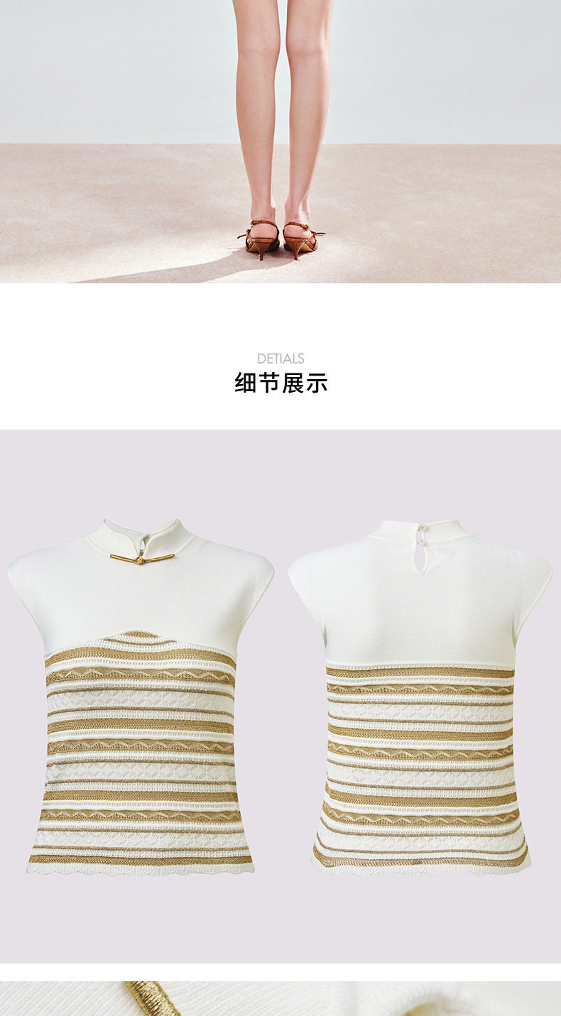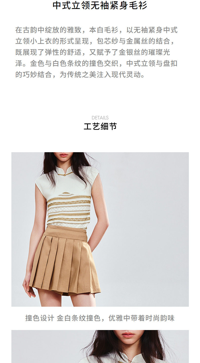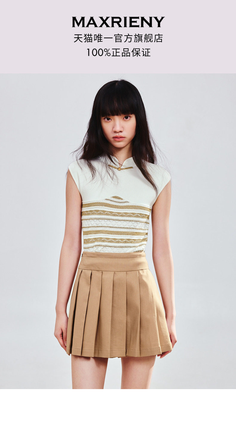 【商场同款】MAXRIENY中式盘扣立领无袖修身套头毛衫女25夏波嬉风(货号:MC86SW043)