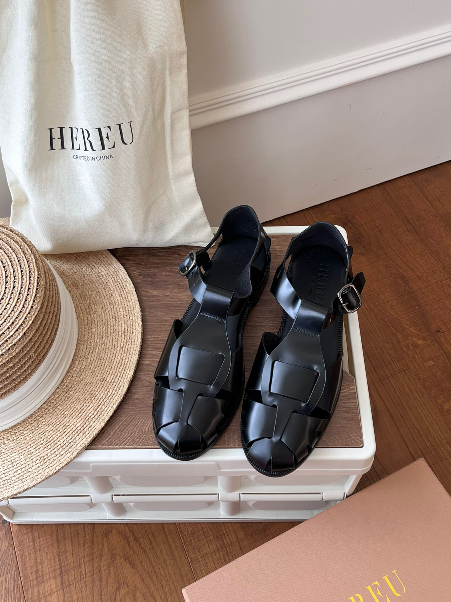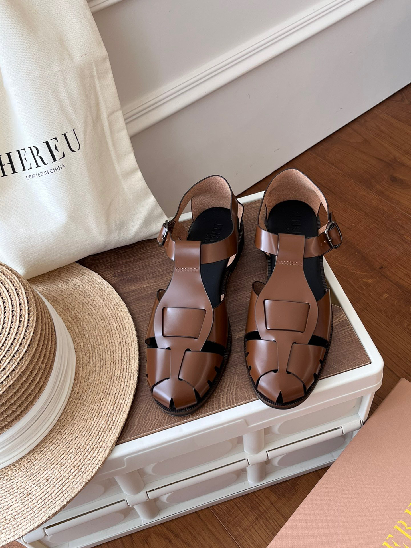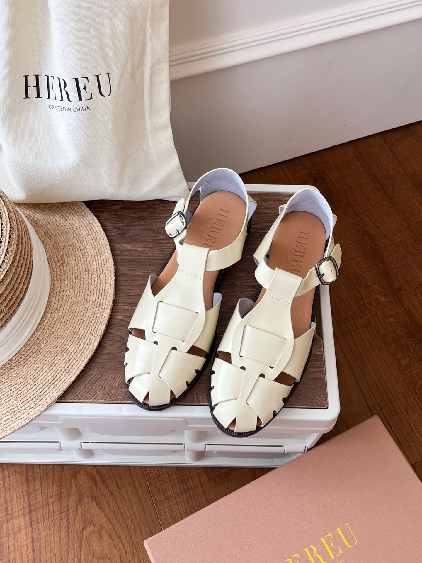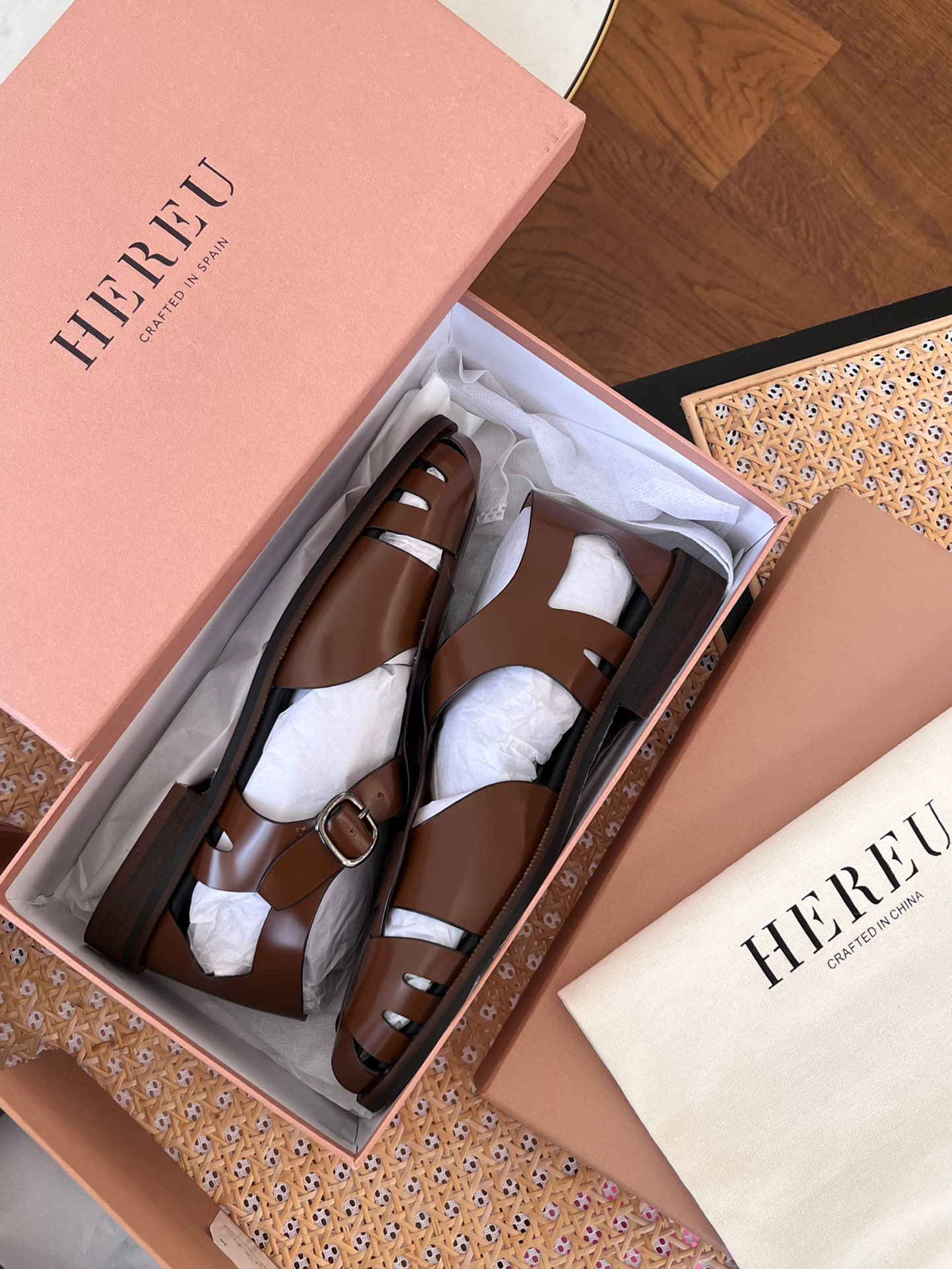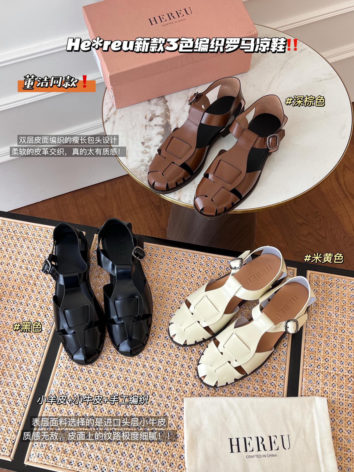 🔺𝐇𝐞𝐫𝐞𝐮 3色编织真皮罗马凉鞋