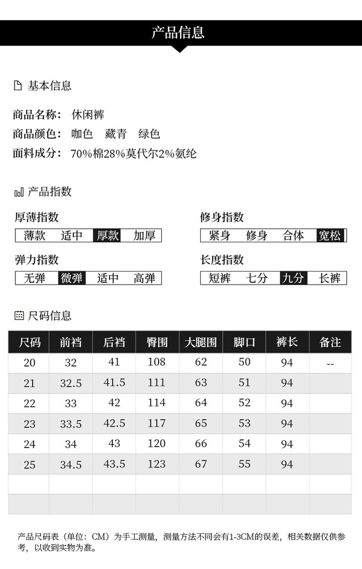 莫代尔灯心条绒裤厚款阔腿裤九分裤MYX9529