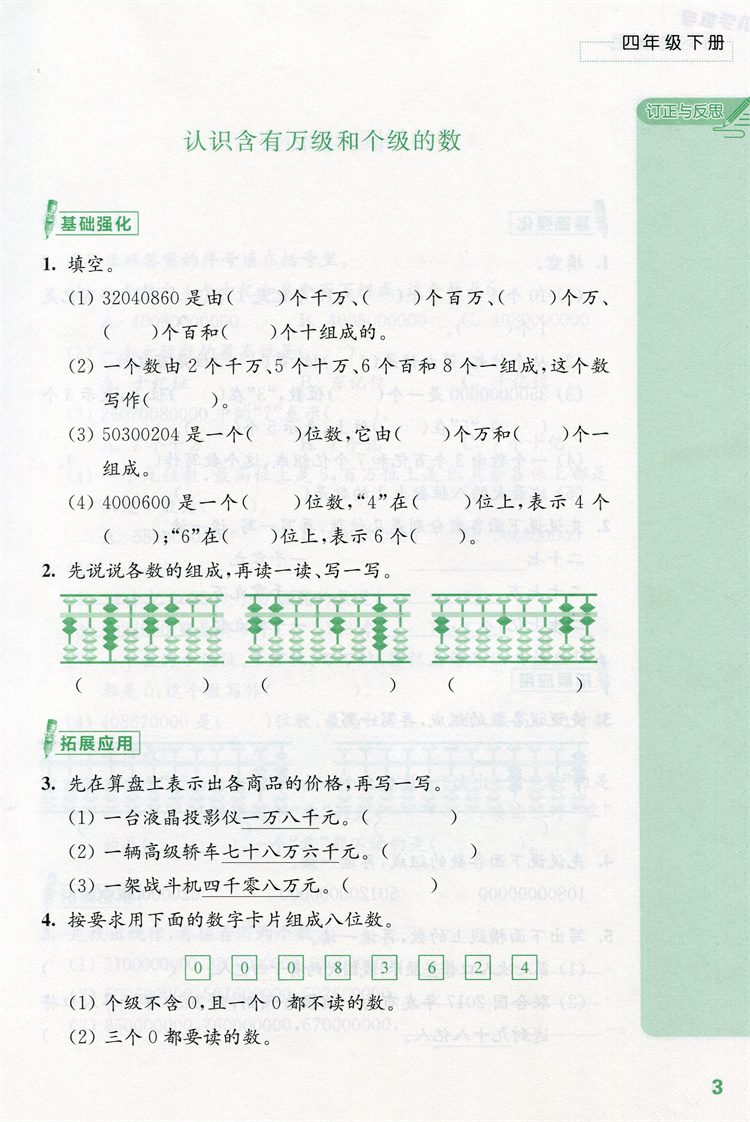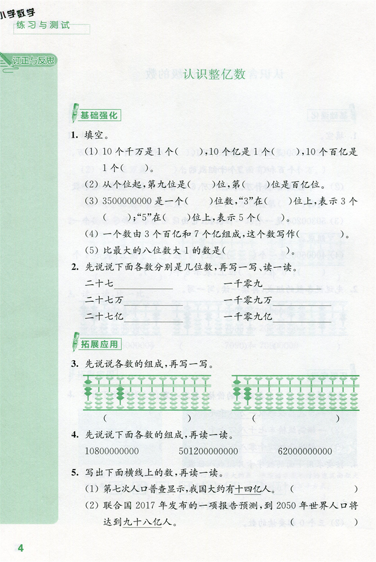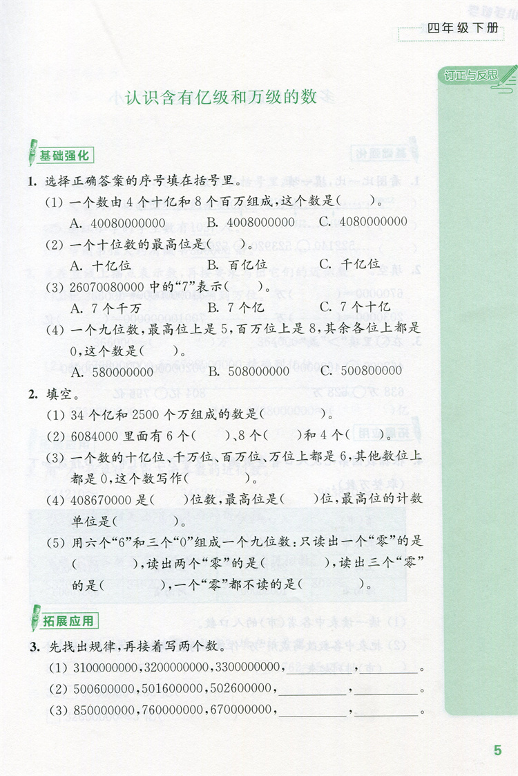 2026年春 练习与测试 不含试卷 小学数学四年级下册4下苏教版 小学同步教辅教材配套用书 江苏凤凰教育出版社