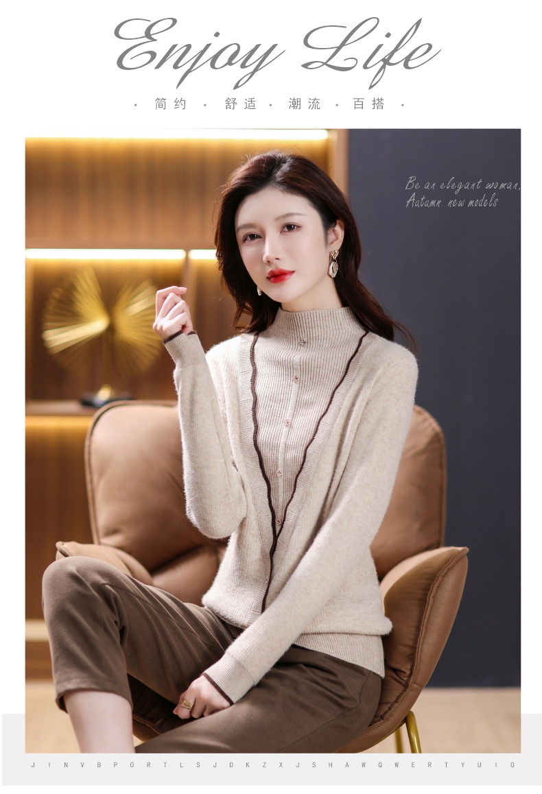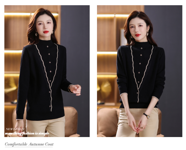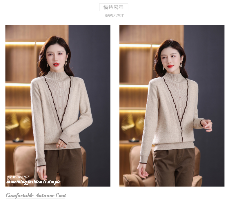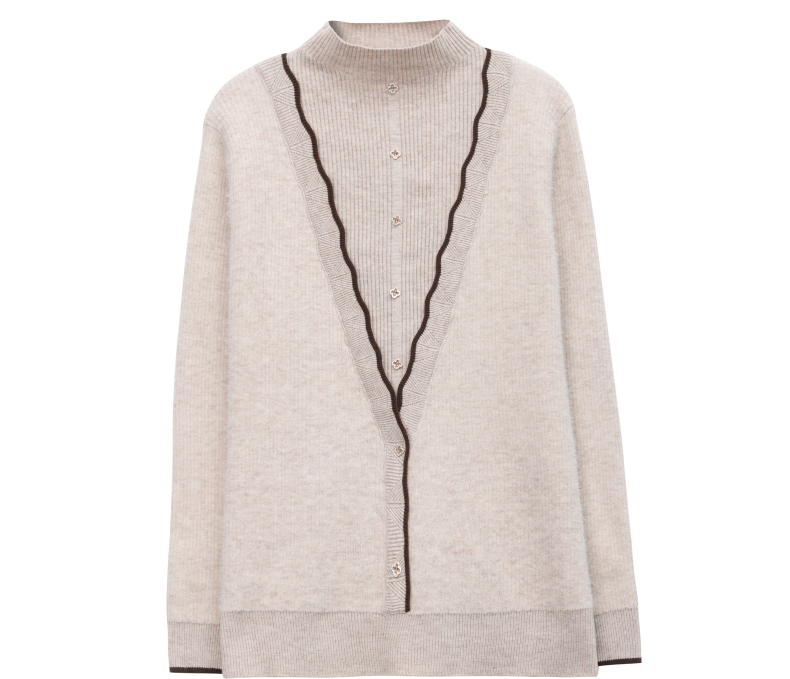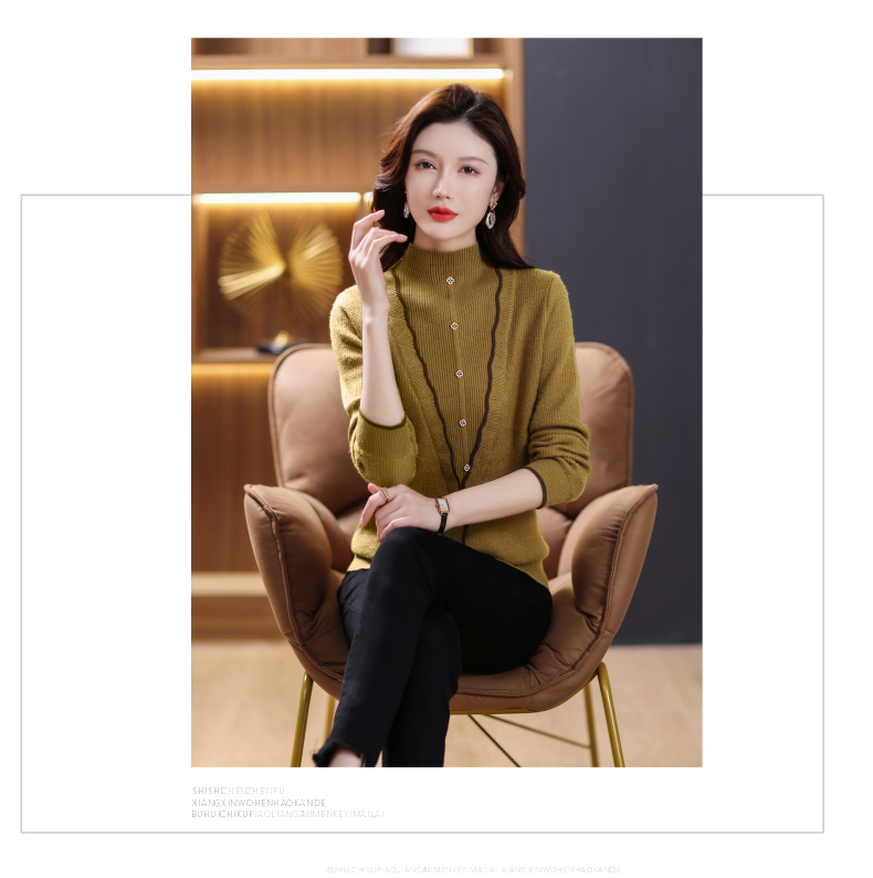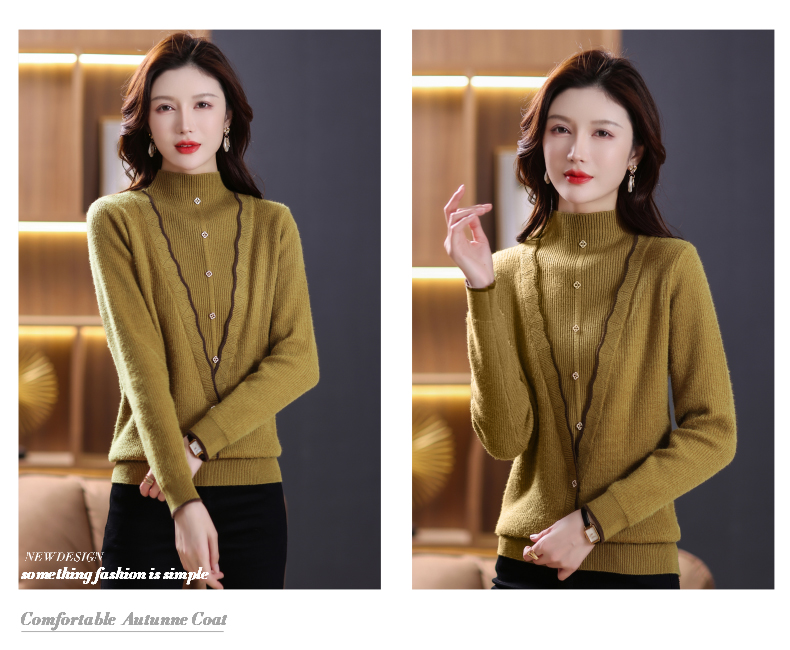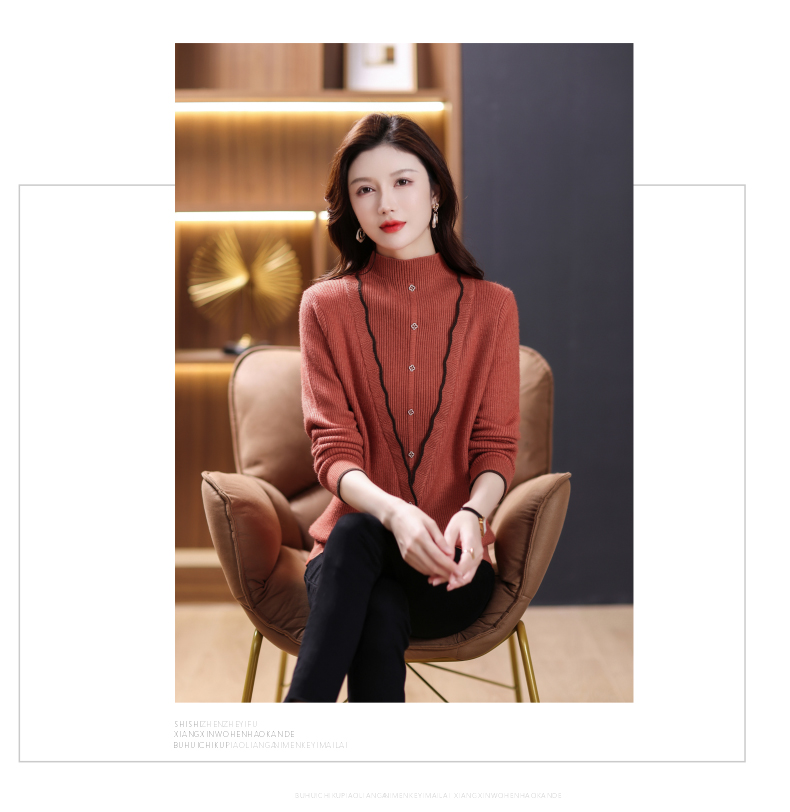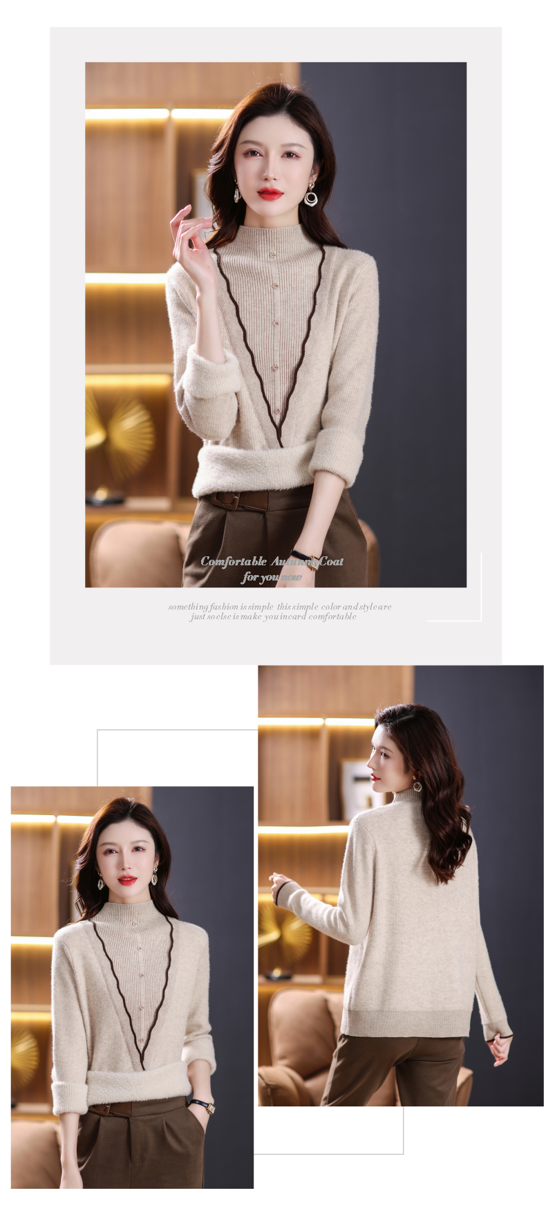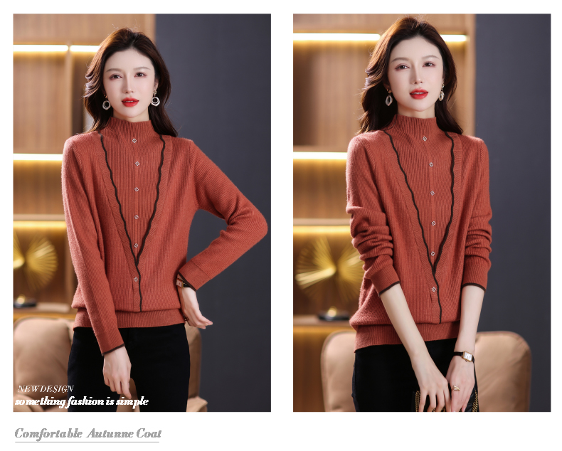 秋冬加绒加厚假两件针织衫一体绒上衣打底衫CC-51901