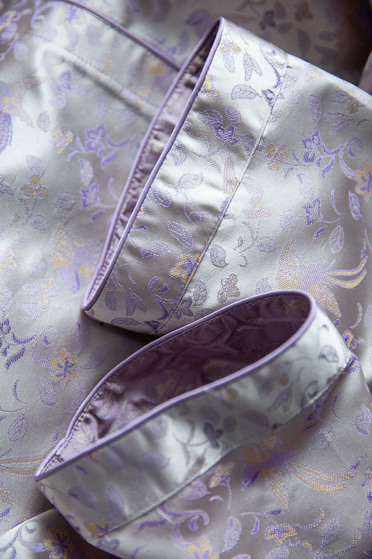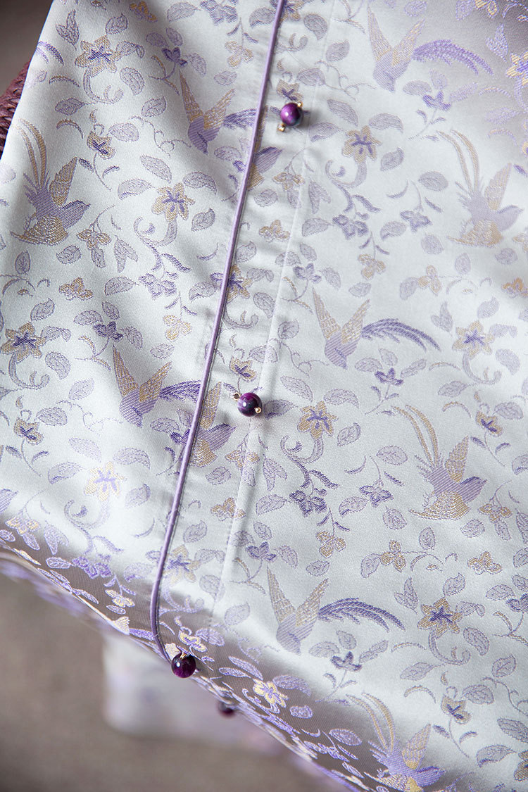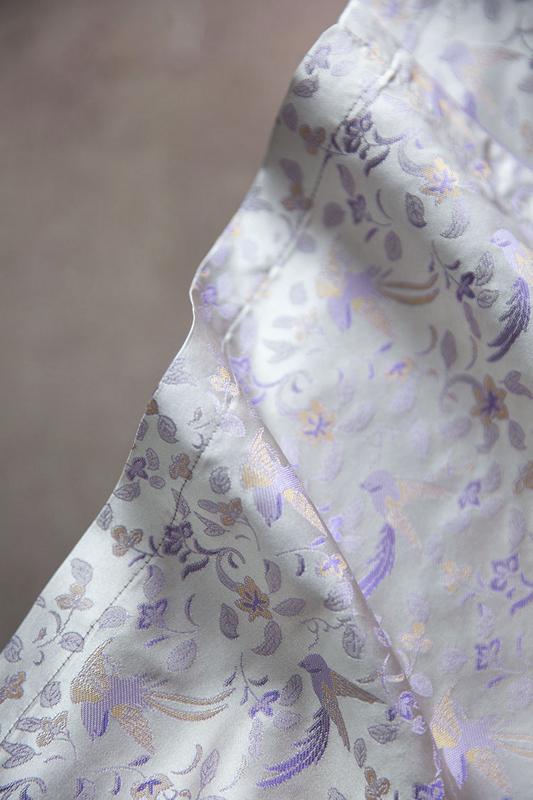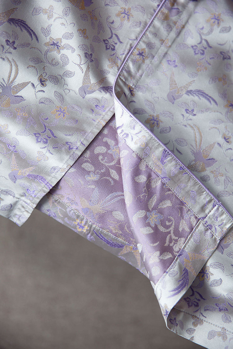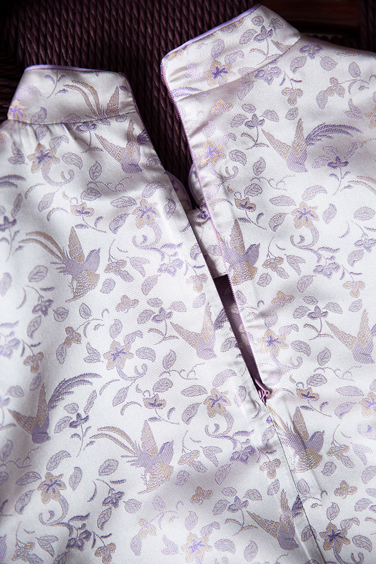 丁摩 高端宋锦连衣裙 新中式桑蚕丝旗袍裙立领短袖女真丝前开叉裙子4ZF-005