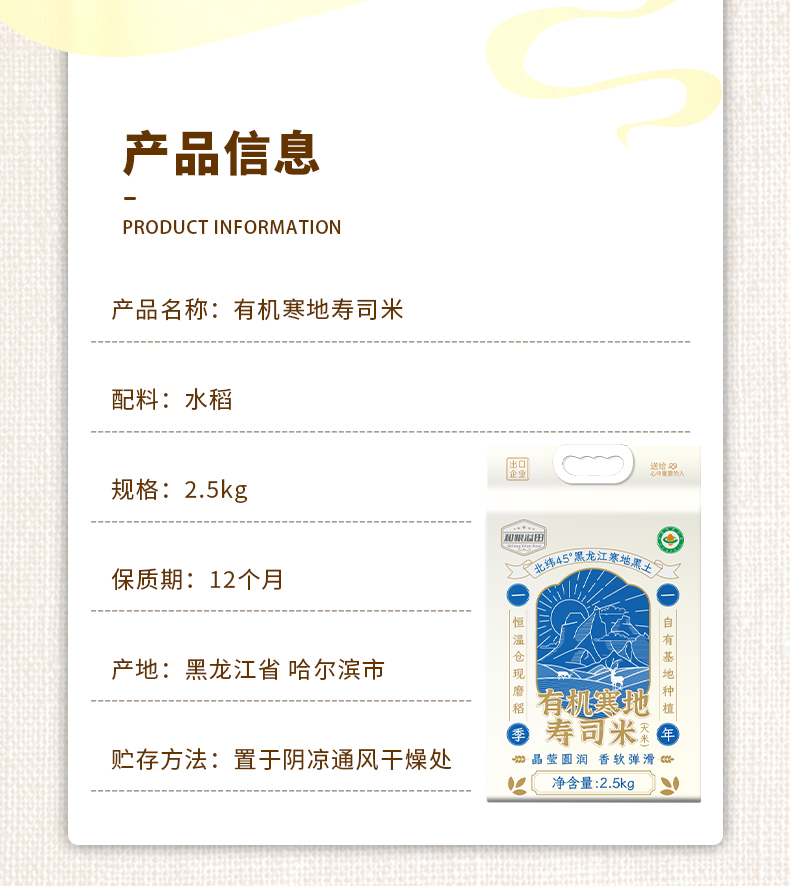 溢田有机寒地寿司米2.5kg