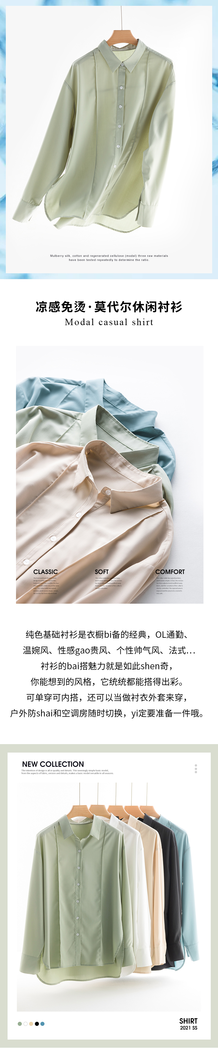 莫代尔衬衫|宽松版衬衫 设计感 廓形 多色上衣