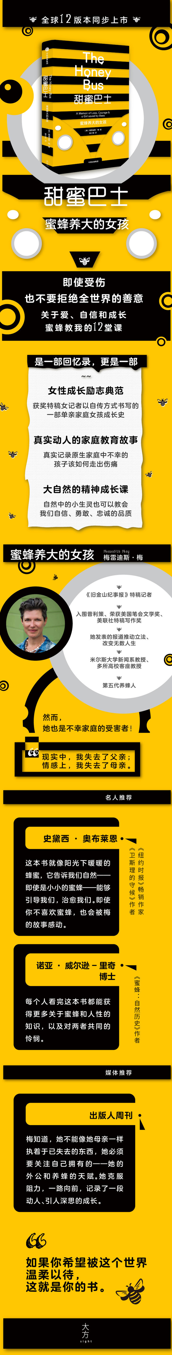这本书就像阳光下暖暖的蜂蜜,它告诉我们自然——即使是小小的蜜蜂——能够引导我们,我们。即使你不喜欢蜜蜂,也会被梅的故事感动。