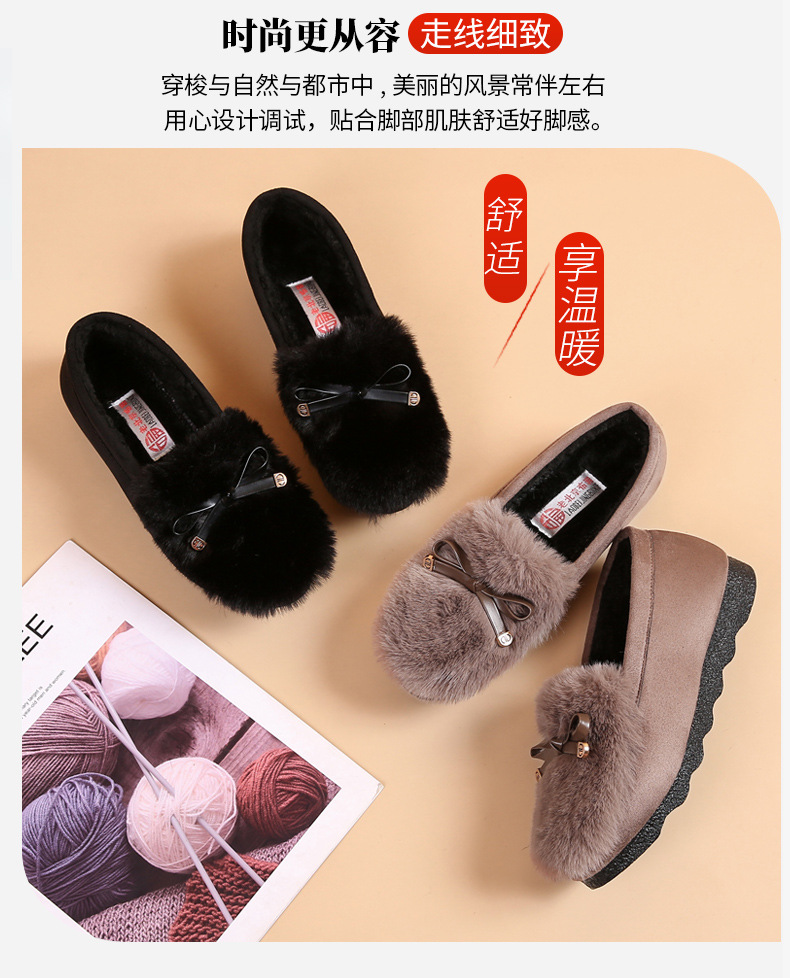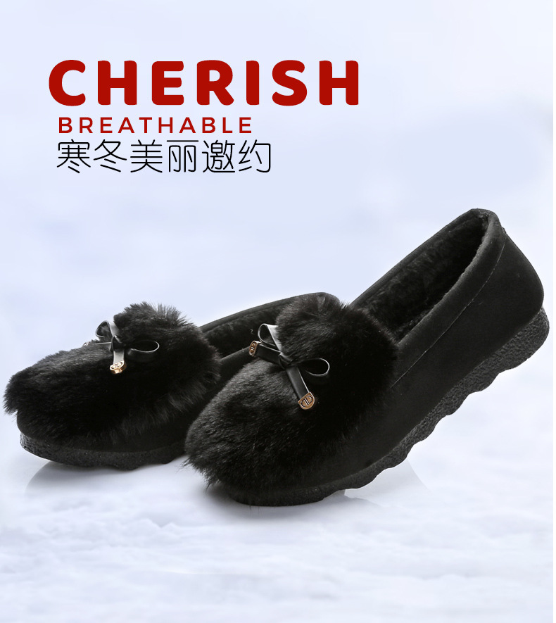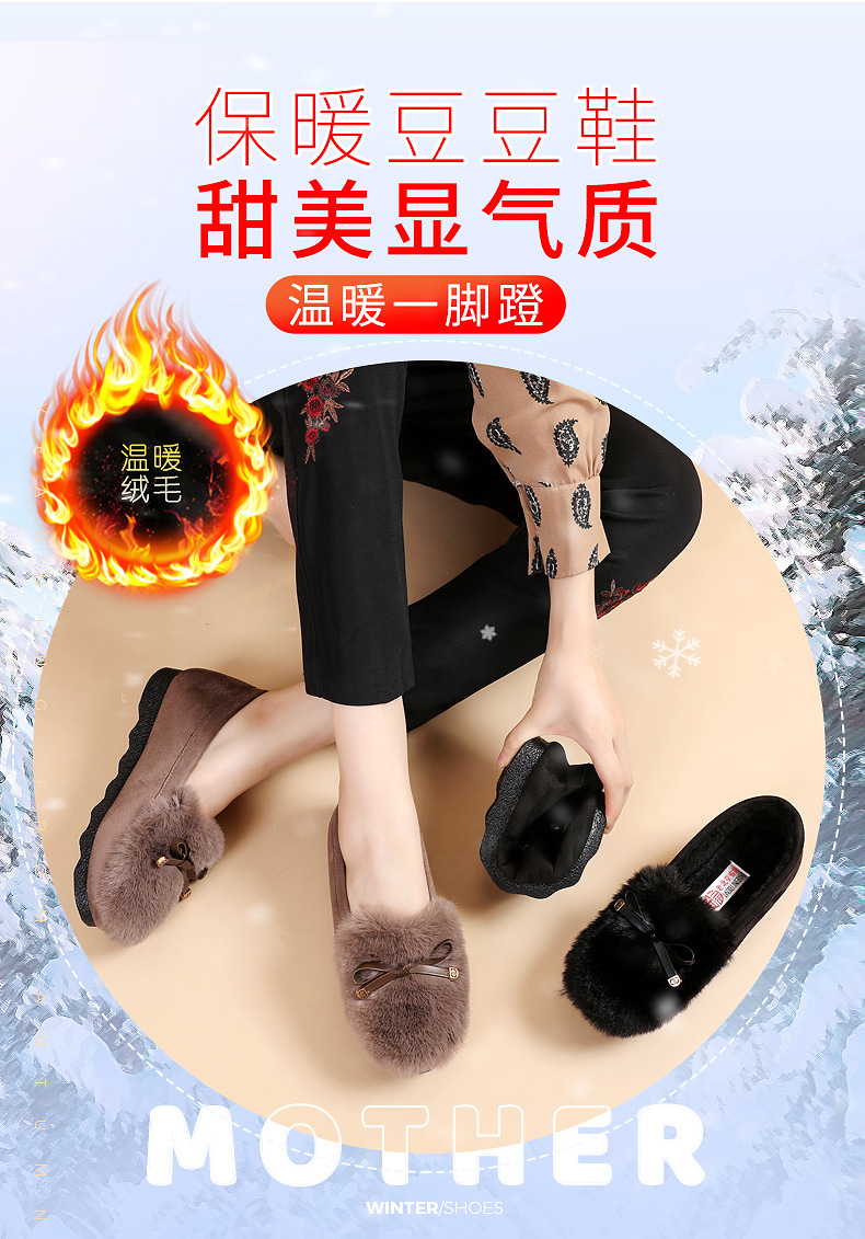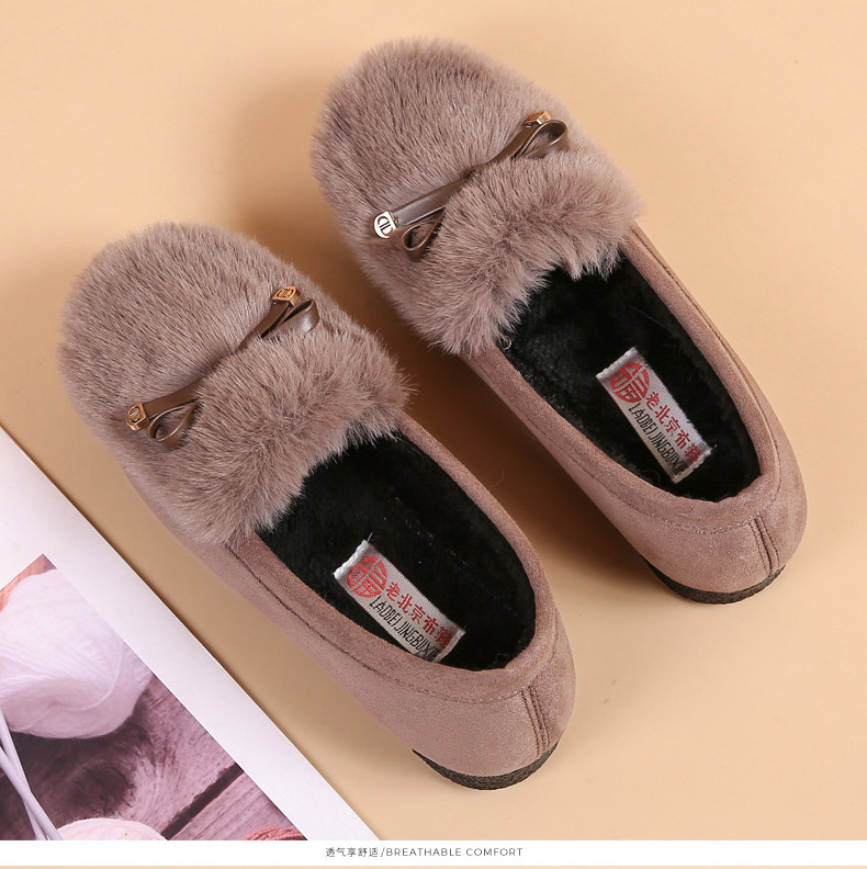 YM-M06 秋冬毛毛鞋女外穿棉鞋2022新款加绒保暖豆豆鞋老北京布鞋女棉瓢鞋