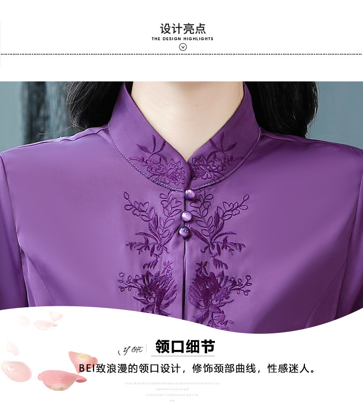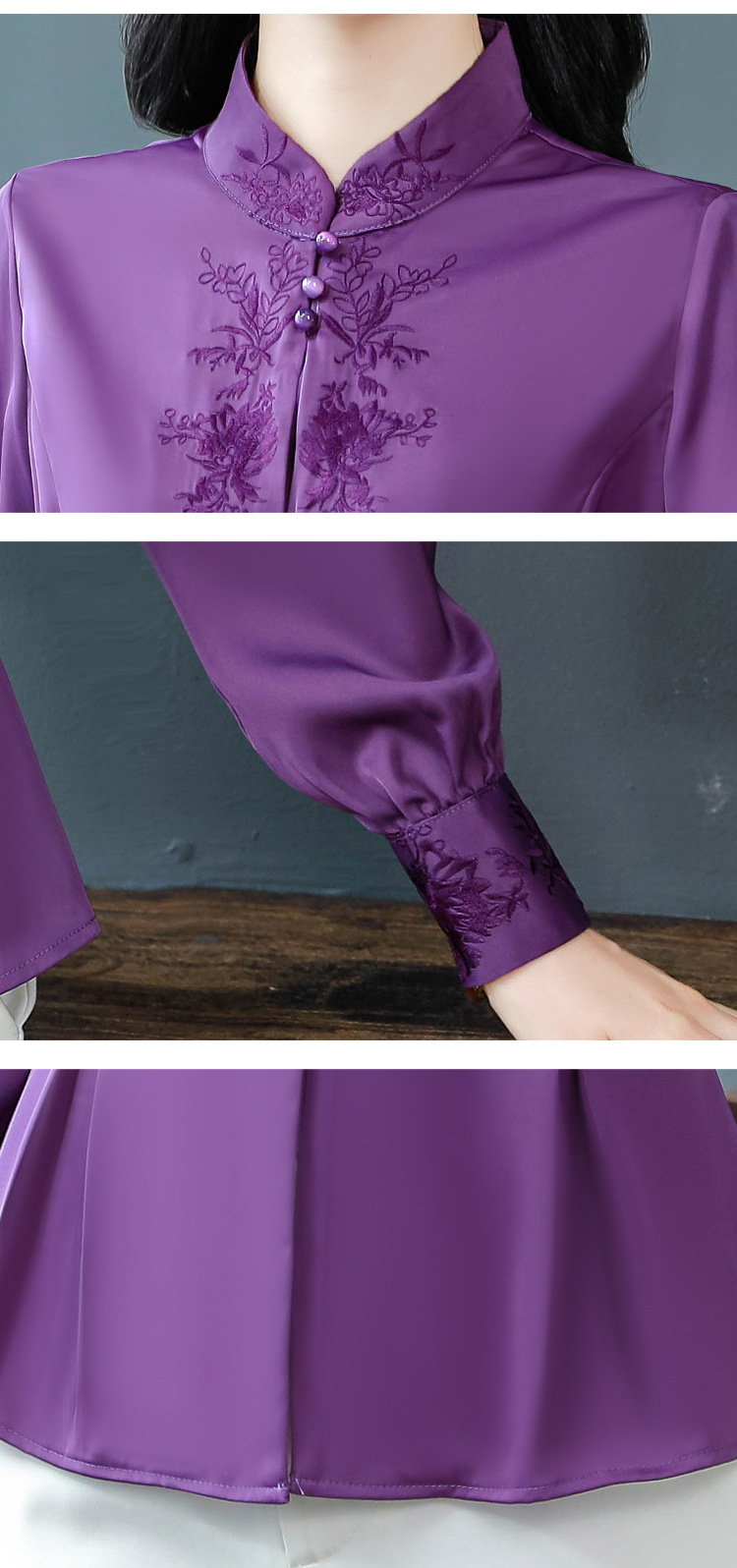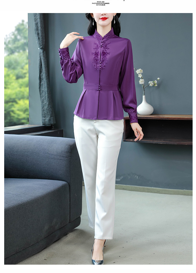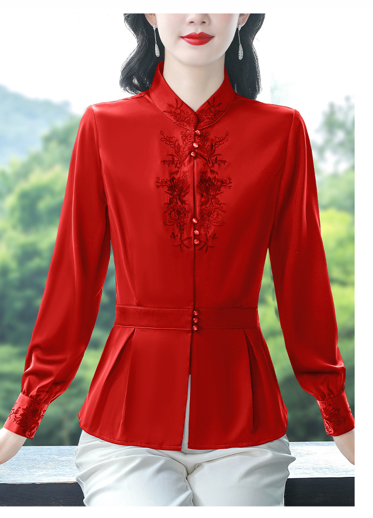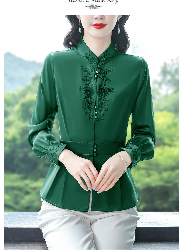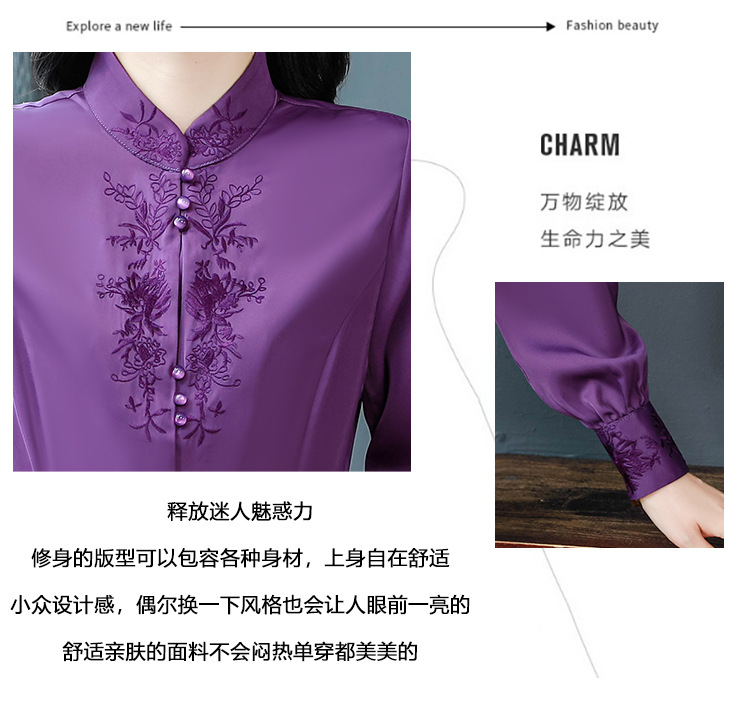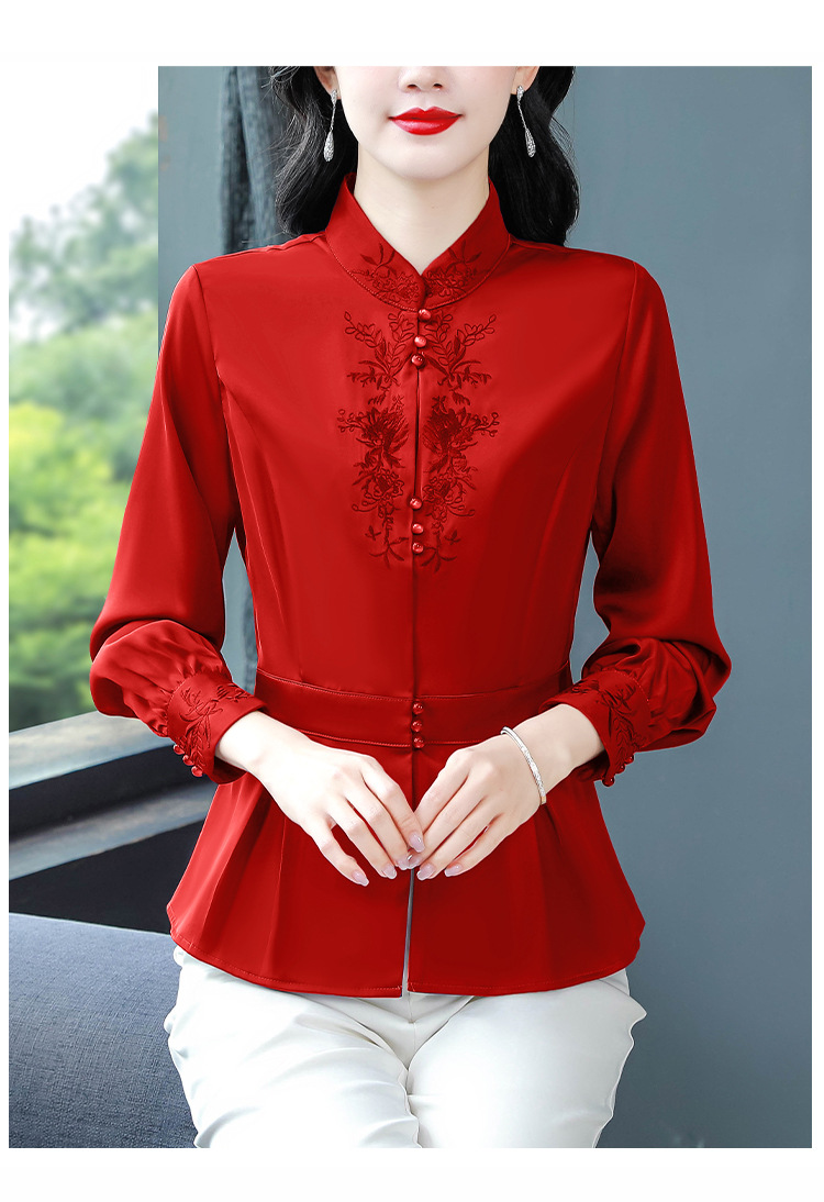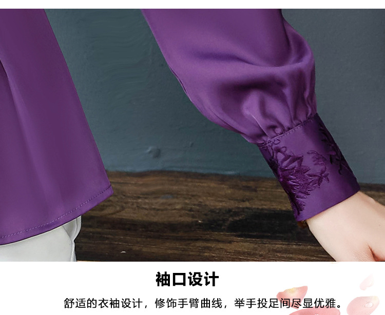 新中式缎面立领长袖衬衫女2025秋季新款高端刺绣衬衣减龄收腰上衣
