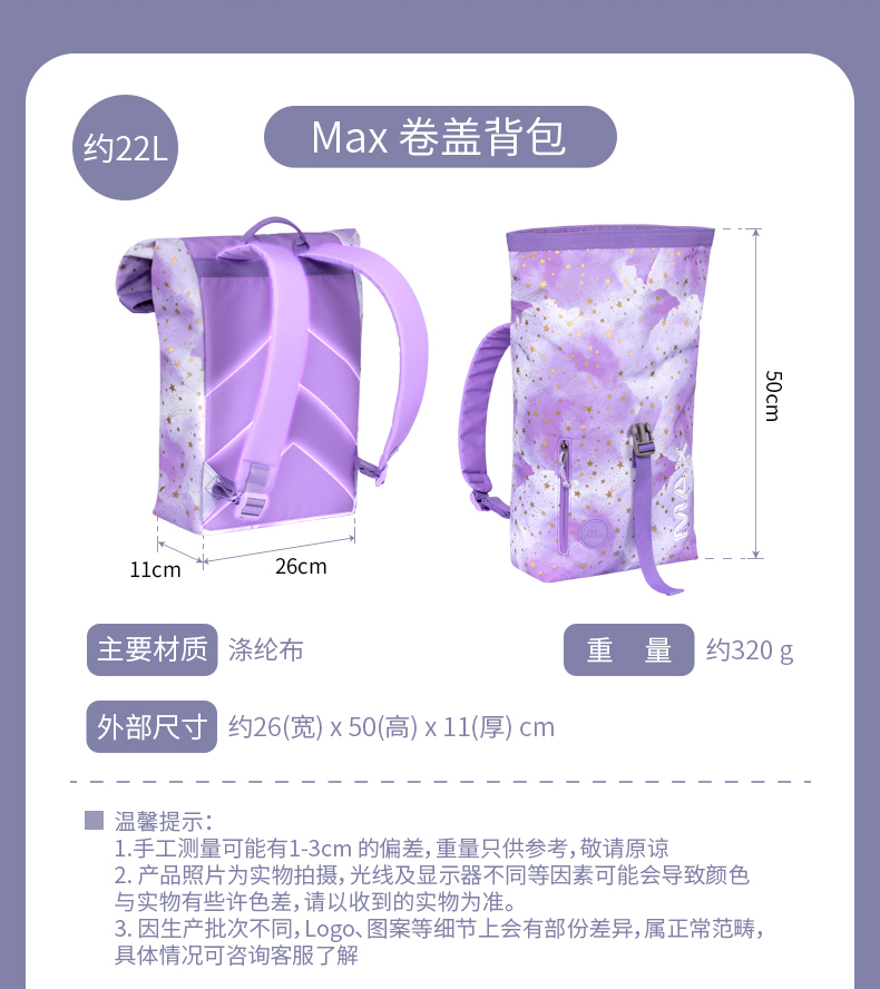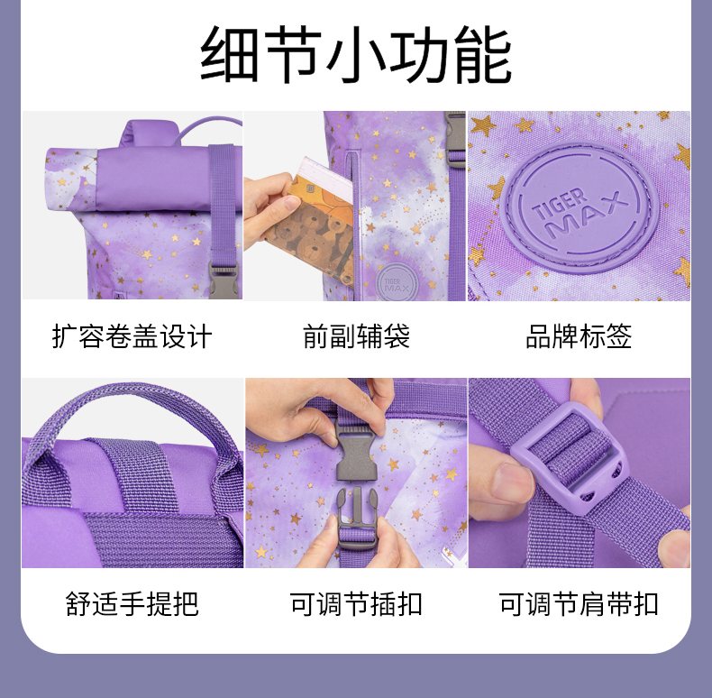tigerfamily虎米 男女Tiger Max 卷盖背包双肩包大容量背包初中生书包时尚户外运动旅行包