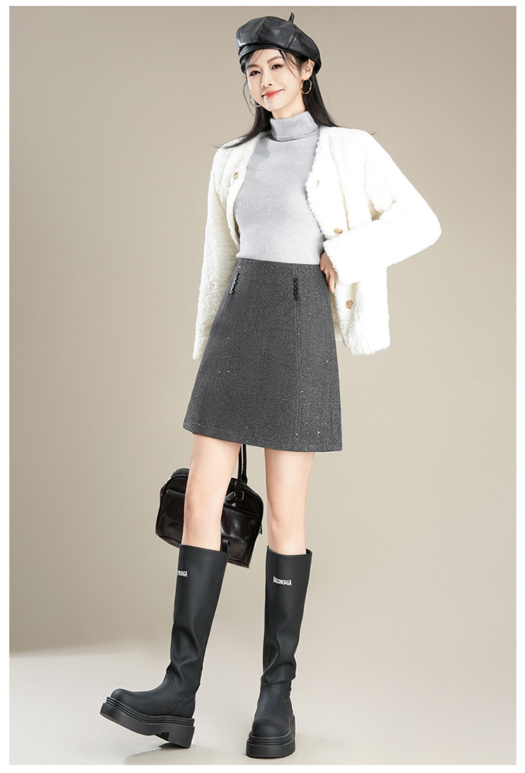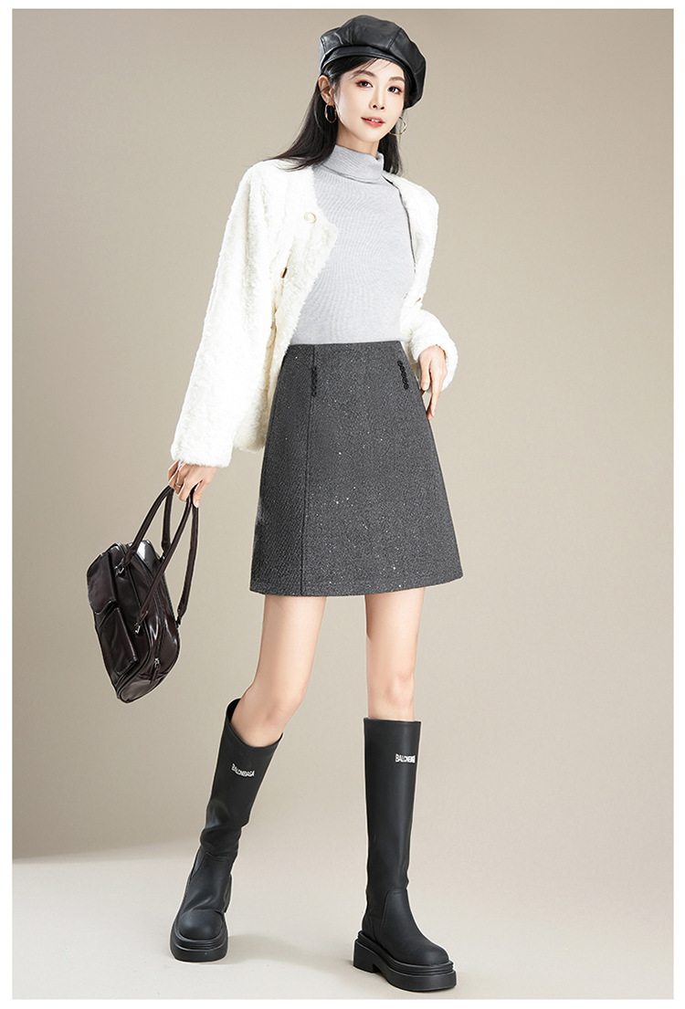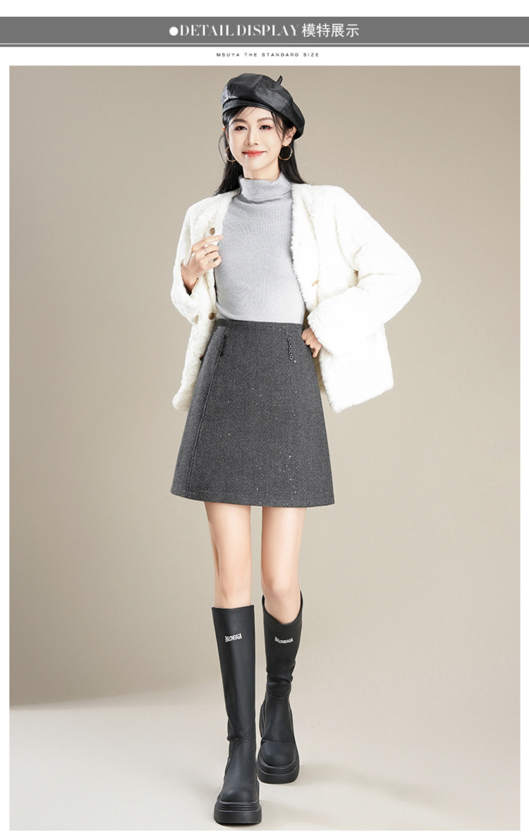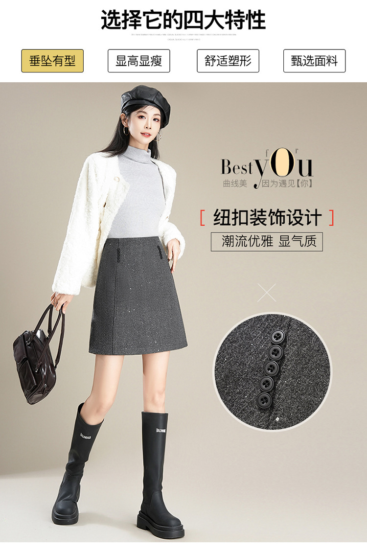 「自」全新升级【铂金会员146/天猫189/差价43】(65803)洛诗琳气质毛呢半身裙2025秋冬新款小个子高腰显瘦A字裙女
