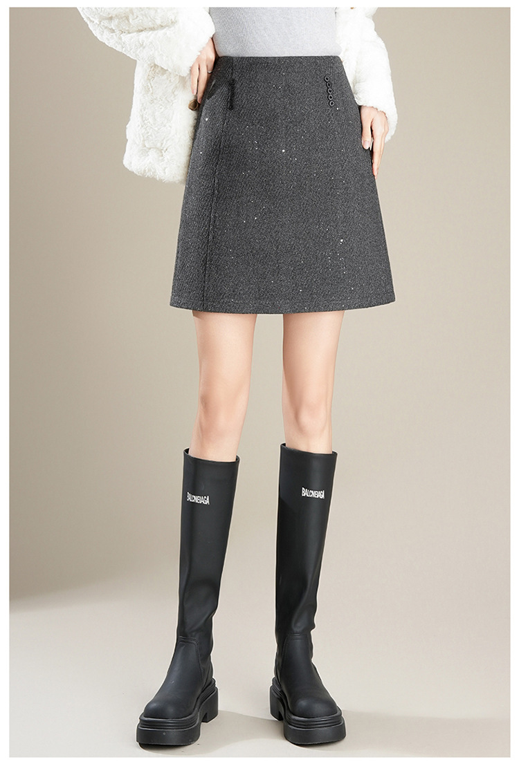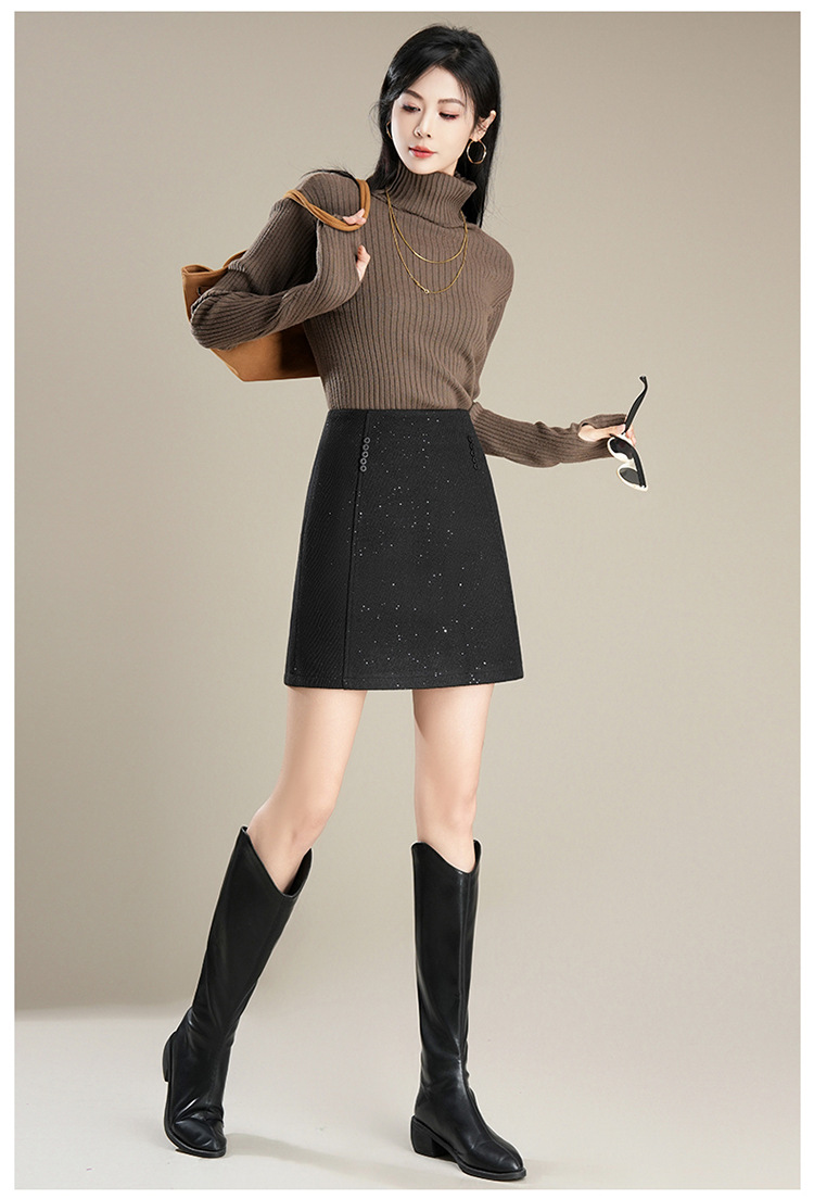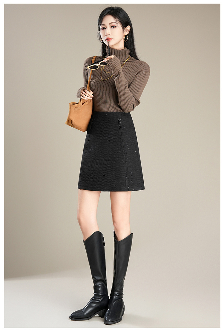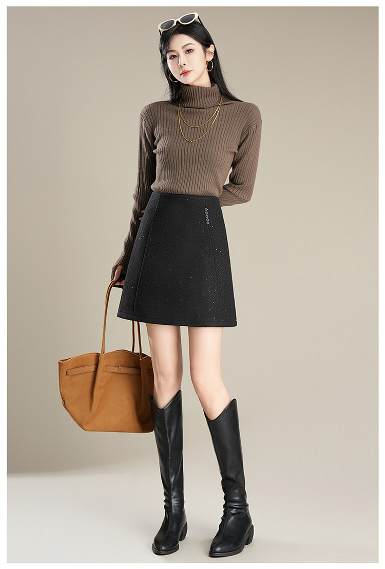 「自」全新升级【铂金会员146/天猫189/差价43】(65803)洛诗琳气质毛呢半身裙2025秋冬新款小个子高腰显瘦A字裙女