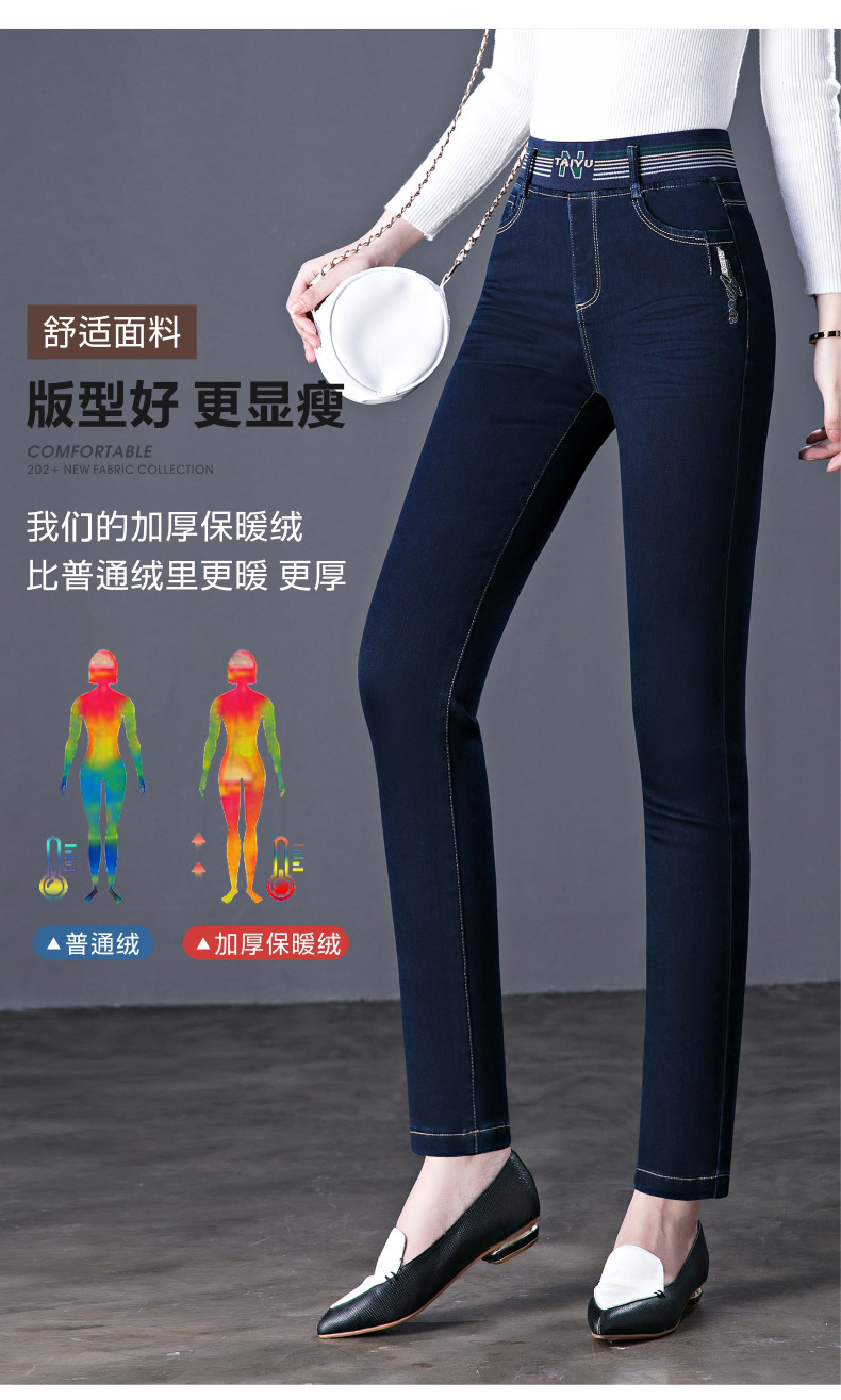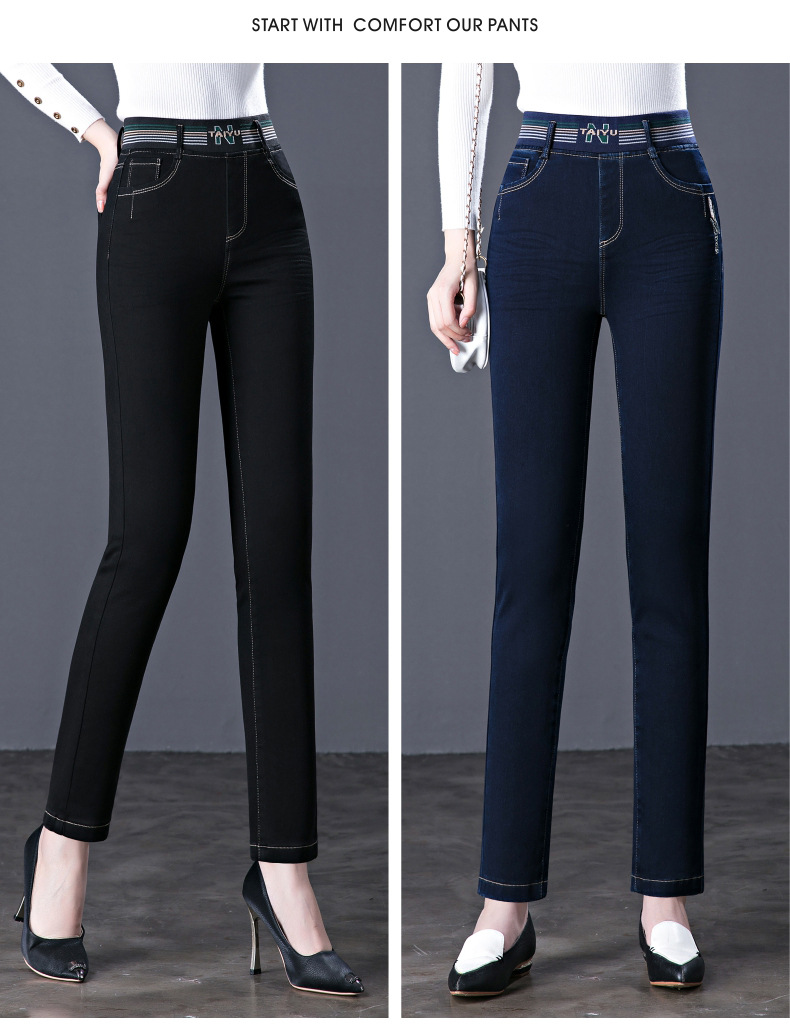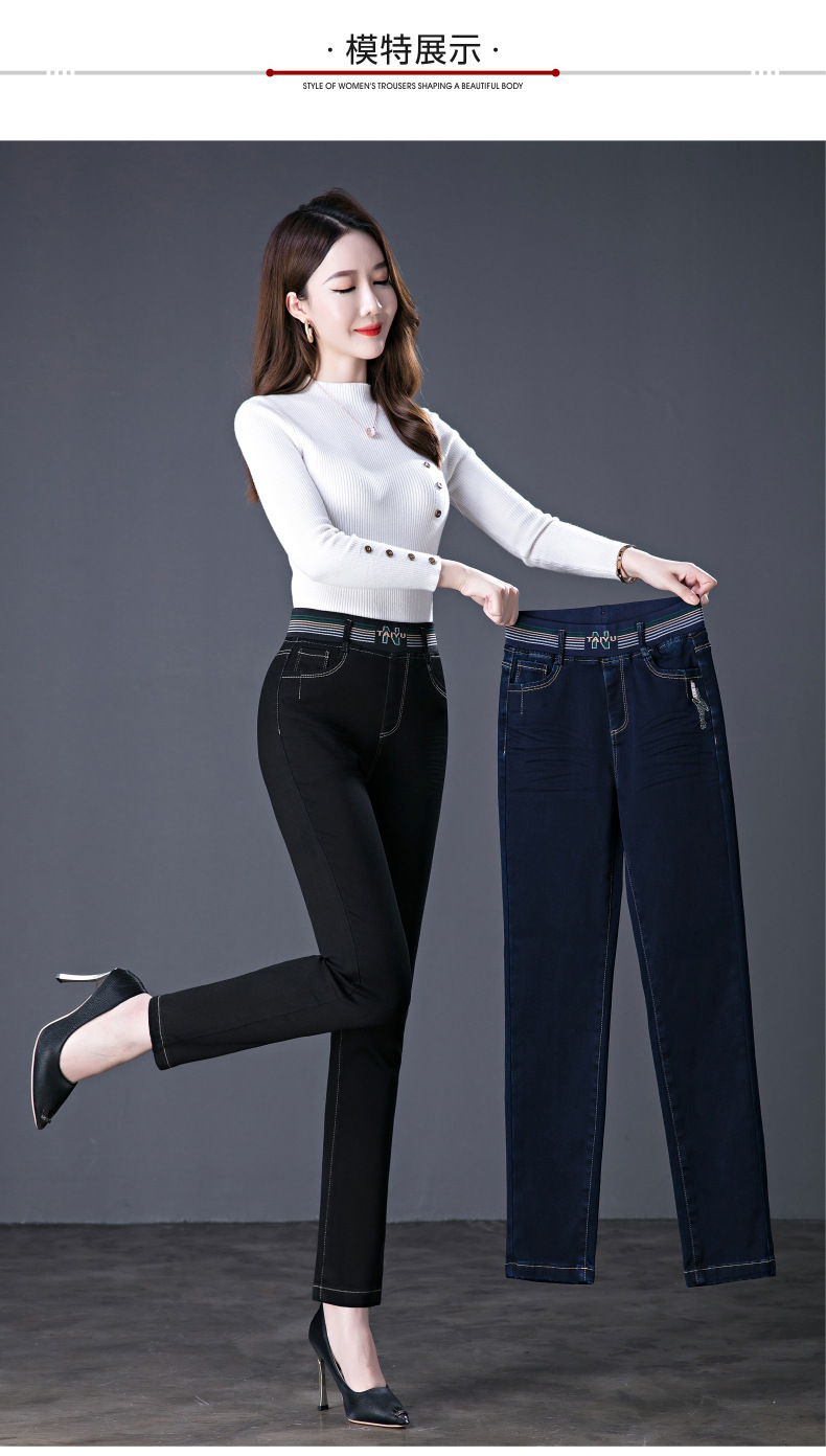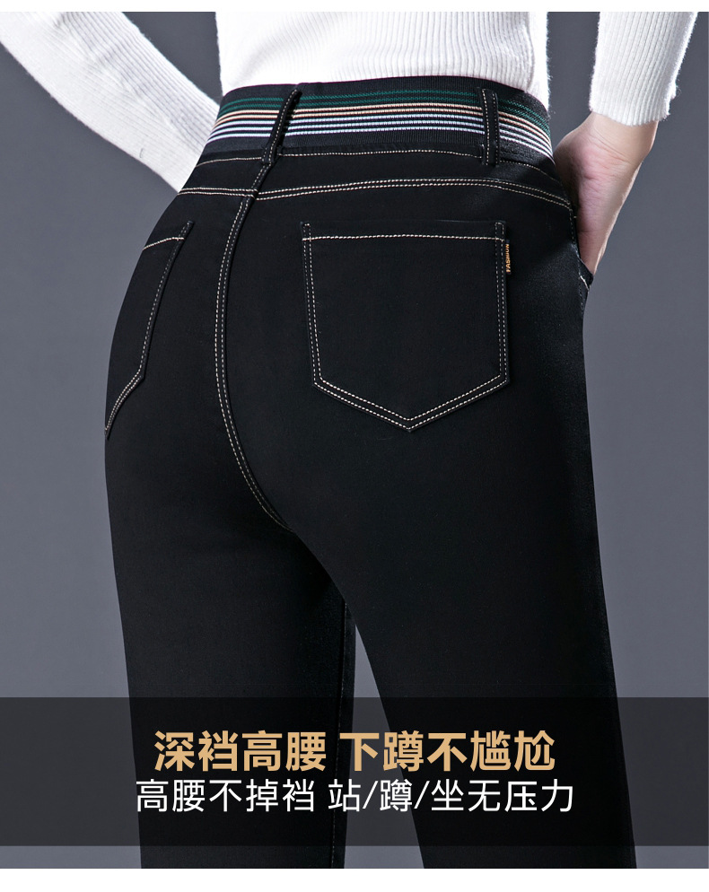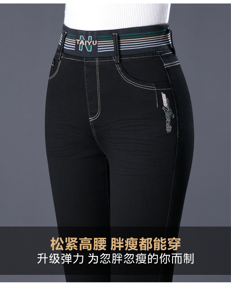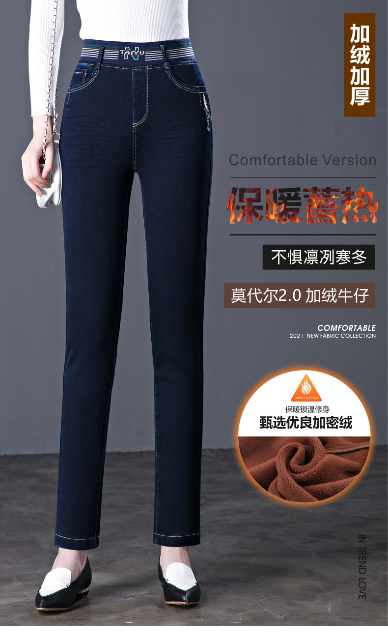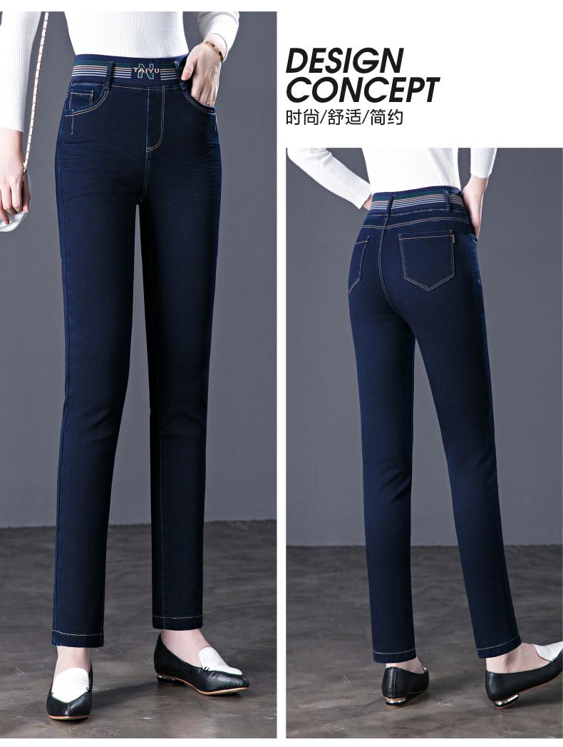 【兰伊】松紧妈妈牛仔裤2022年秋冬新款高腰宽松弹力中老年加绒直筒裤子女