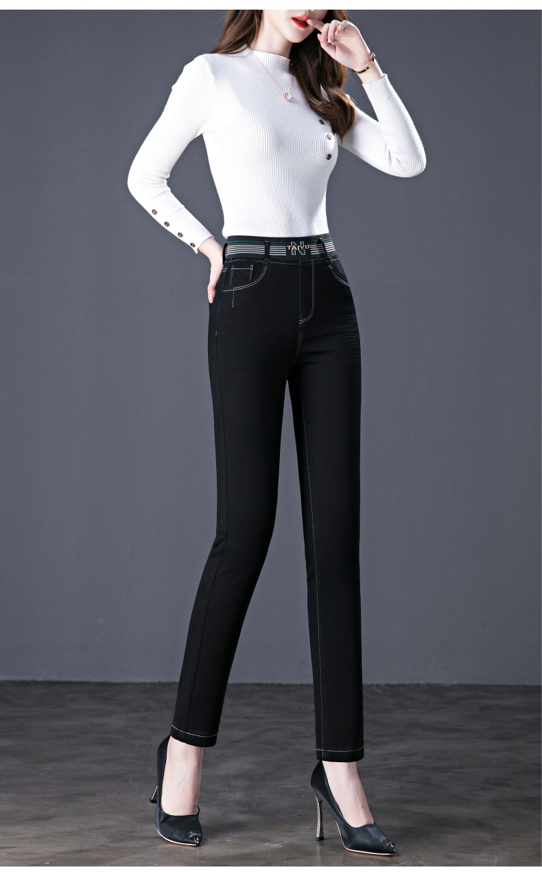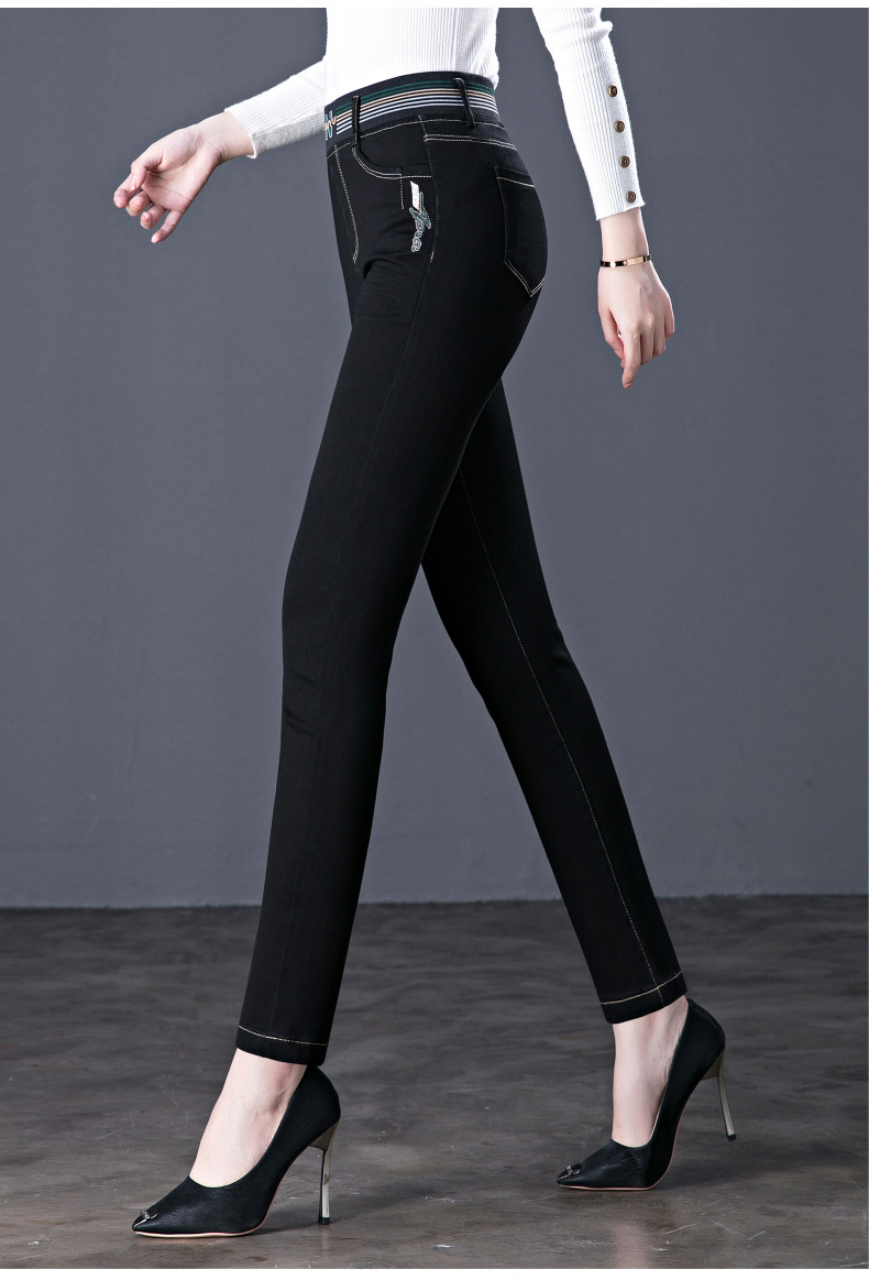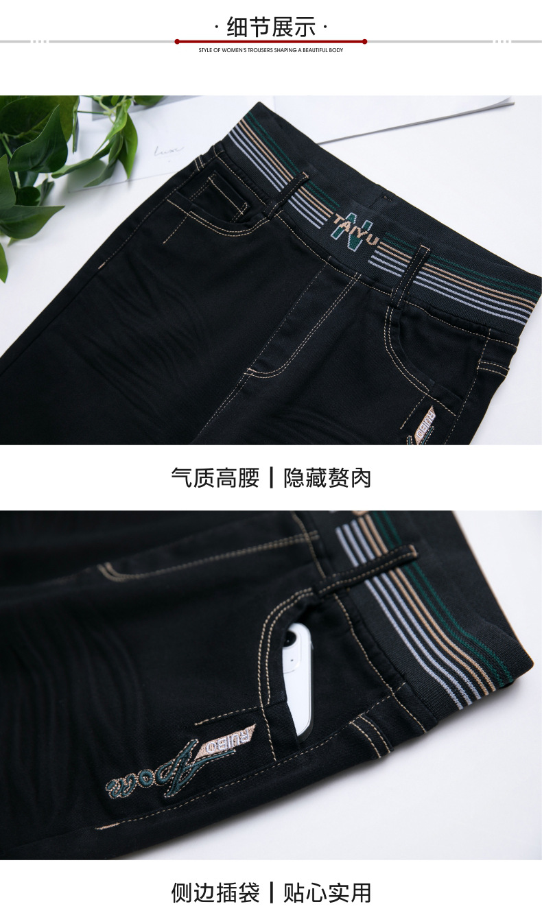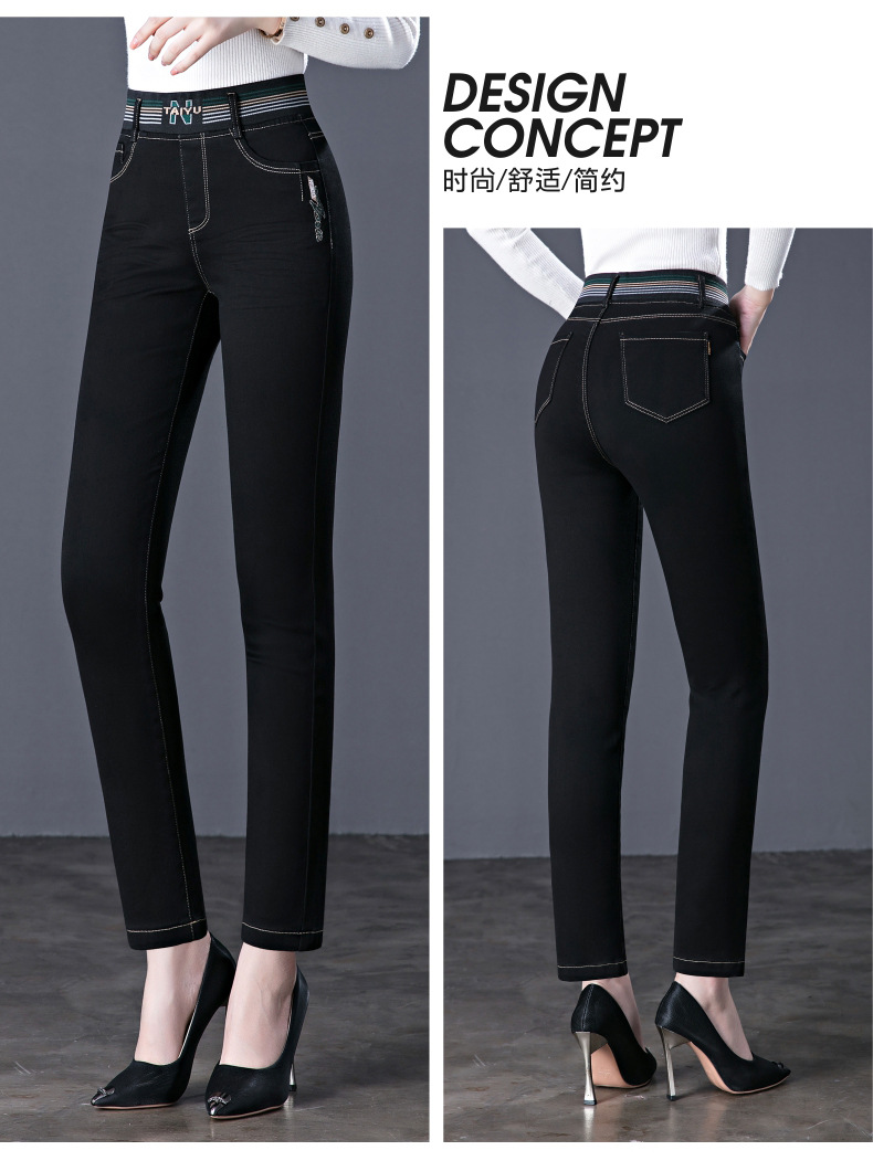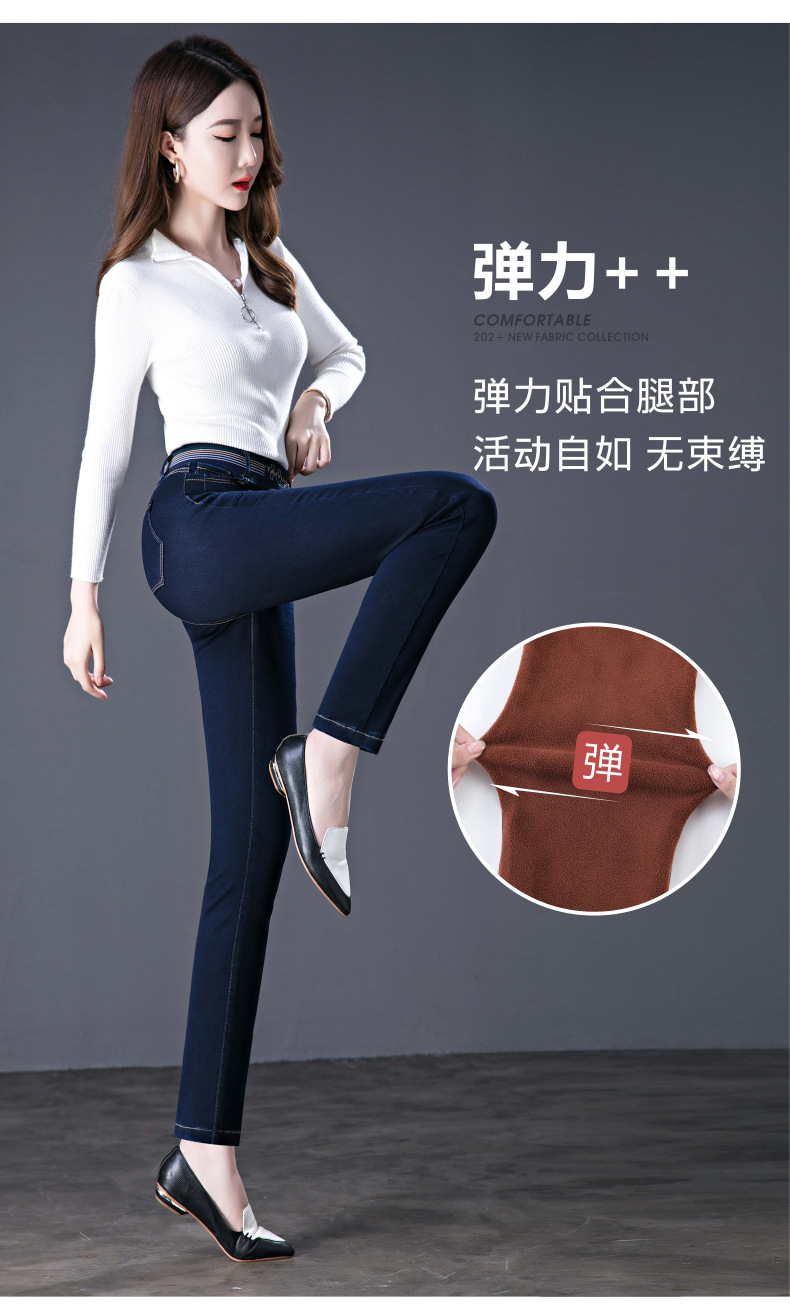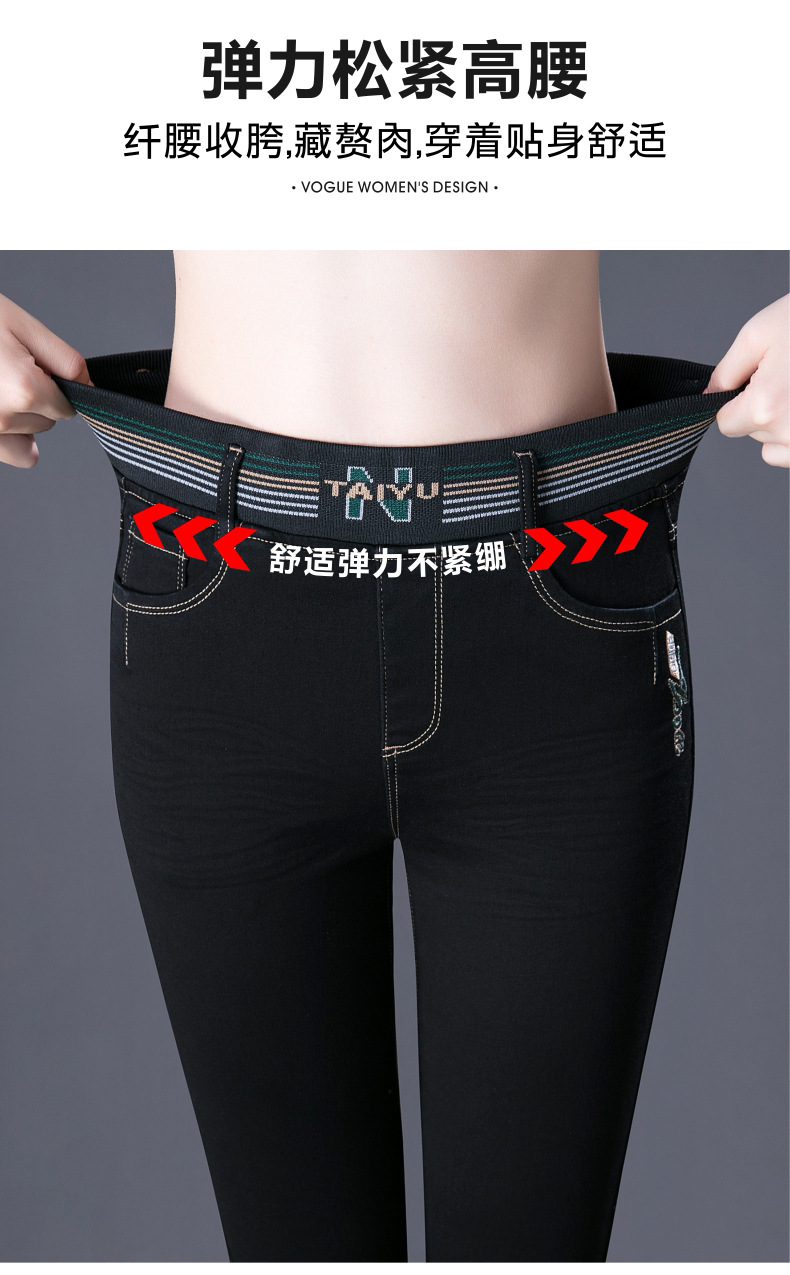 【兰伊】松紧妈妈牛仔裤2022年秋冬新款高腰宽松弹力中老年加绒直筒裤子女