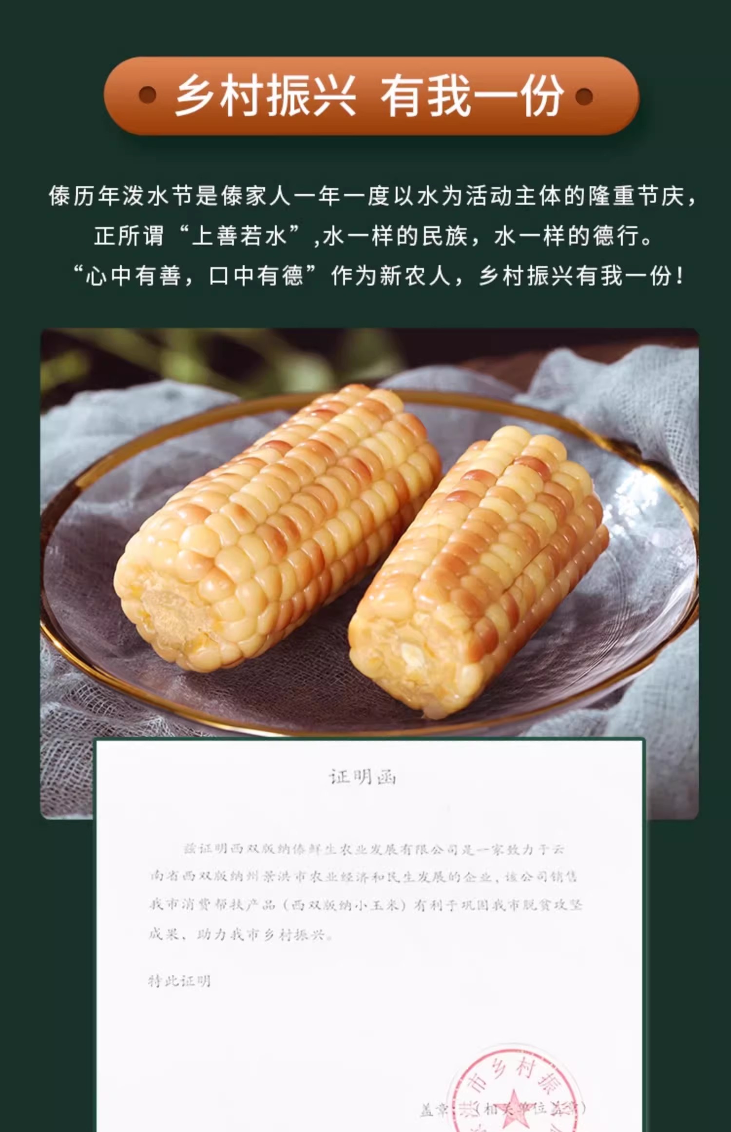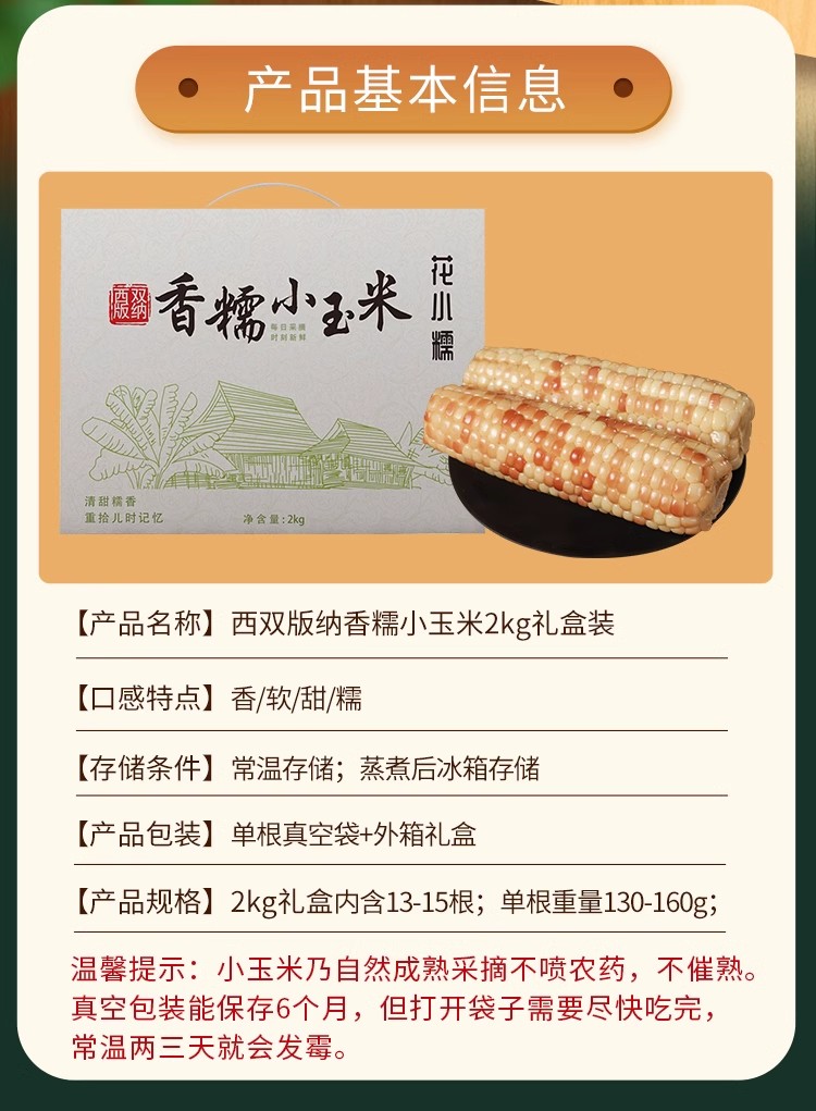 【云南产品】西双版纳香糯小玉米礼盒装真空即食玉米棒2kg*盒