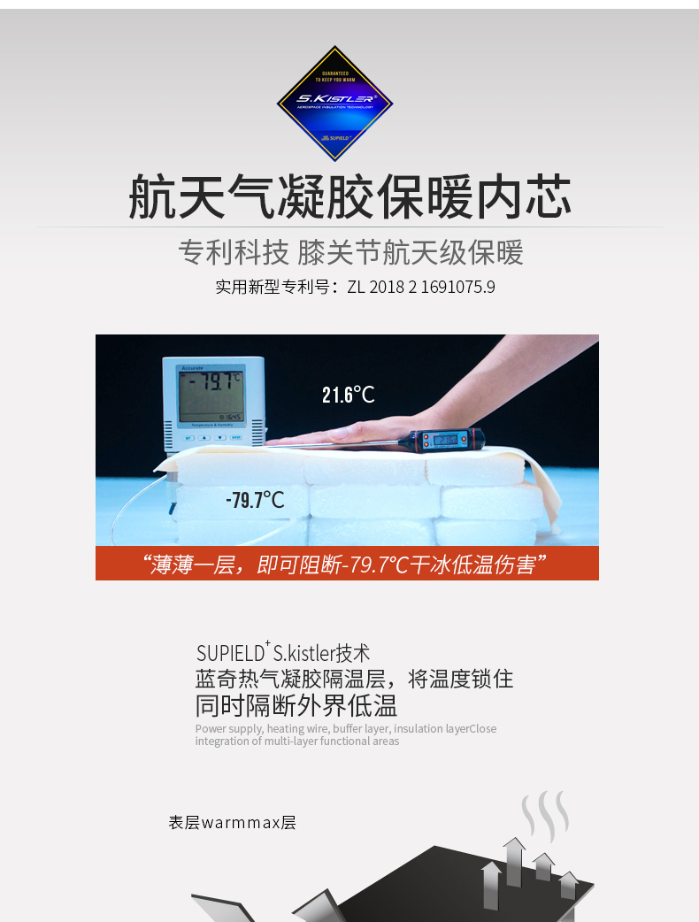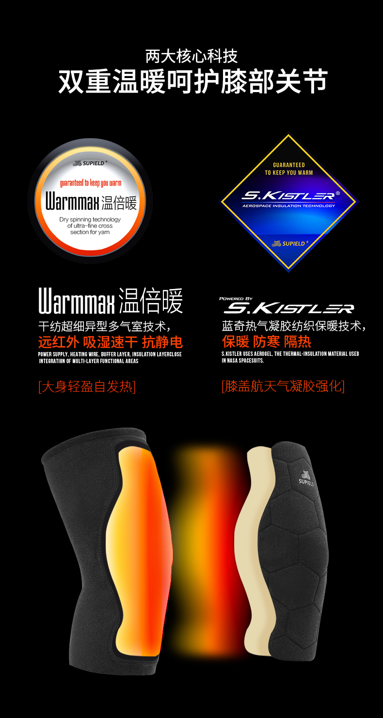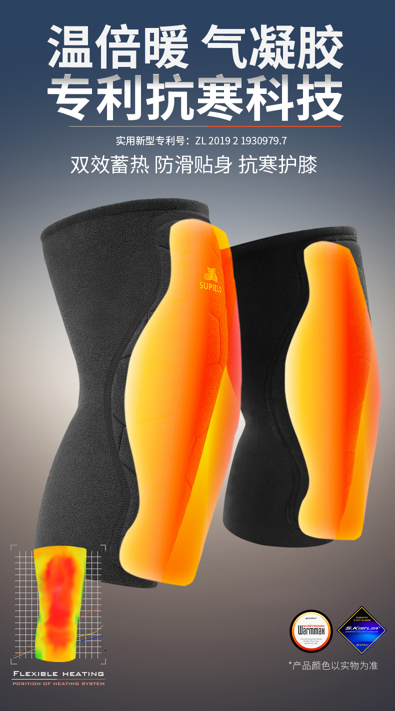 温倍暖气凝胶 专利抗寒科技 素湃SUPIELD气凝胶自发热护膝(A302) 双效蓄热 防滑贴身