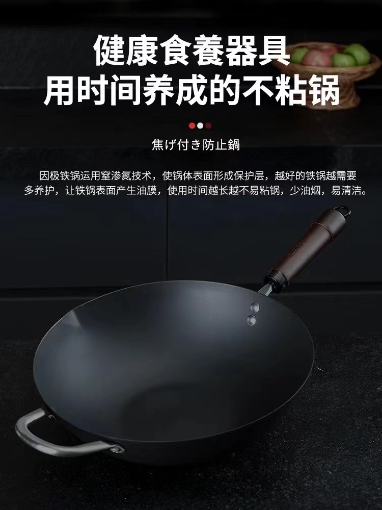 正品单日本极铁无涂层纳米铁锅不粘锅 女生单手也可以颠炒的锅 正品订单货!