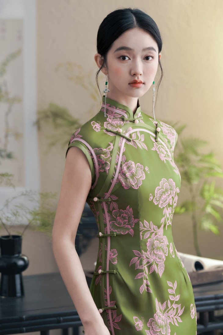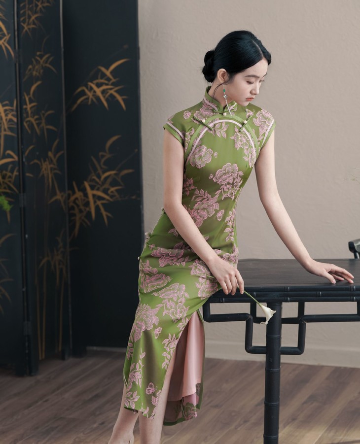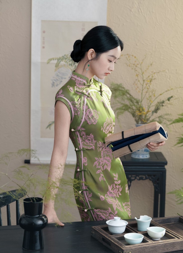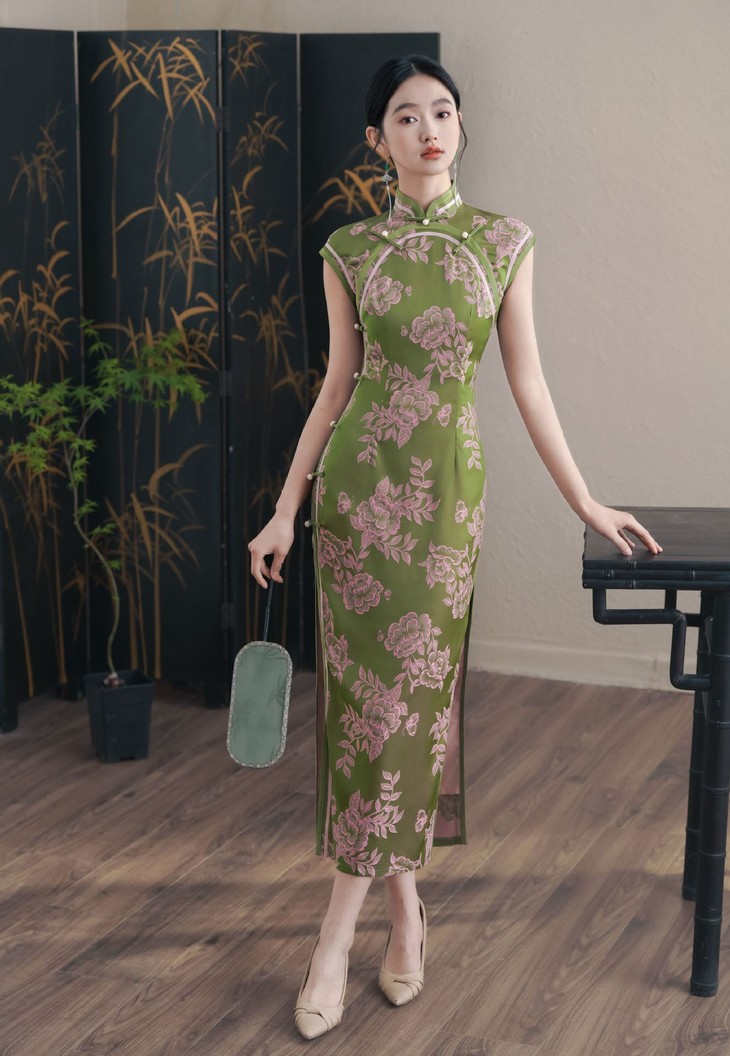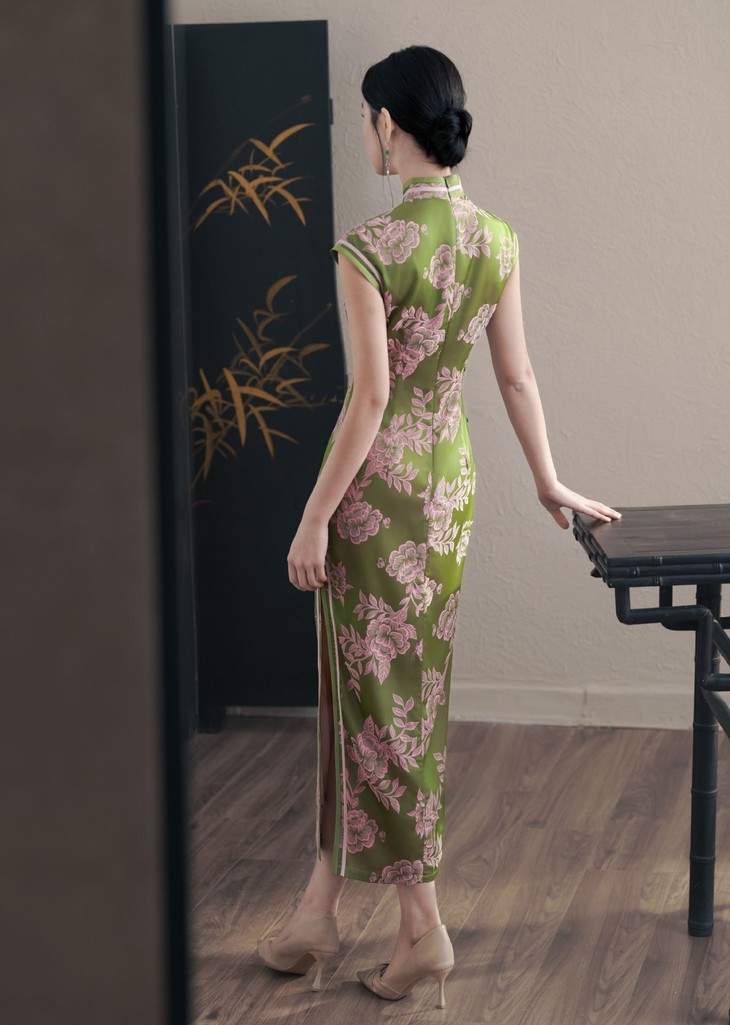 新中式绿色旗袍老上海传统温婉端庄优雅日常走秀演出YM8352
