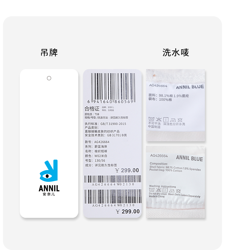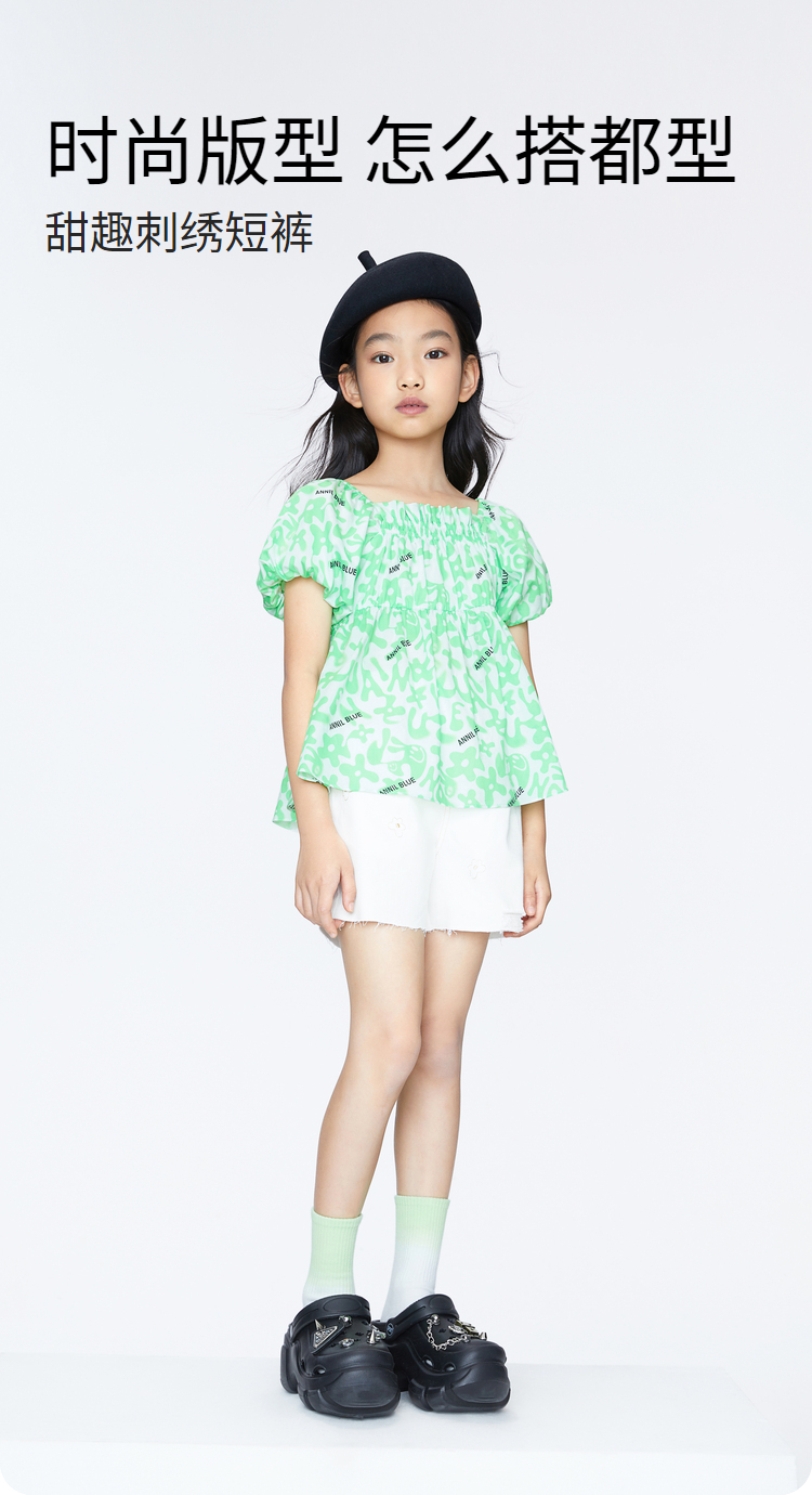 女童甜趣刺绣短裤BLUE新款安奈儿童装实体店同款AG426664