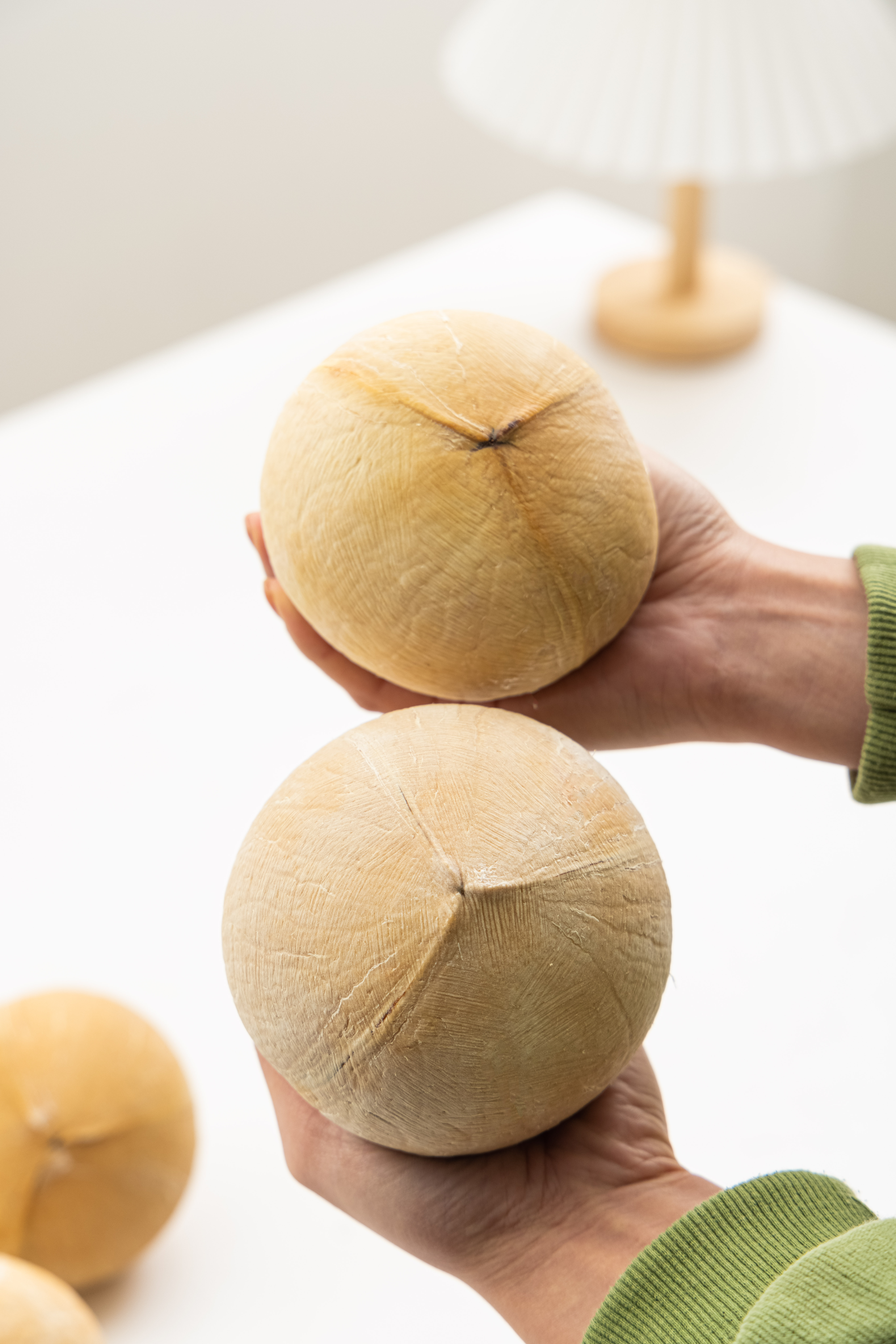 【开果方法】①椰皇的底部去碰撞另外一个的底部,或者用刀子敲底部。②用刀子削掉头部的外壳棉体,会有一个较软的小孔,挖开插上吸管。