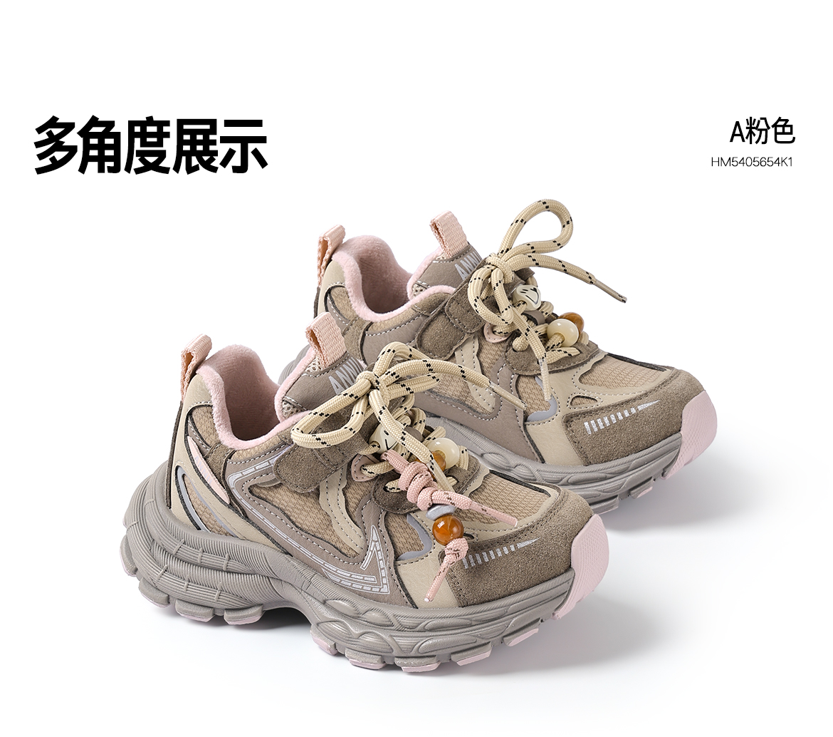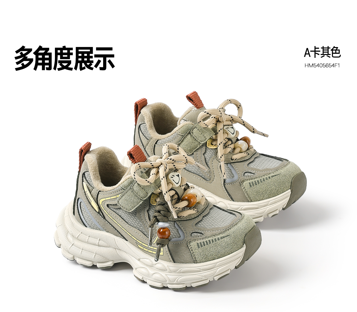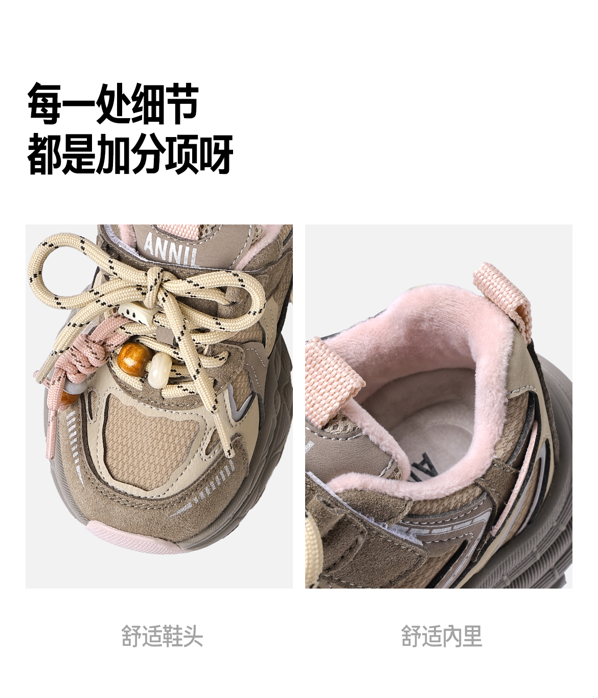 ANNIL/安奈儿童鞋男女童复古老爹鞋新款防滑运动鞋冬季加绒加厚厚底童鞋HM5405654