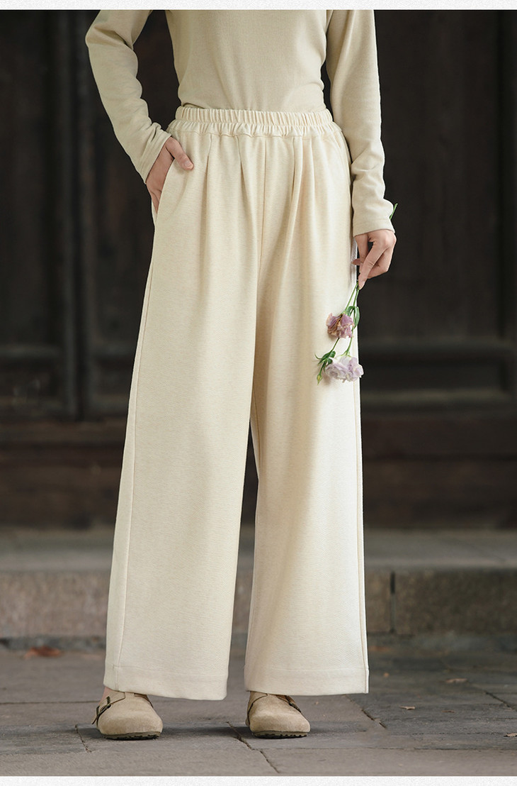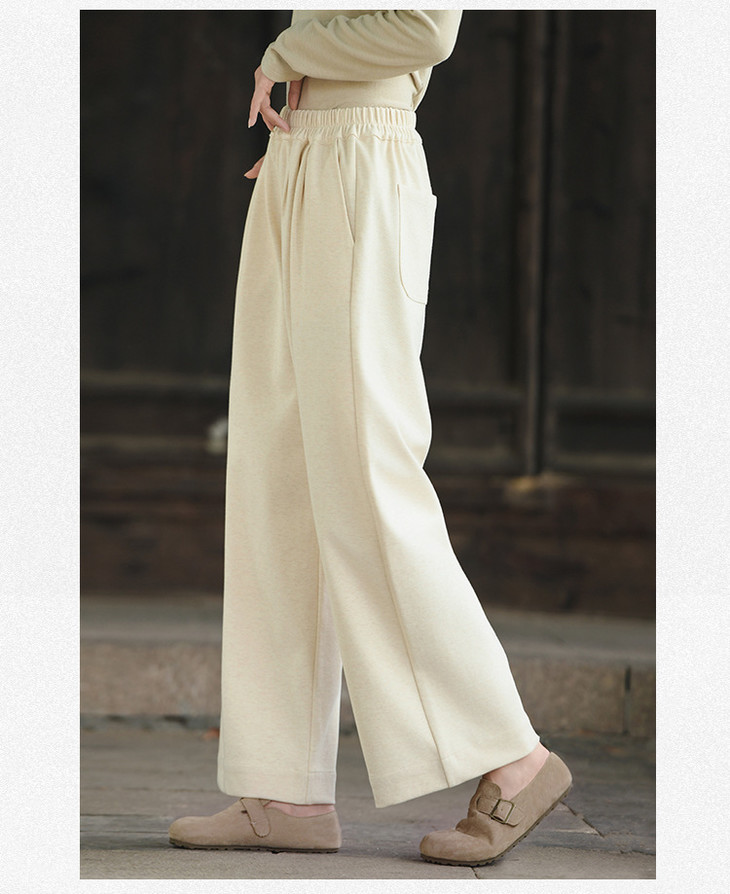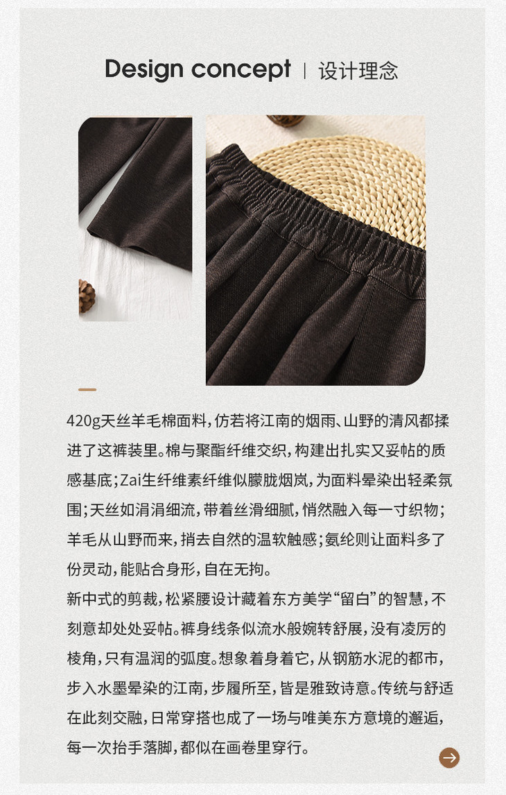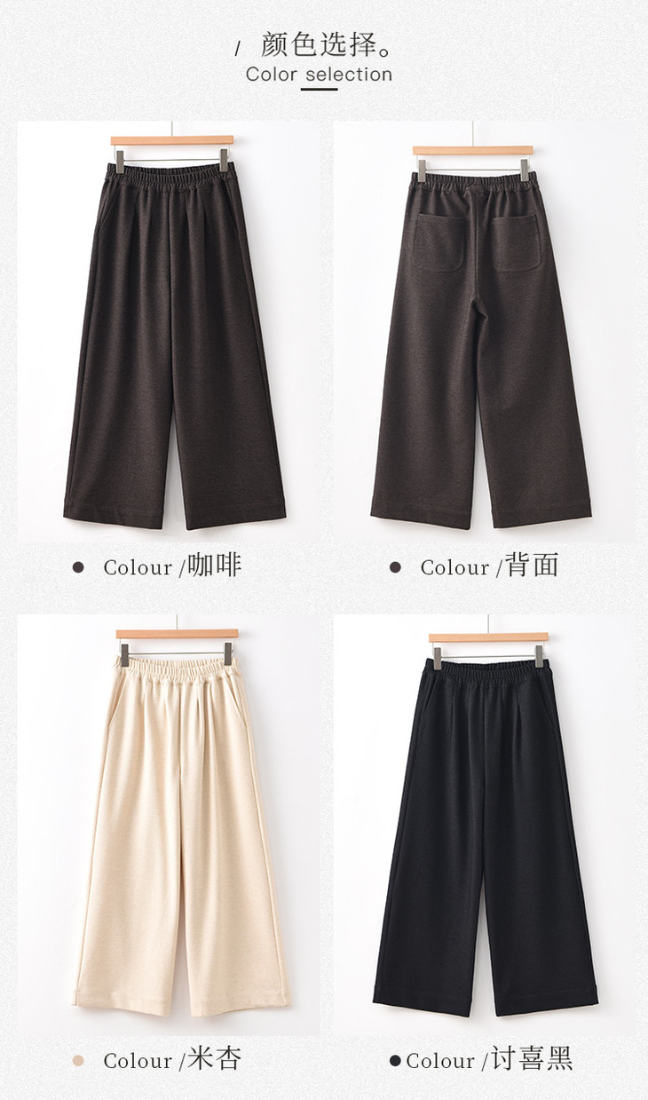 天丝羊毛阔腿裤,纯色松紧腰直筒加厚休闲裤QM-6553