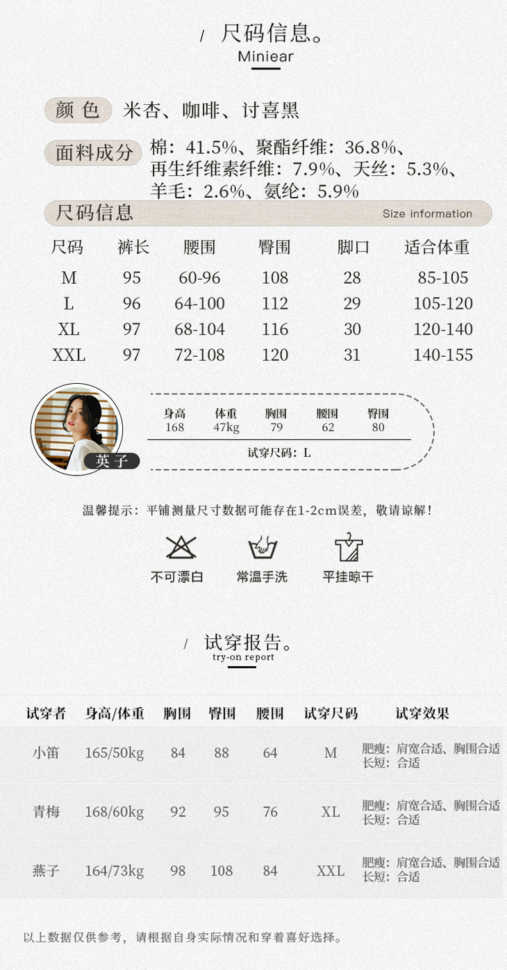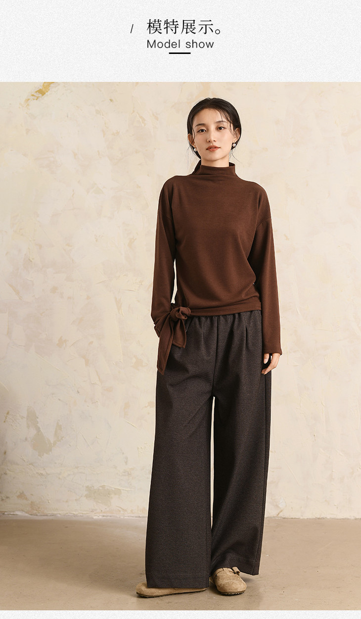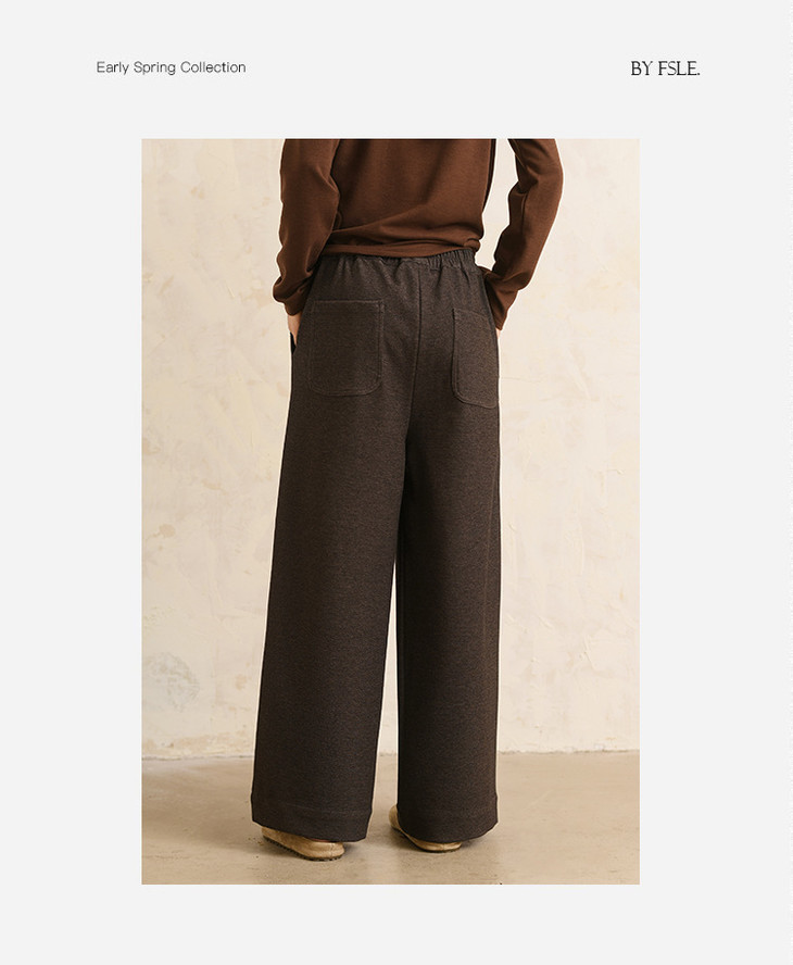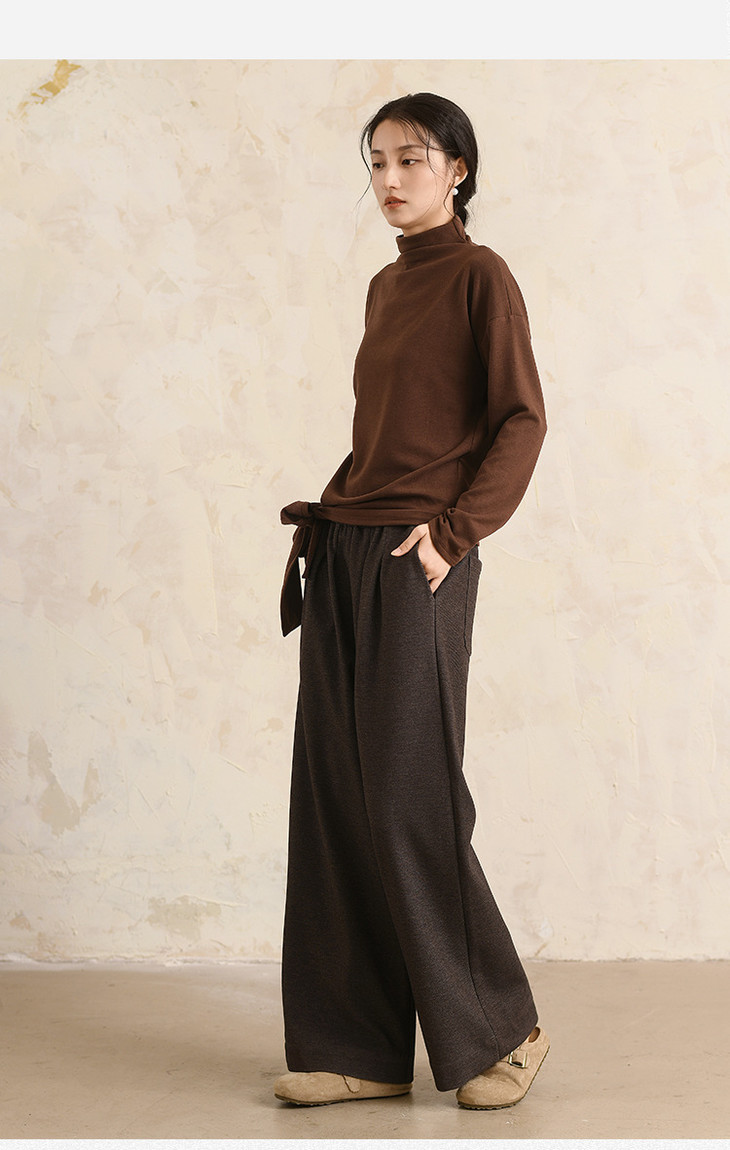 天丝羊毛阔腿裤,纯色松紧腰直筒加厚休闲裤QM-6553