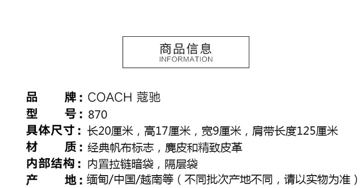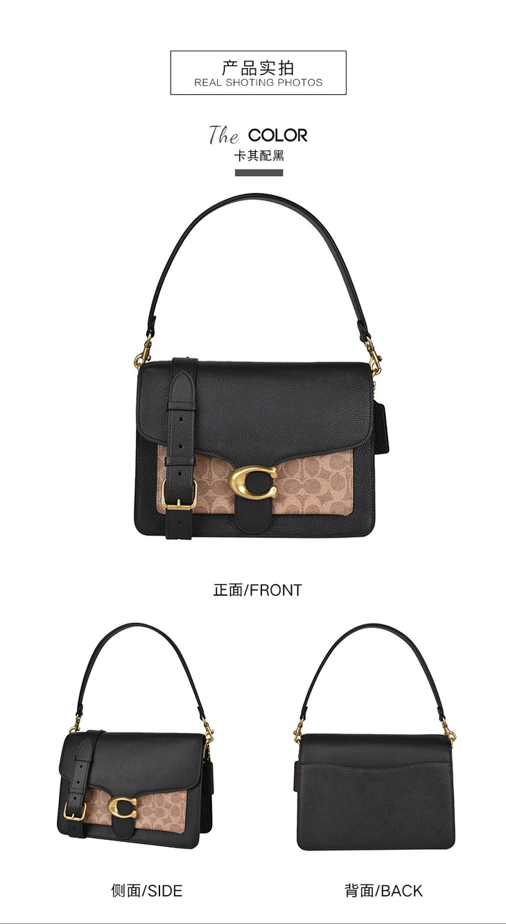 【香港直邮】COACH 蔻驰专柜款女士皮质单肩斜跨手提包卡其配黑870