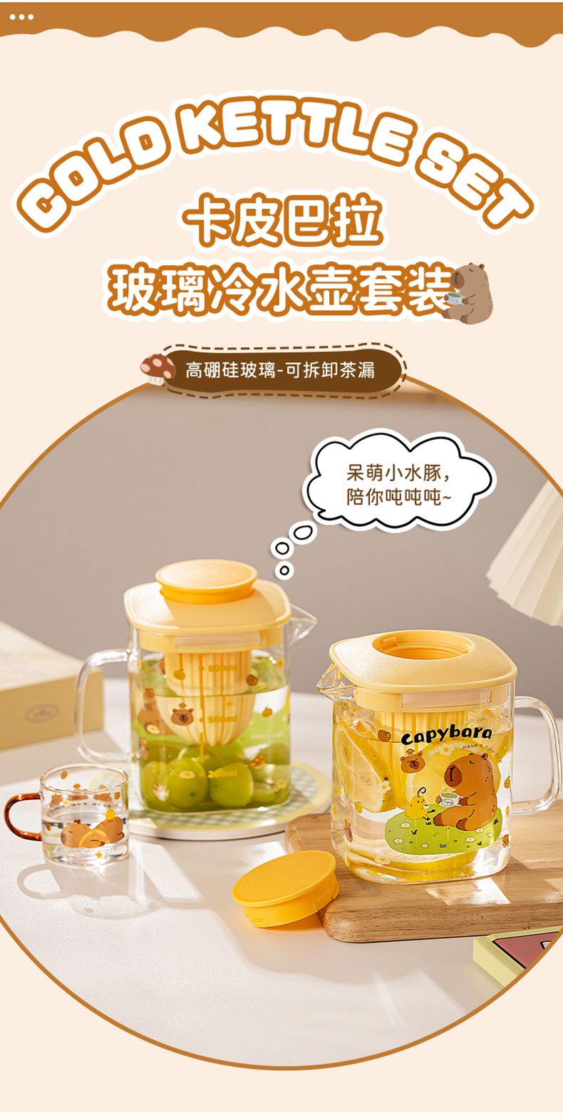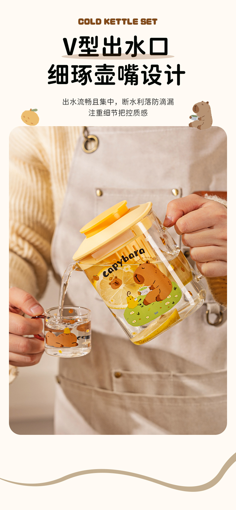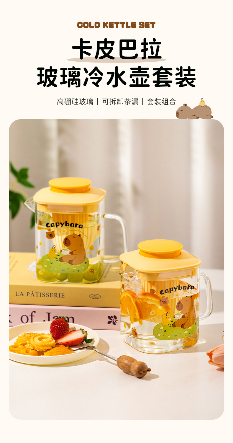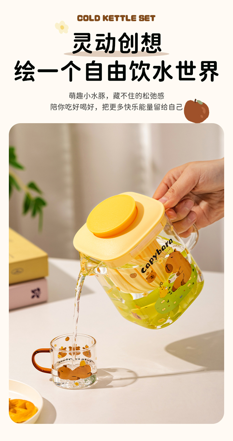 摩登主妇卡皮巴拉冷水壶玻璃耐高温家用凉水壶高颜值冷泡壶凉水杯