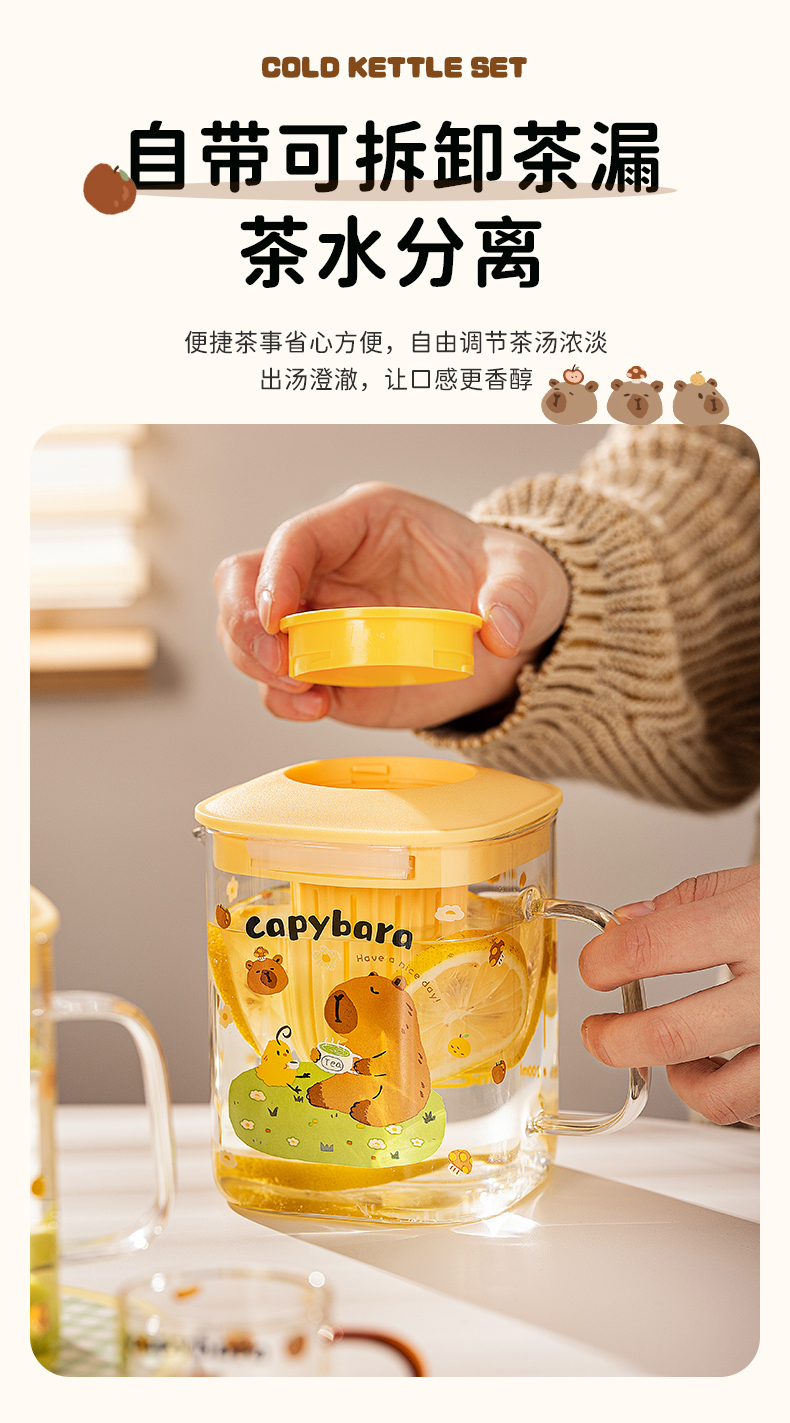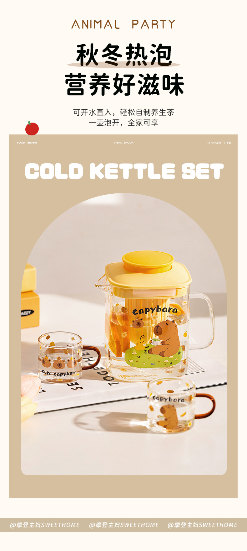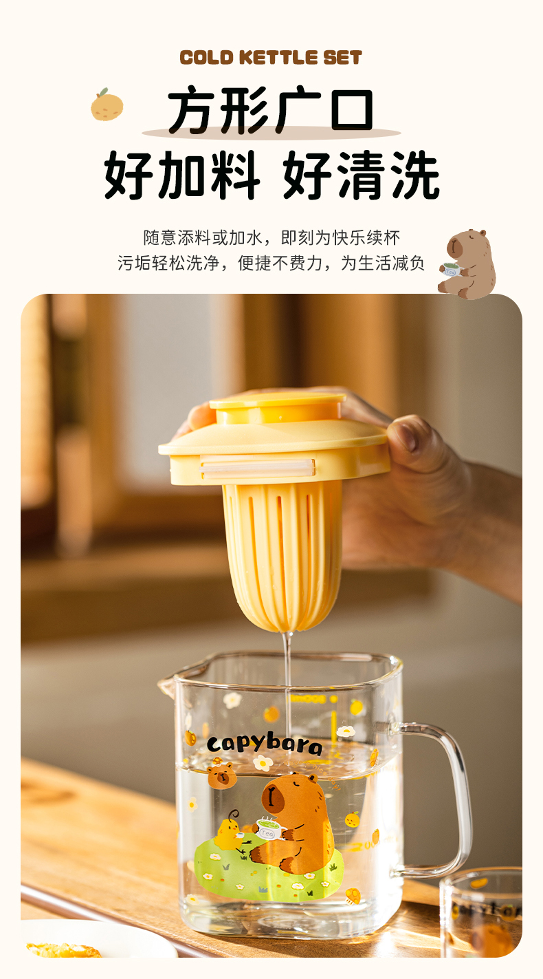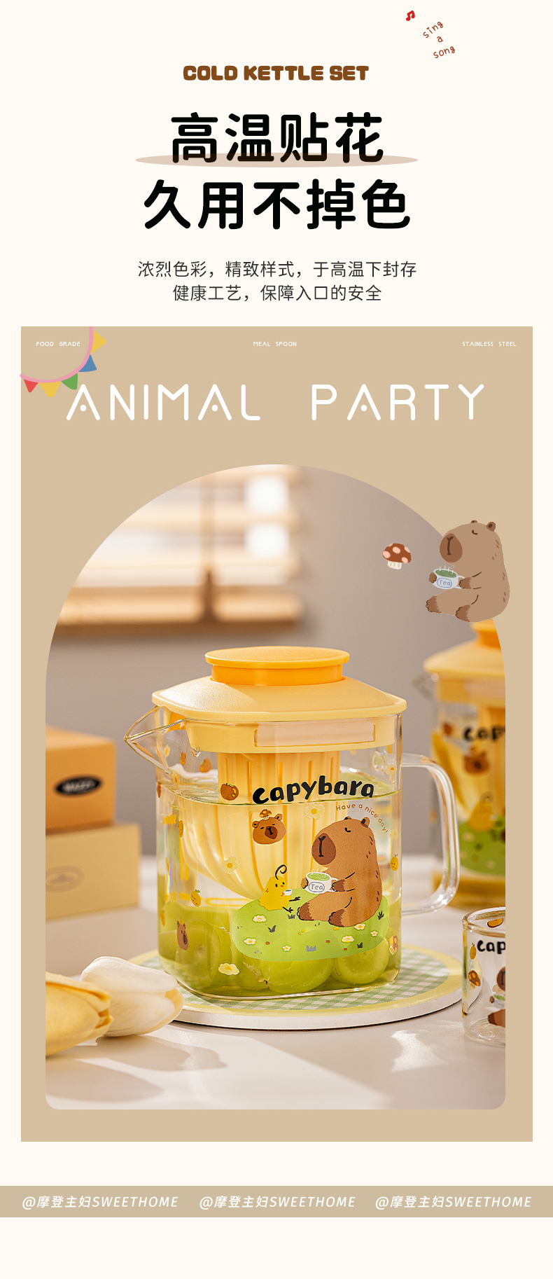 摩登主妇卡皮巴拉冷水壶玻璃耐高温家用凉水壶高颜值冷泡壶凉水杯