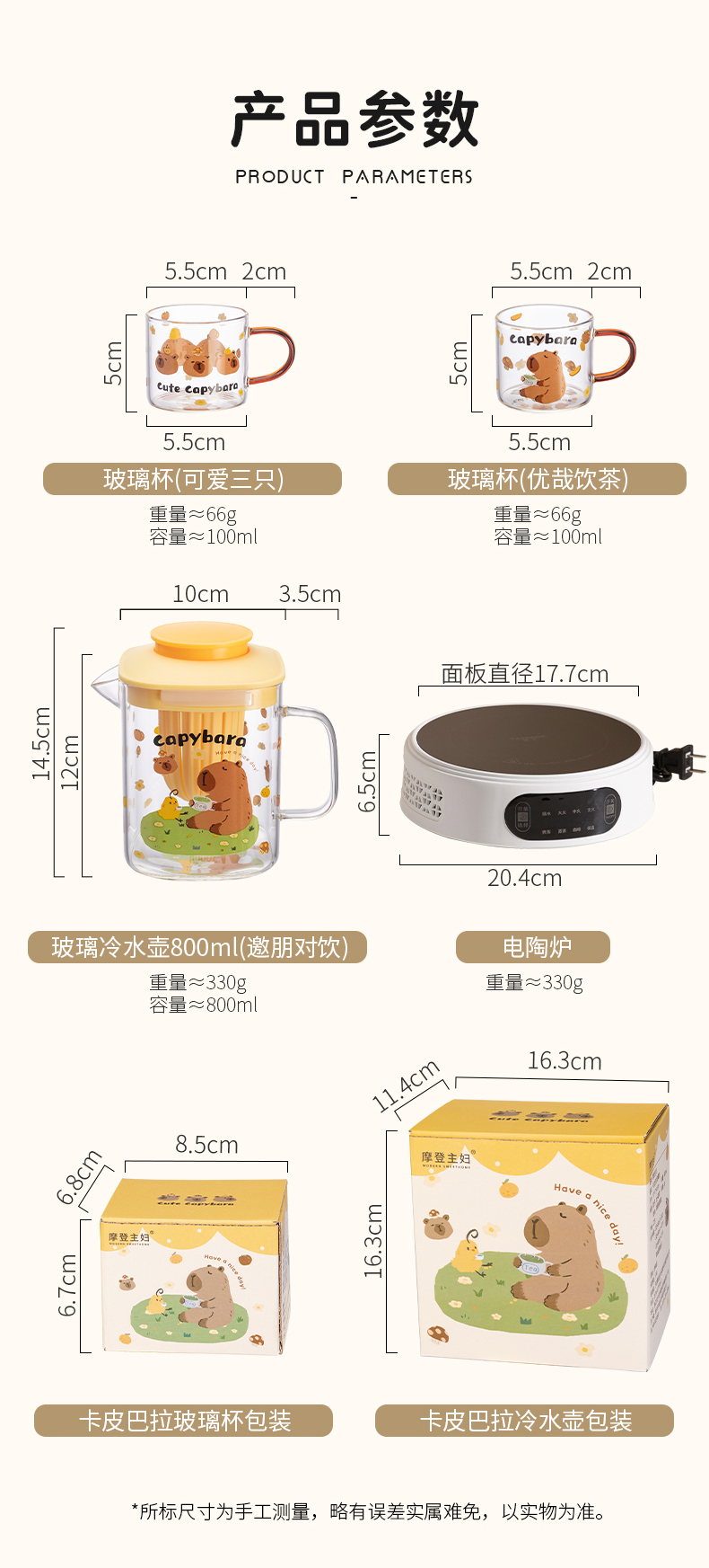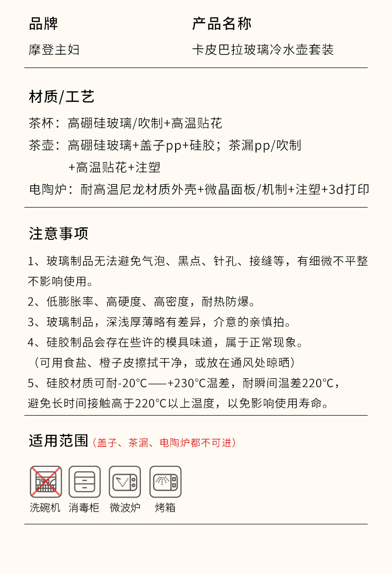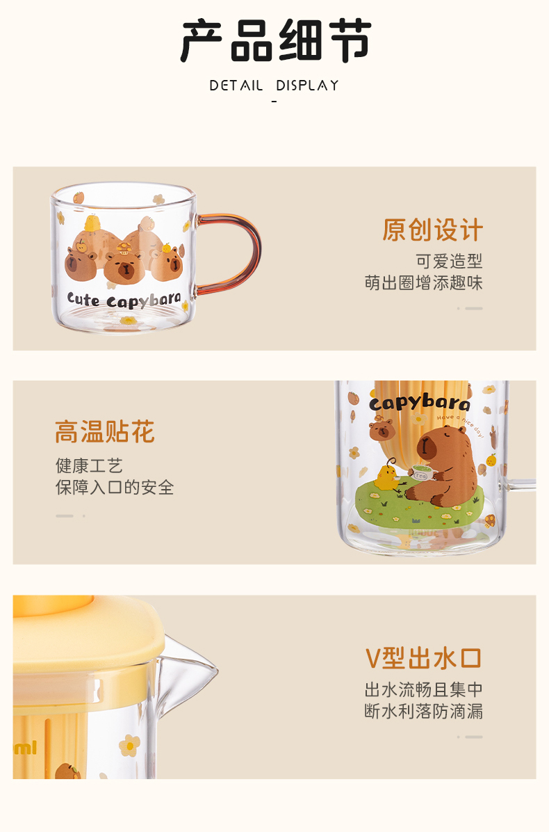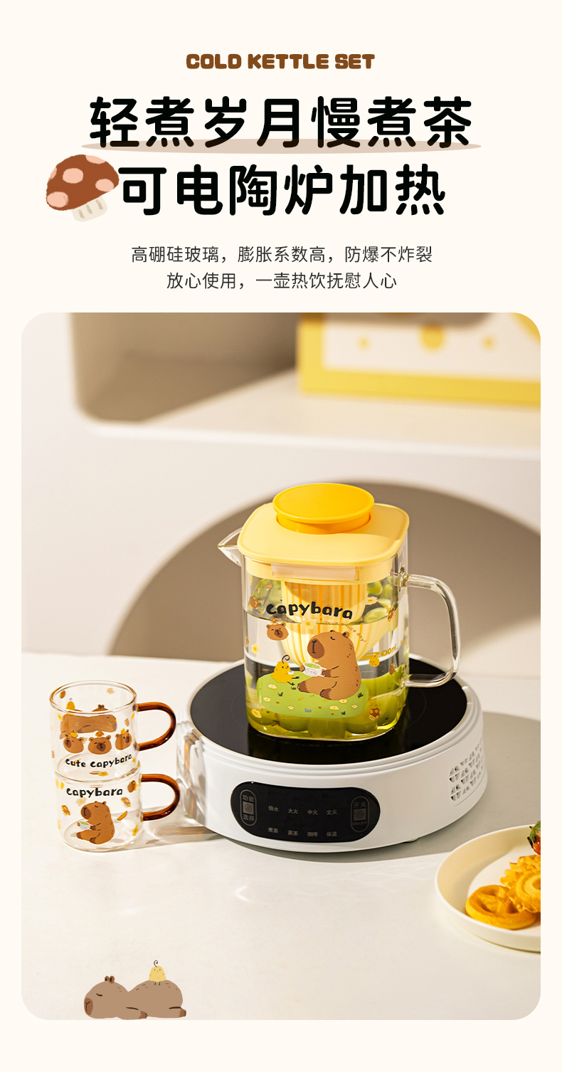 摩登主妇卡皮巴拉冷水壶玻璃耐高温家用凉水壶高颜值冷泡壶凉水杯