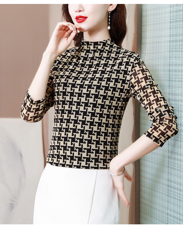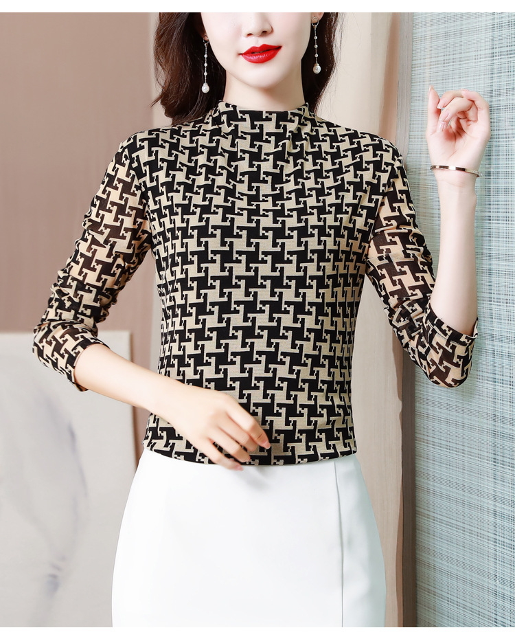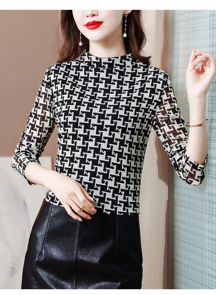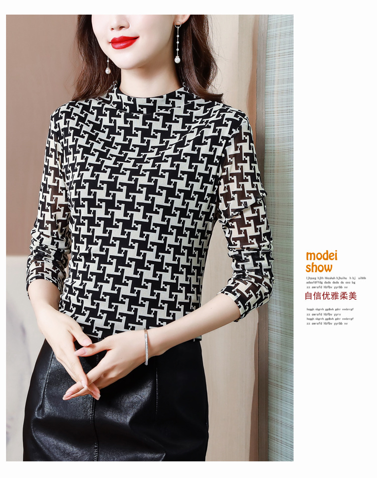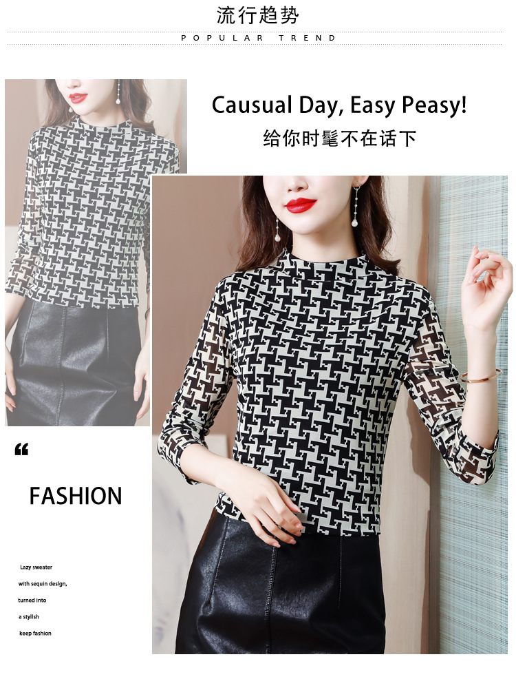 雀说 半高领网纱打底衫女士秋冬新款时尚内搭t恤洋气套头小衫上衣4ZF-SMZ11281