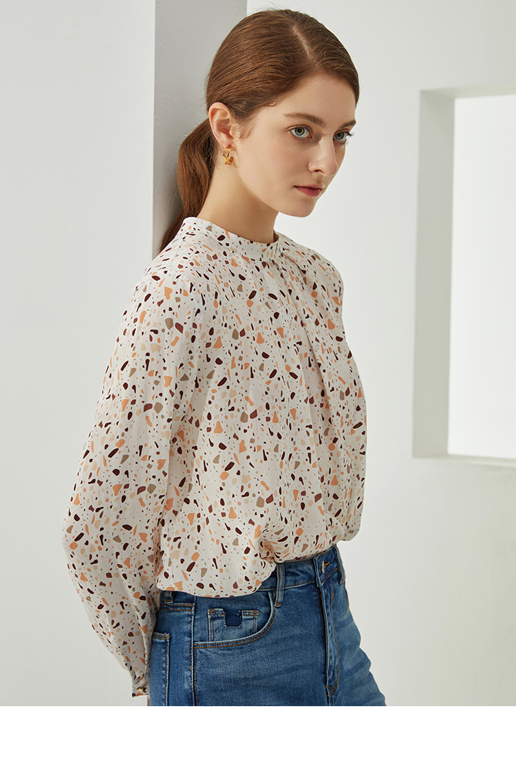 EITIE爱特爱女装夏季新品V领七分荷叶袖简约纯色衫上衣薄5713435