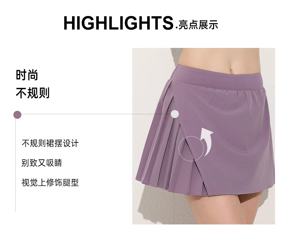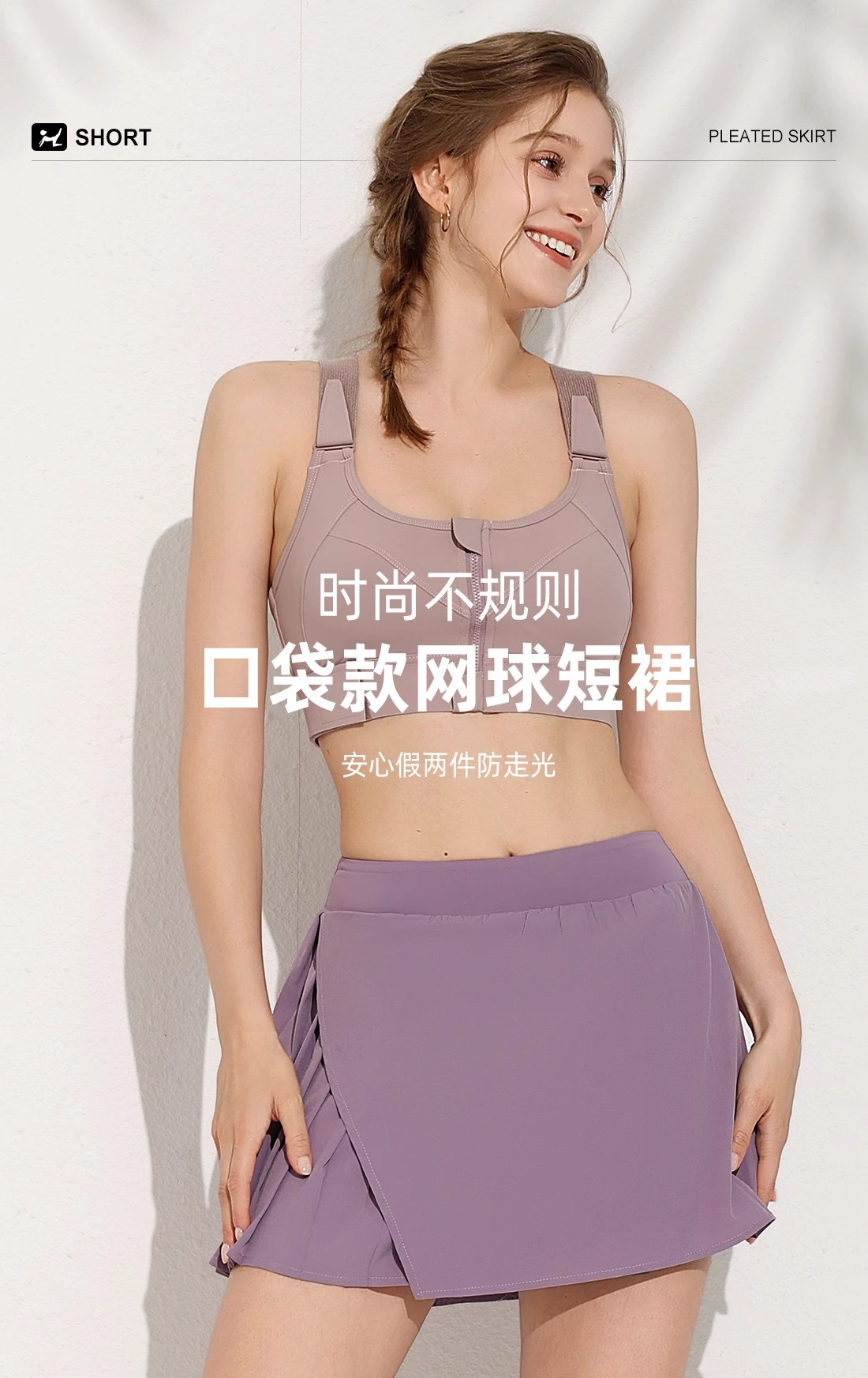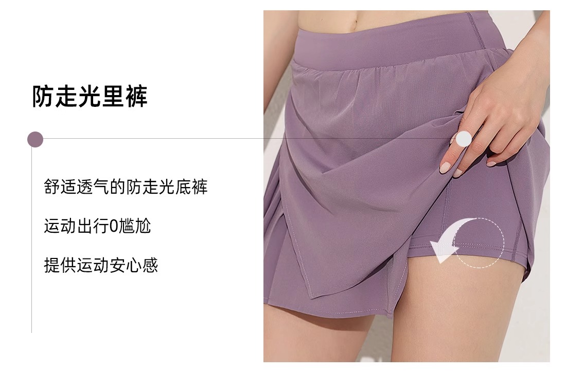 跃牌(呗咪纷纷系列)夏季新款JK运动短裙假两件百褶防走光速干瑜伽裙健身跑步训练裙女DQ6001