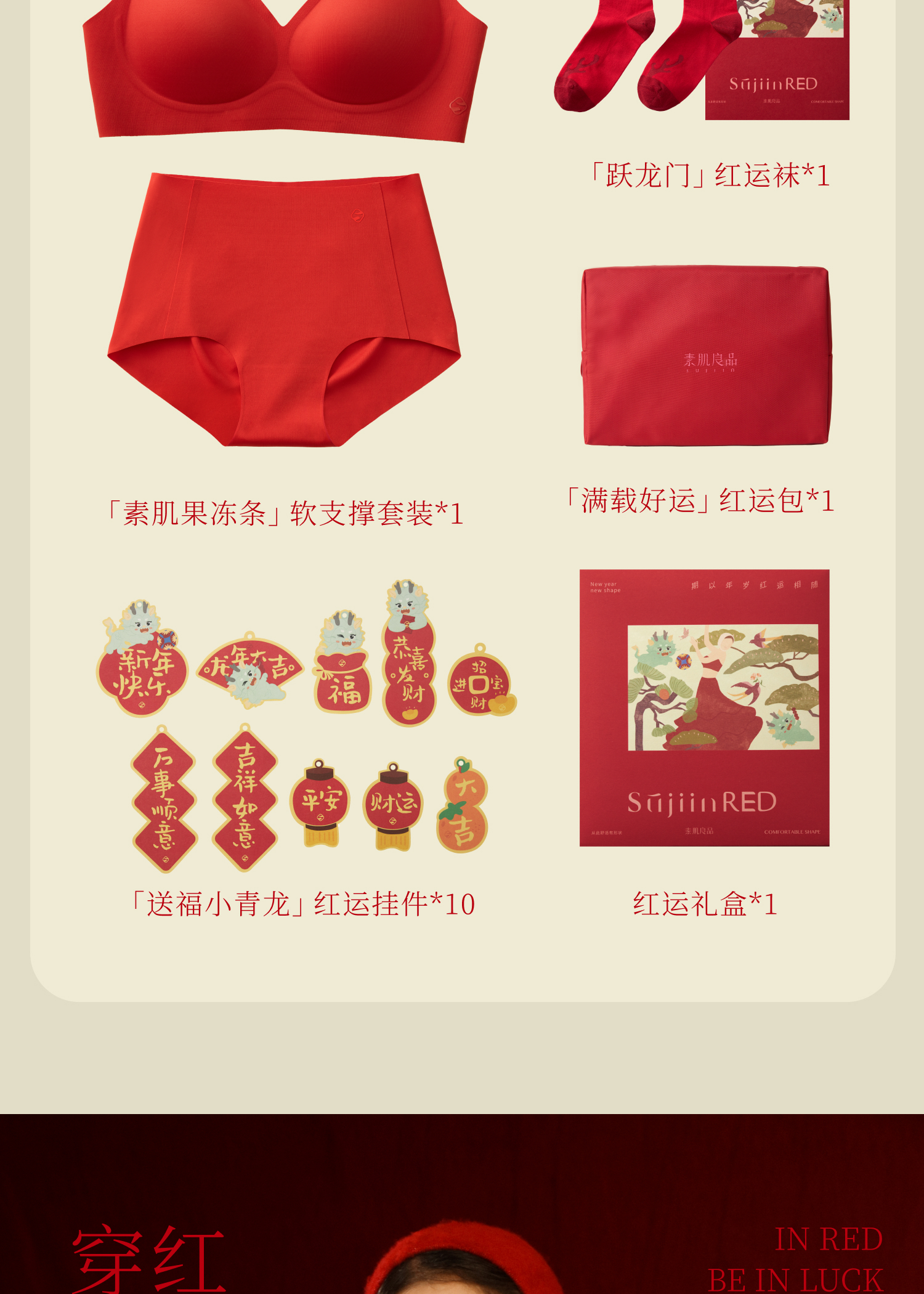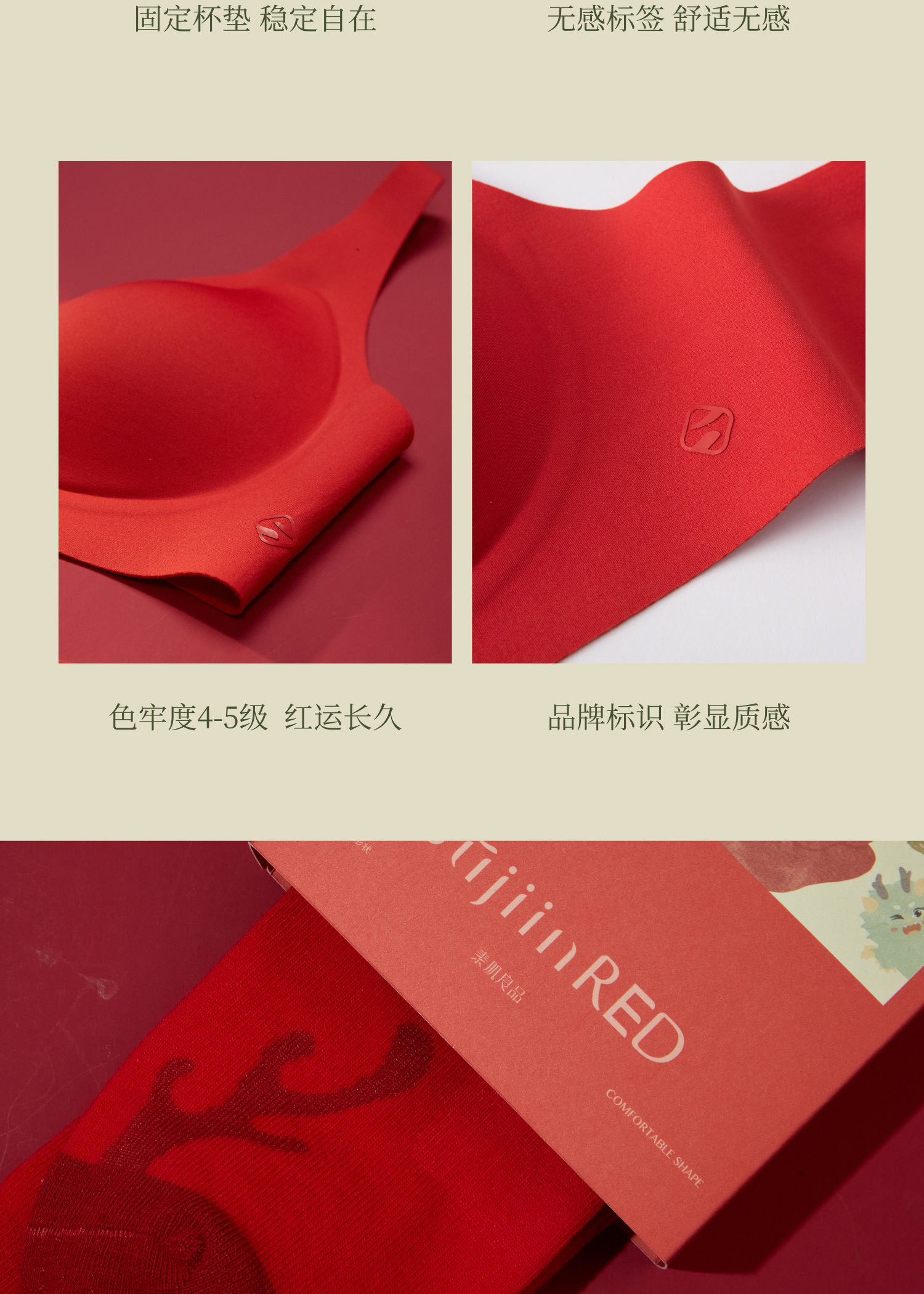素肌良品 红色内衣套装 红色无痕文胸礼盒 MX208【该商品不支持用券】