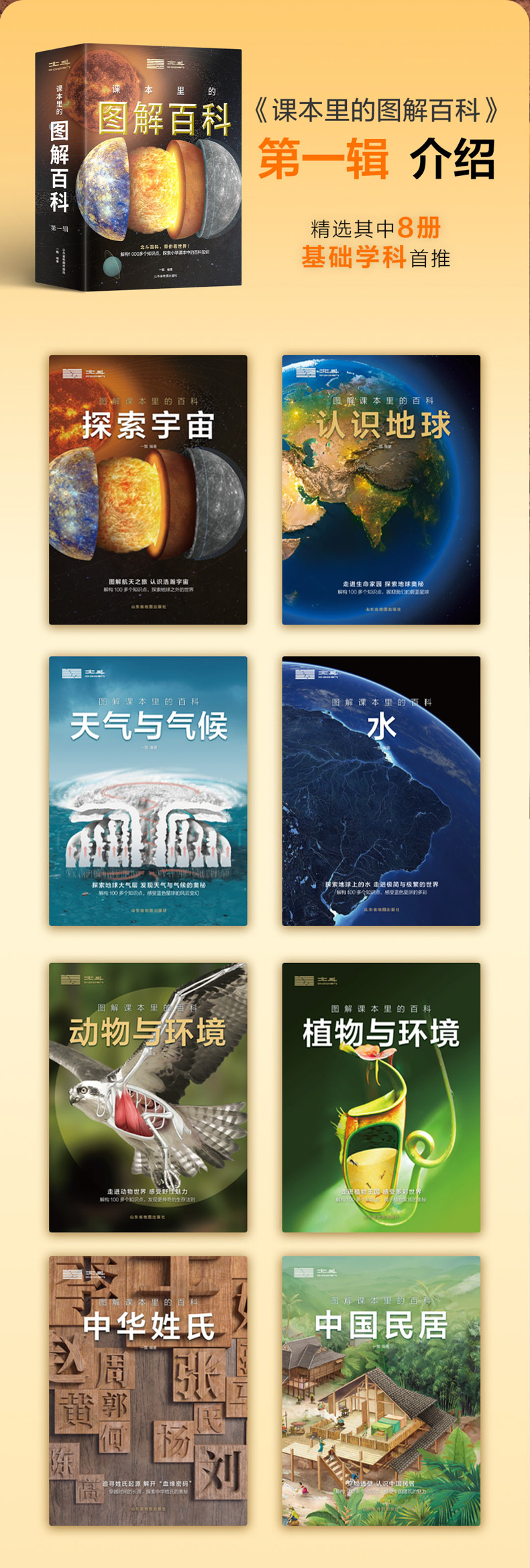 书籍介绍:套装包含《探索宇宙》《认识地球》《天气与气候》《水》《动物与环境》《植物与环境》《中国民居》《中华姓氏》