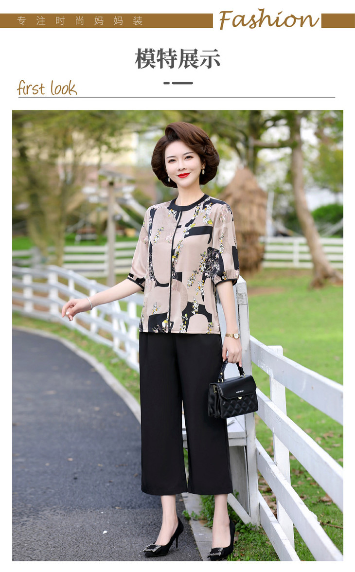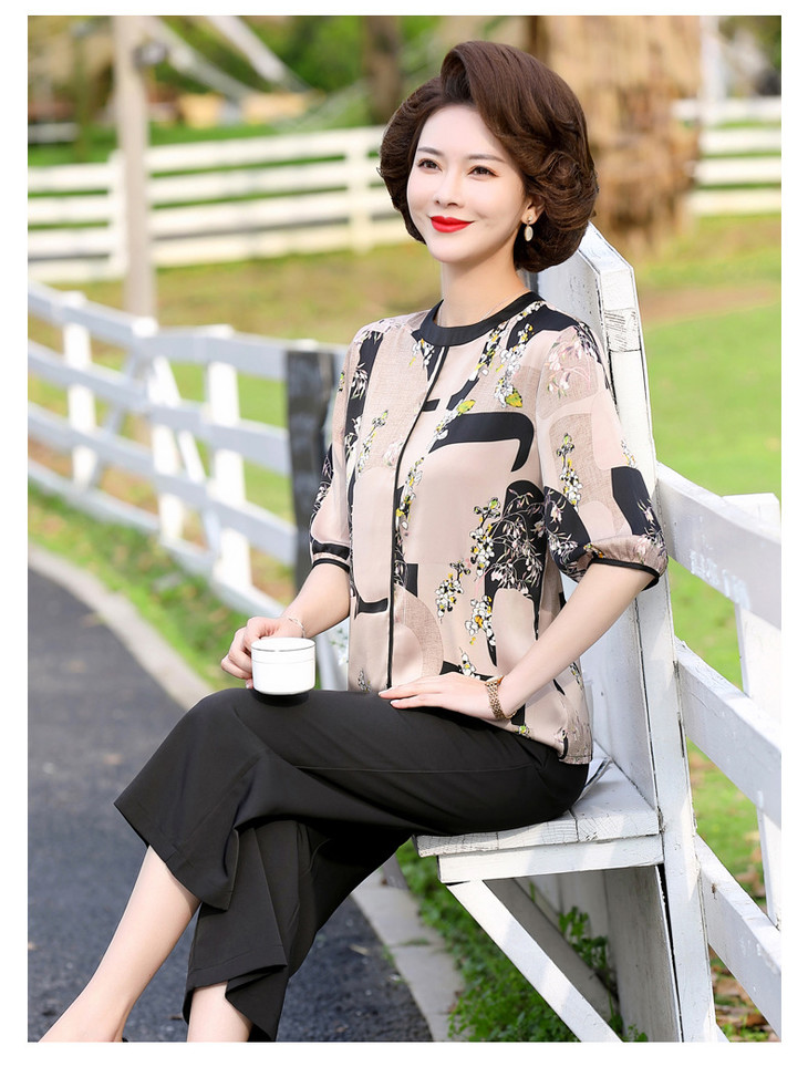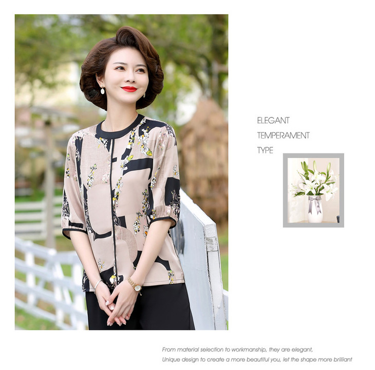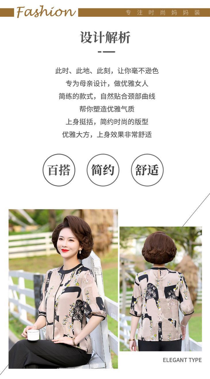YCE 68592雪纺小衫上衣洋气阔太太印花中袖T恤