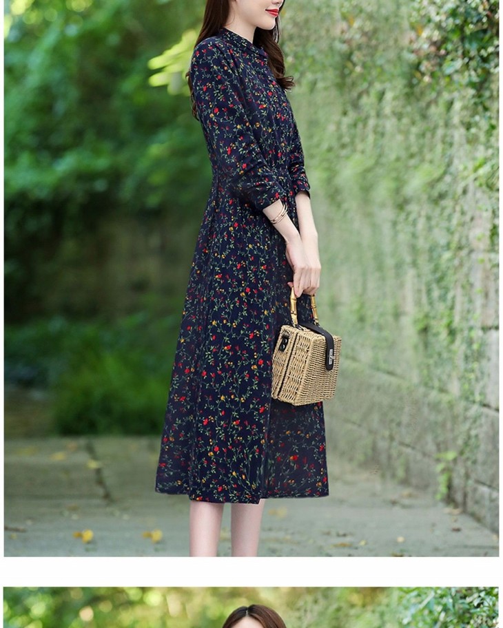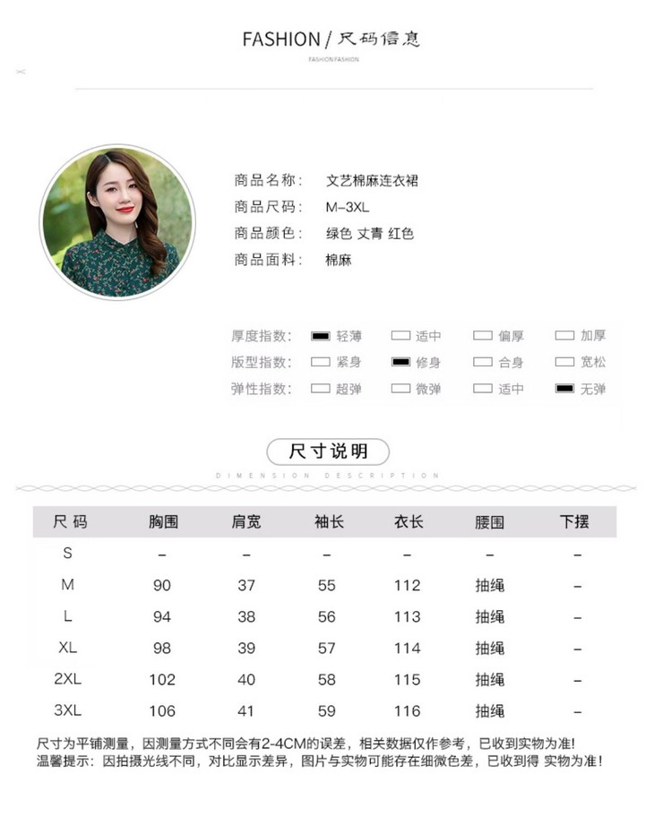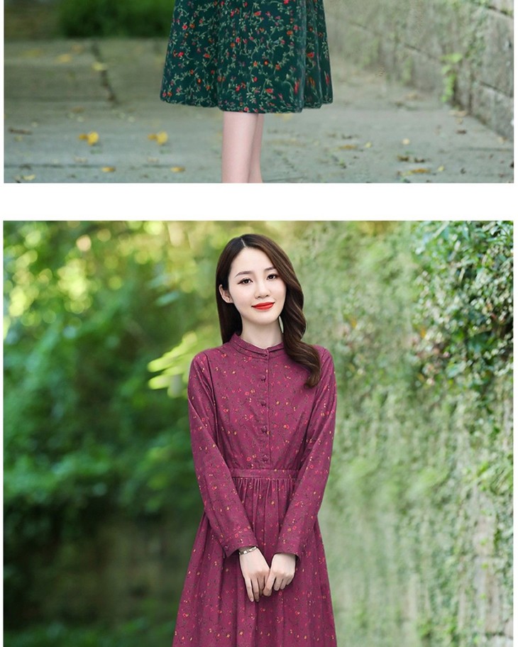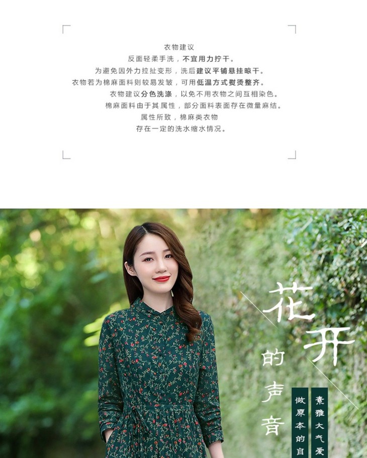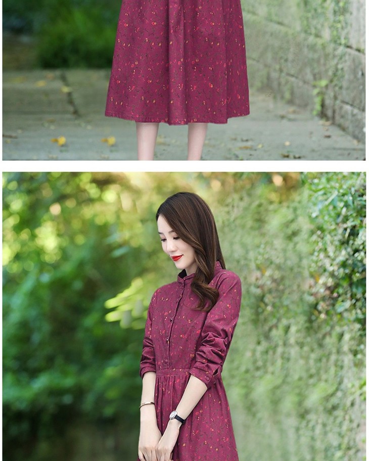JXG-高端加厚棉麻磨毛碎花连衣裙女春秋2021新款气质显瘦胖mm长袖裙子