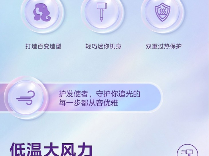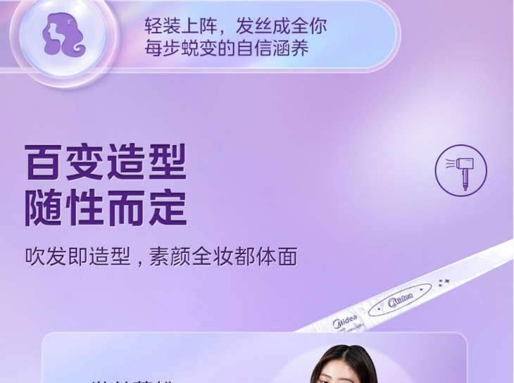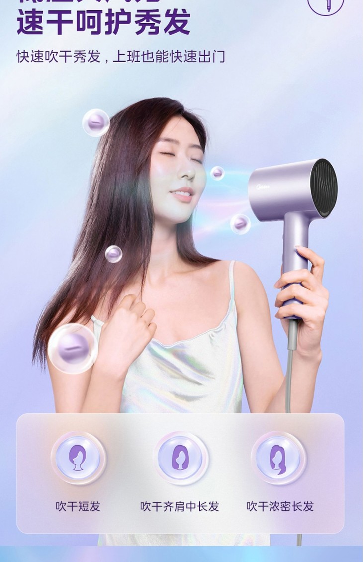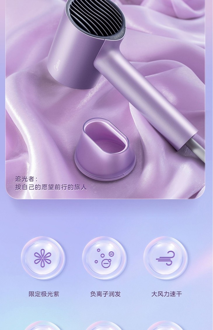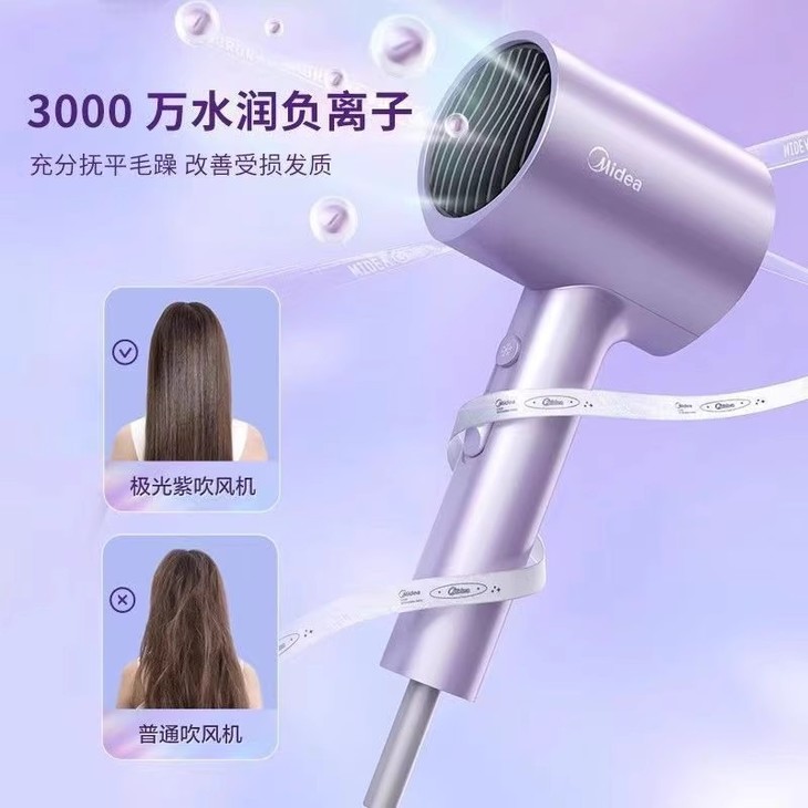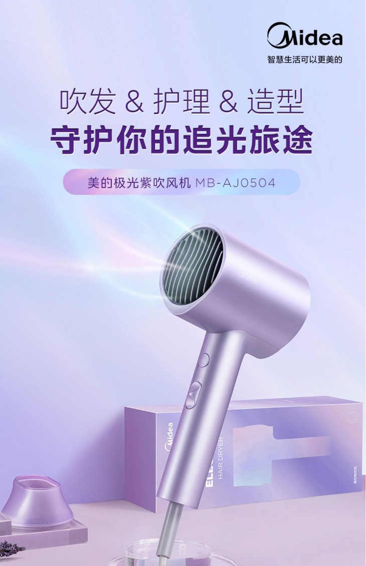 【美的Midea 电吹风机MB-AJ0504】极光紫星夜蓝水滴护发大功率速干送女生节日礼物
