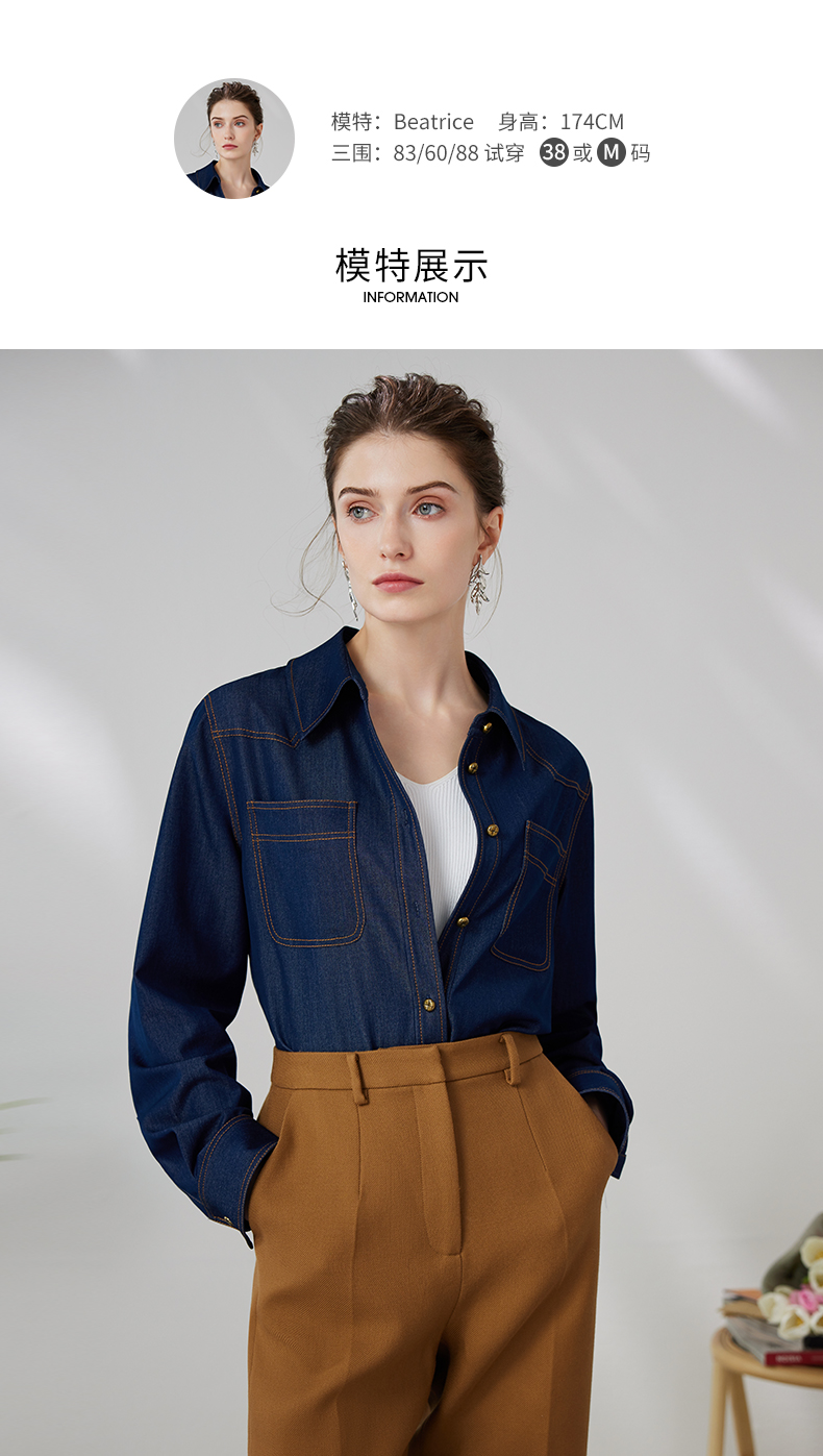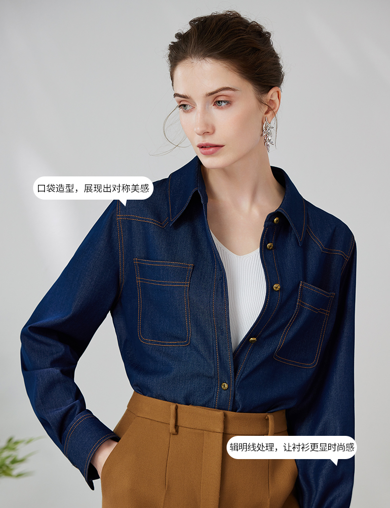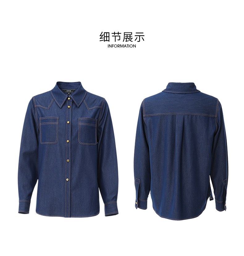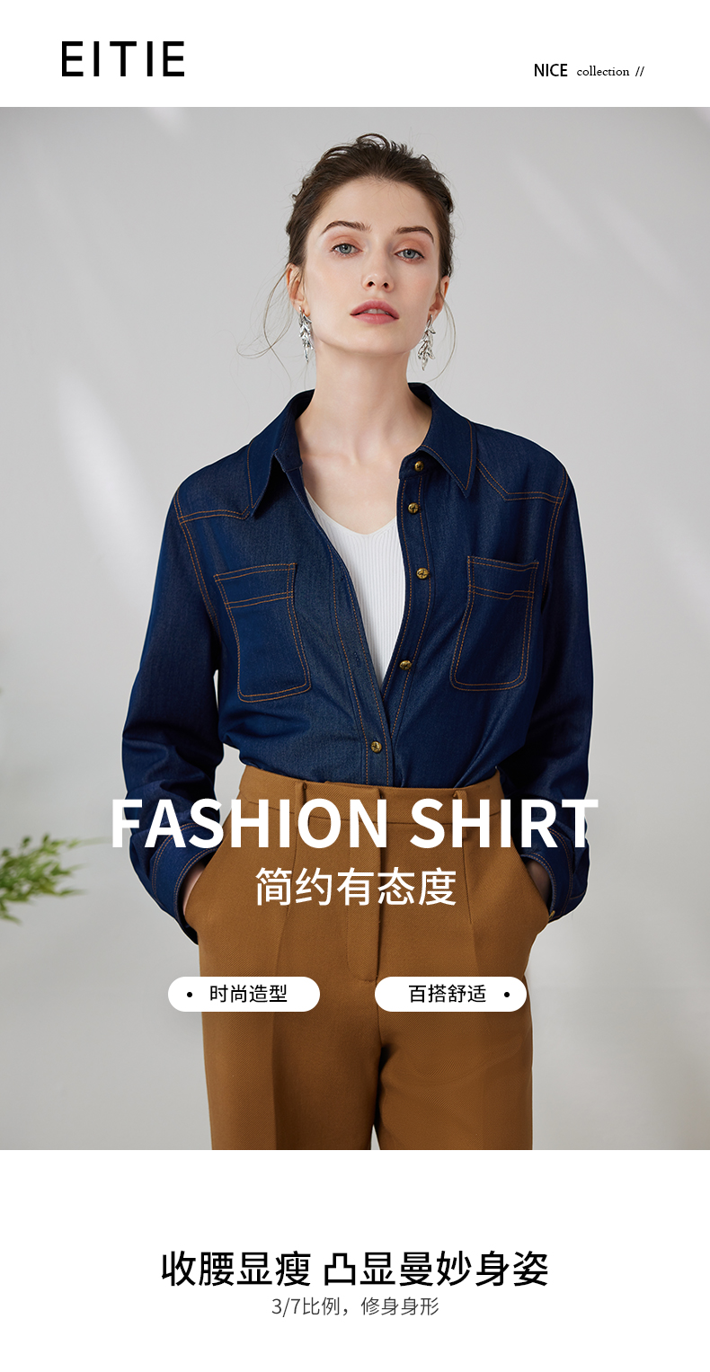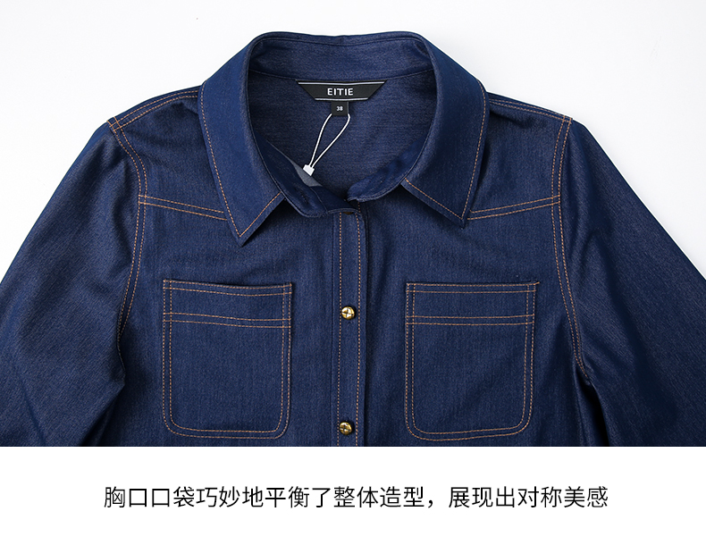 EITIE爱特爱气质复古通勤显瘦百搭宽松直筒牛仔衬衫外套春新款A2403307
