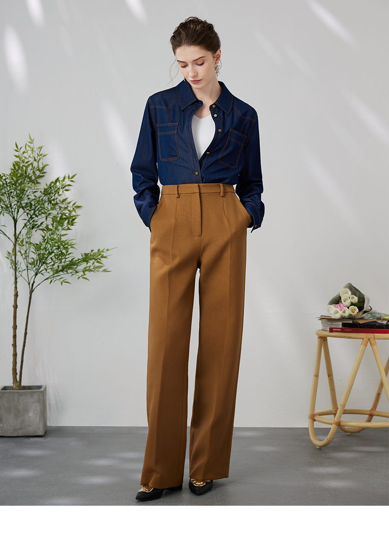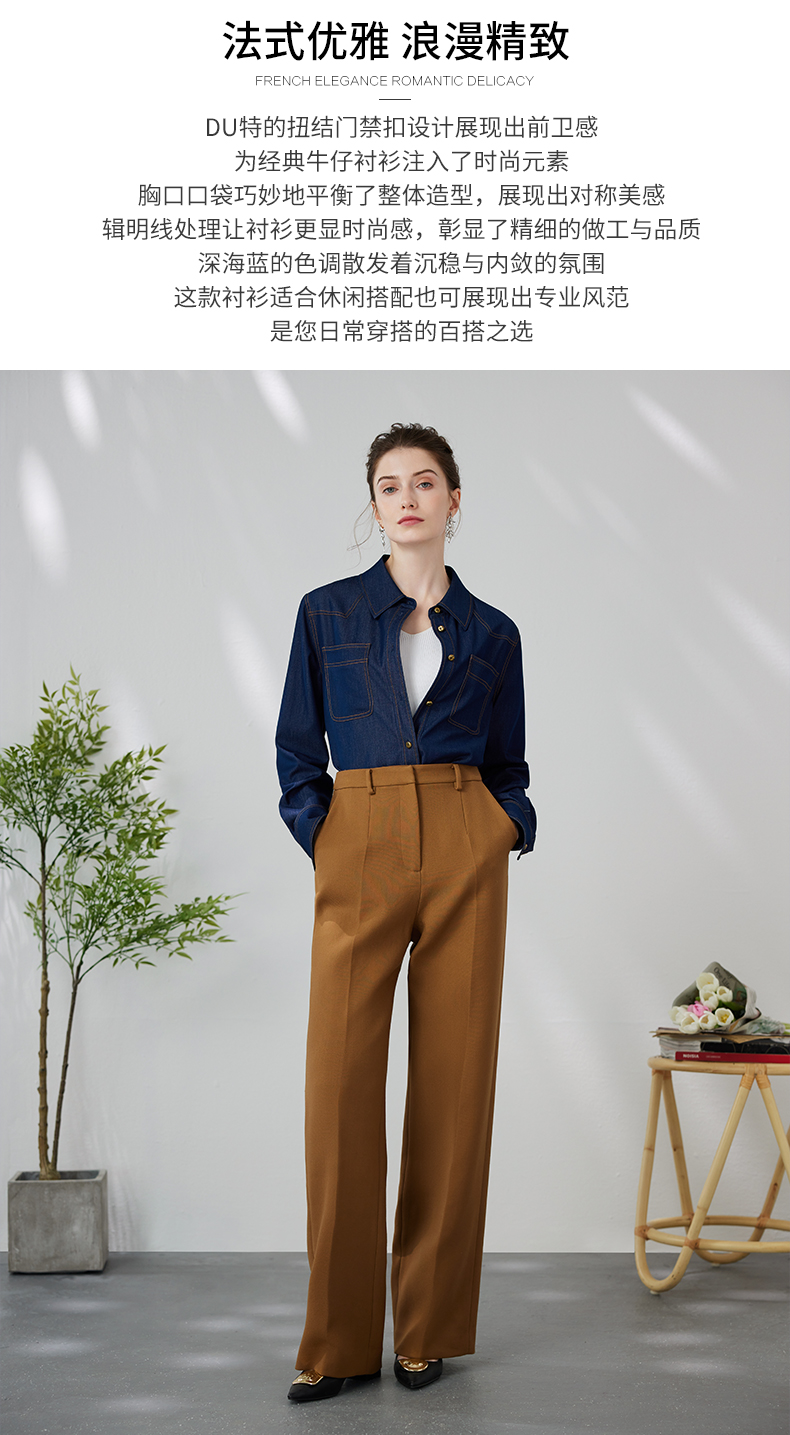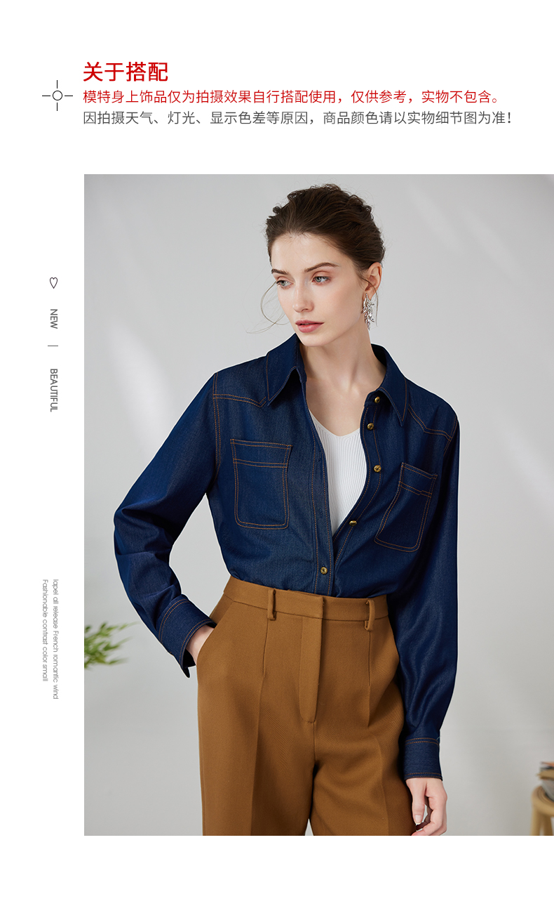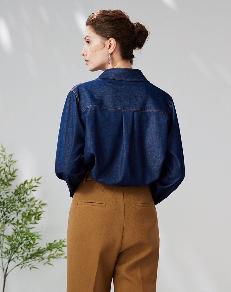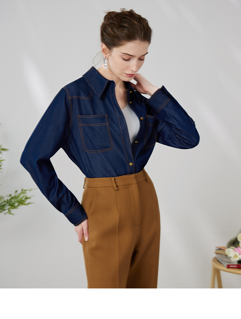 EITIE爱特爱气质复古通勤显瘦百搭宽松直筒牛仔衬衫外套春新款A2403307
