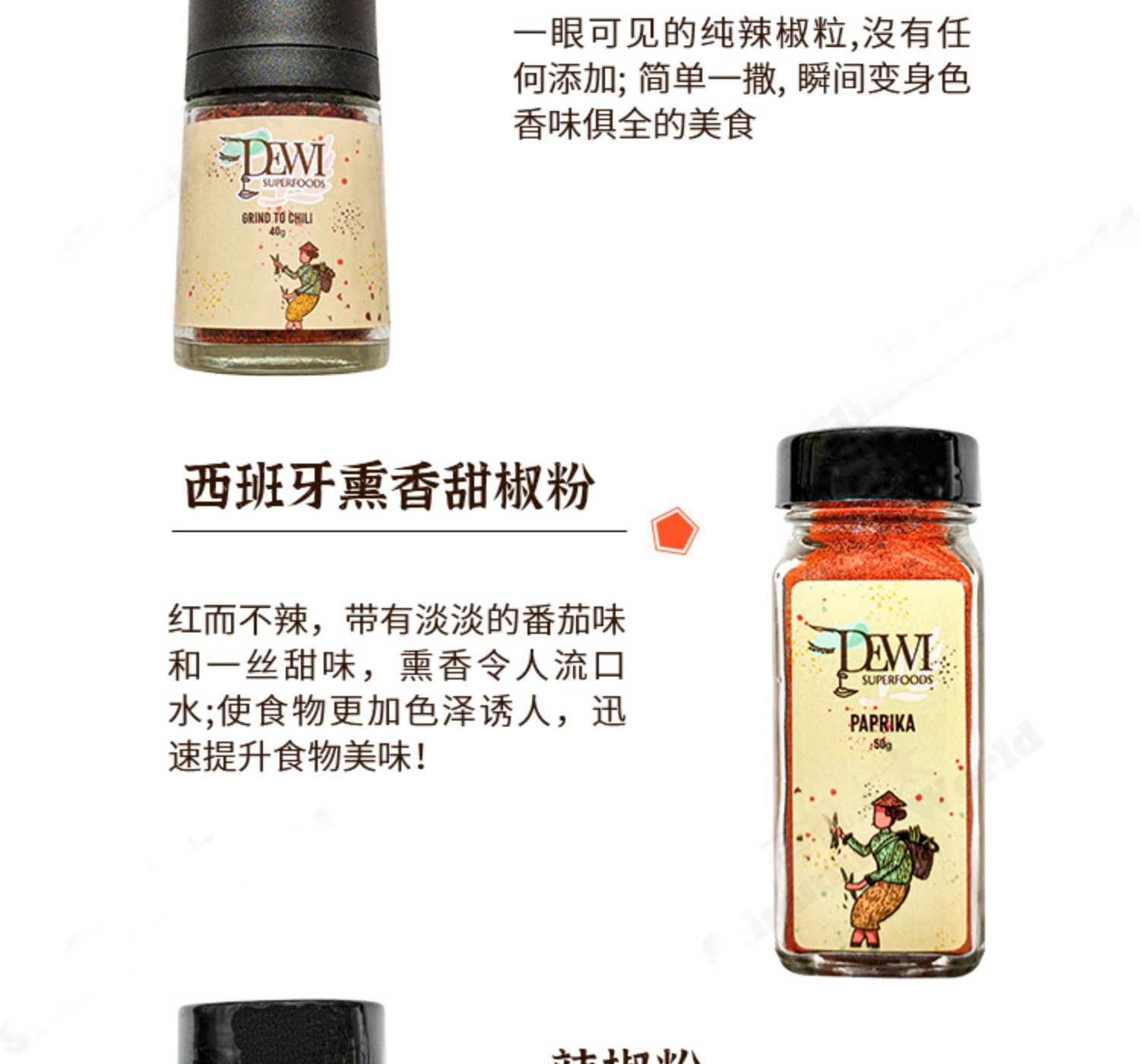 Dewi黛维卡宴辣椒粉西班牙烟熏红椒无麸质无添加Cayenne