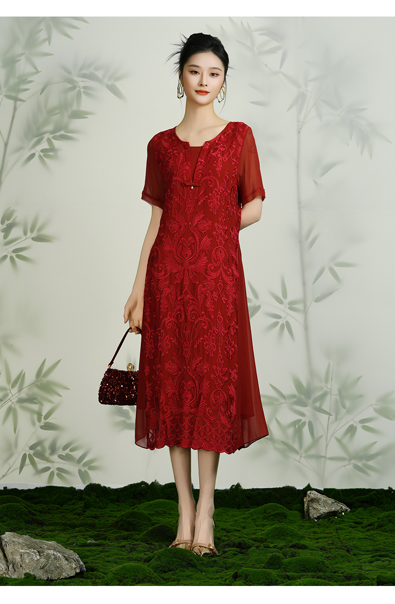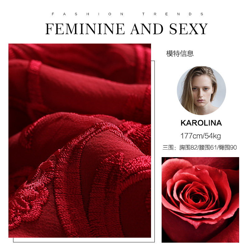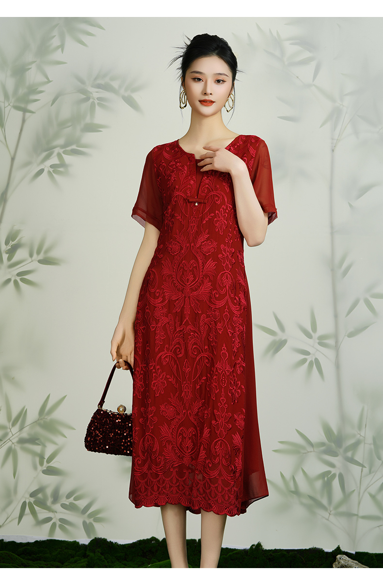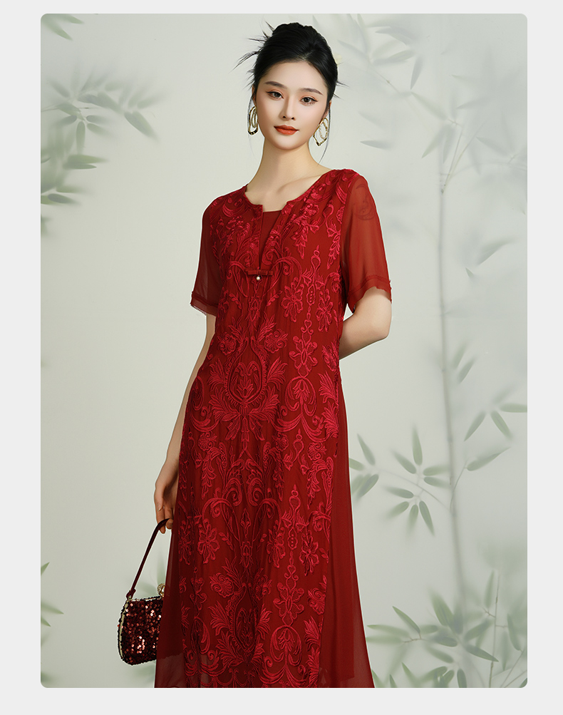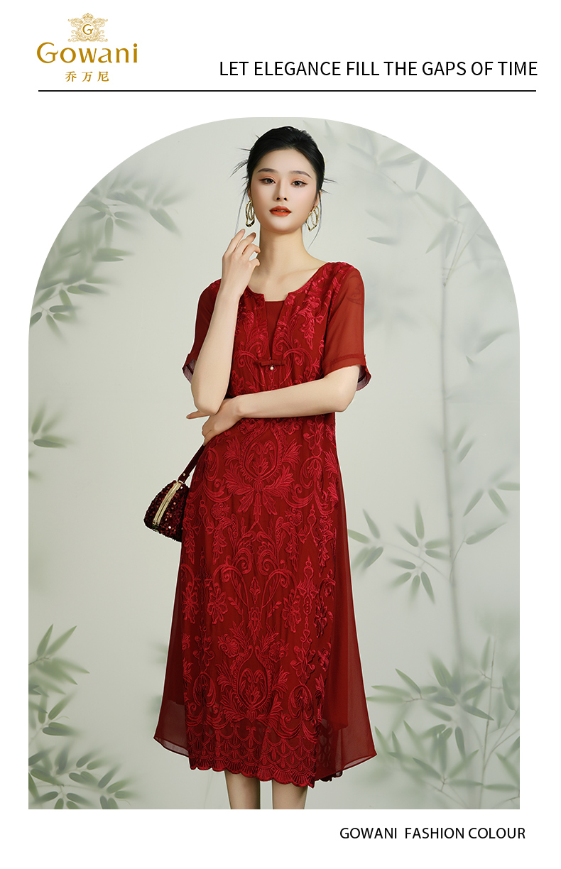 乔万尼夏红装礼服裙优雅真丝连衣裙桑蚕丝中长款EN2E565